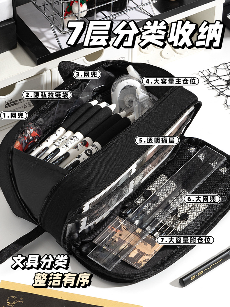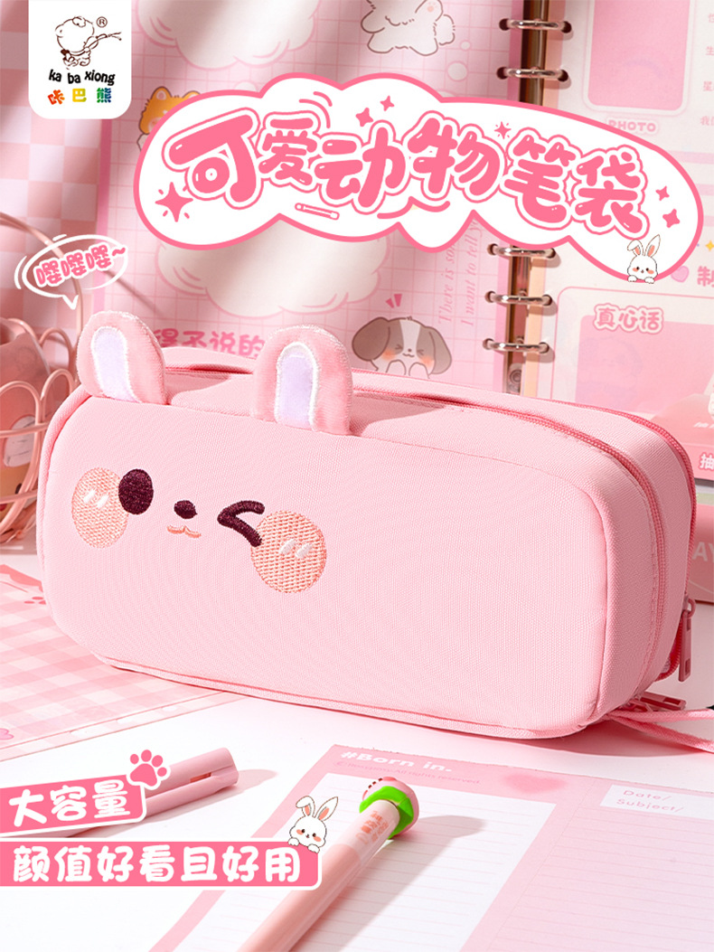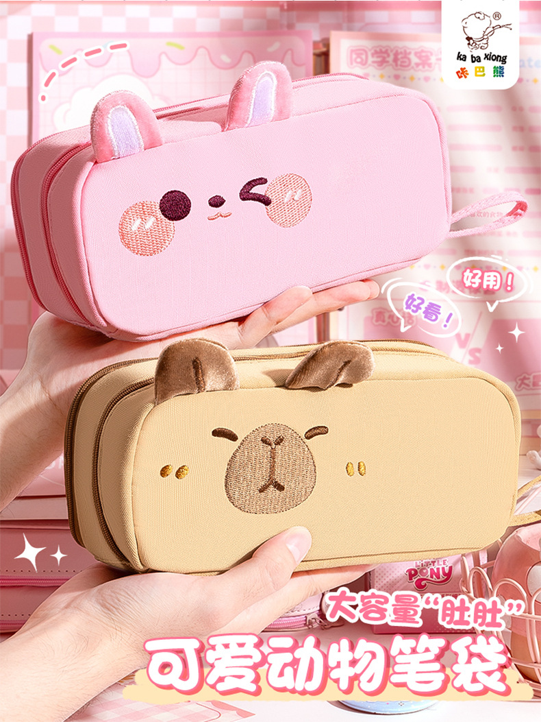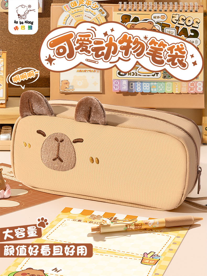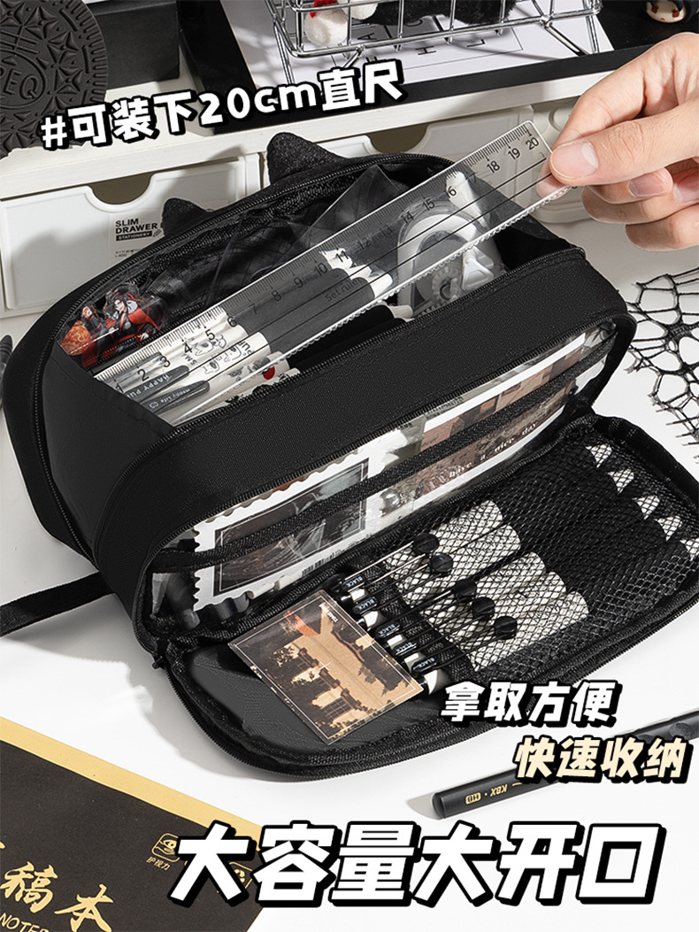 【防水面料❗️大容量】咔巴熊卡通黑猫立体大容量可爱动物笔袋学生开学收纳袋铅笔文具盒。ya