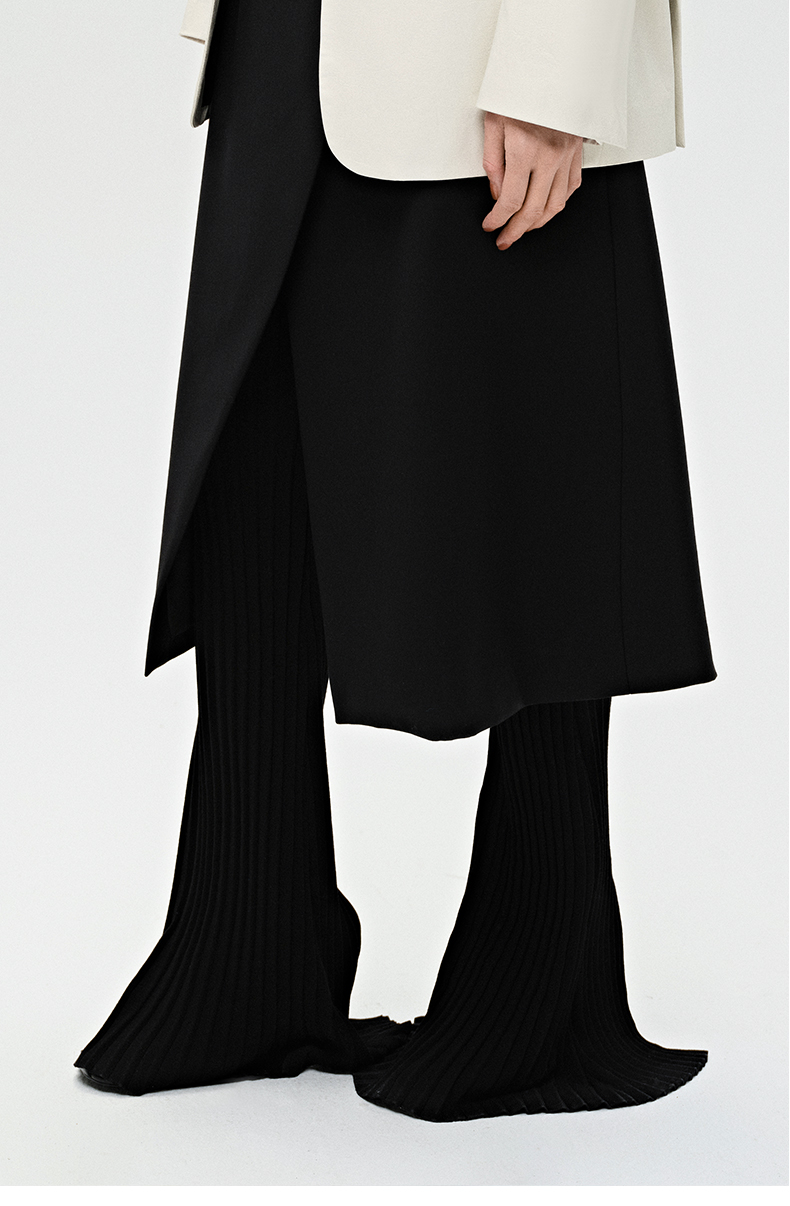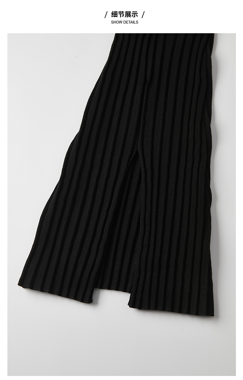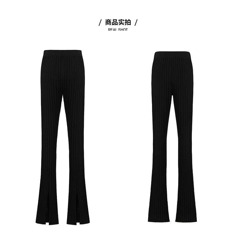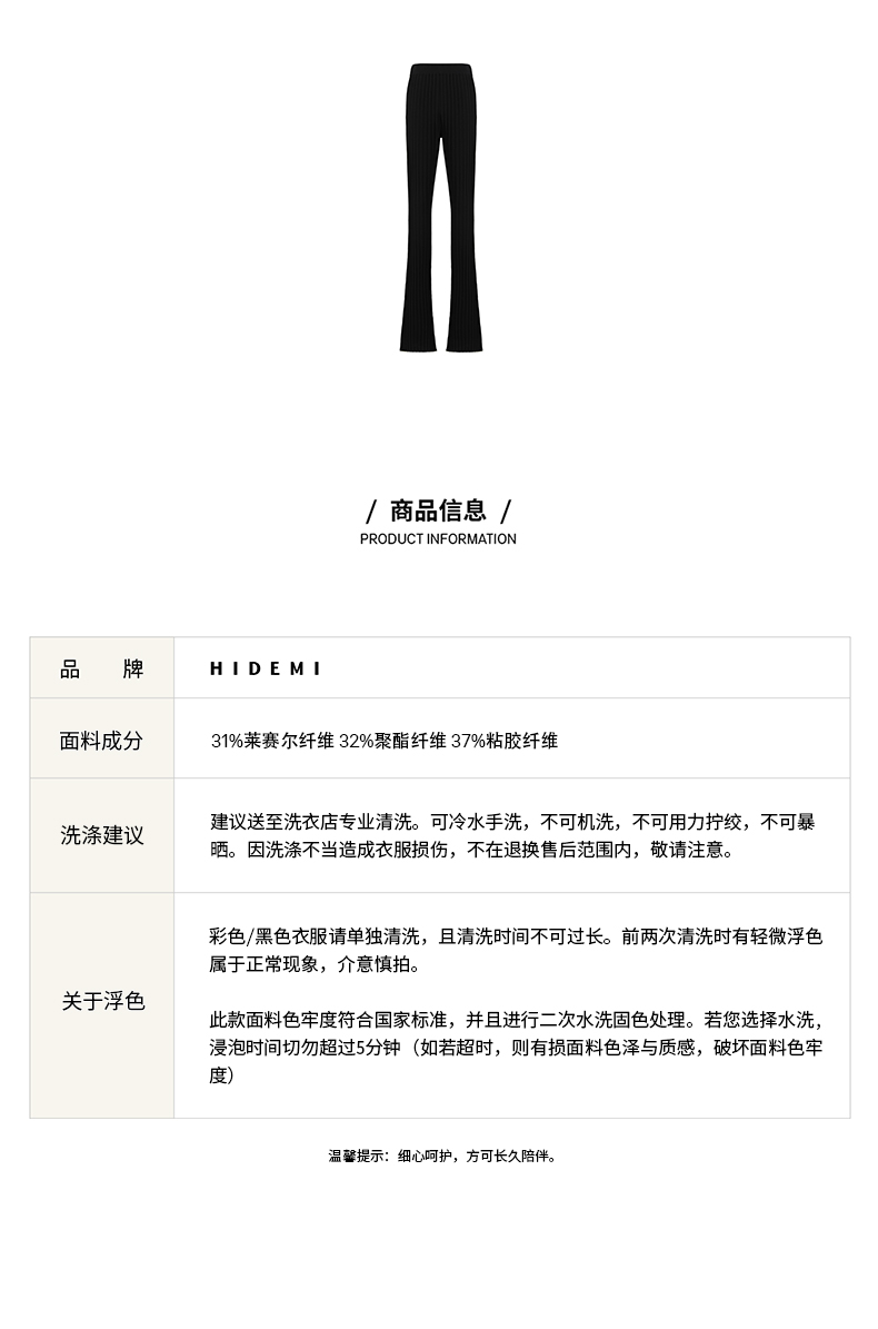 HIDEMI 黑色竖条冰麻开衩喇叭神裤