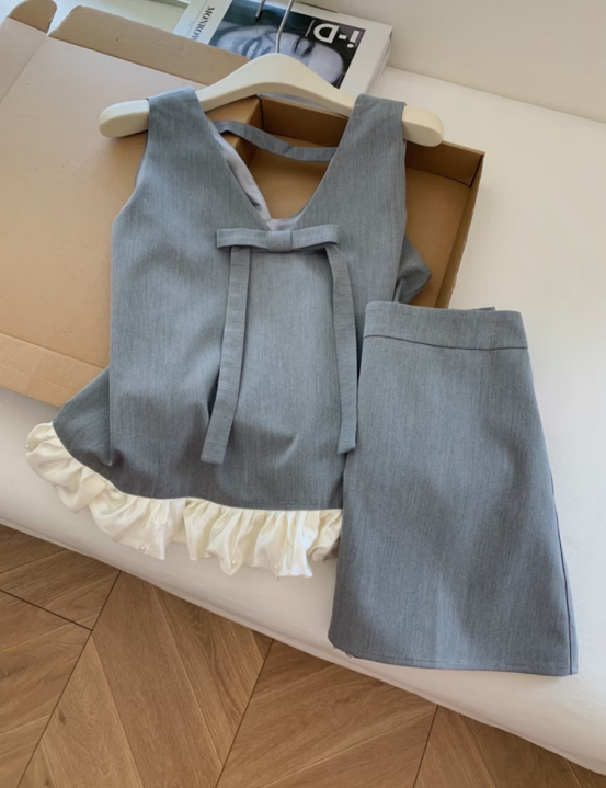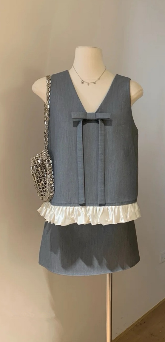 爆款推荐🔥王炸套装【法式蝴蝶结花边西装裙套装❤️】逛街出游被追着问链接的款式🔗 西装蝴蝶结无袖上衣➕高腰西装裙 套装❗️ 💰淘宝价:610¥/套 💰团购价:99¥/套,❤立省511¥
