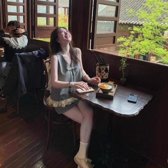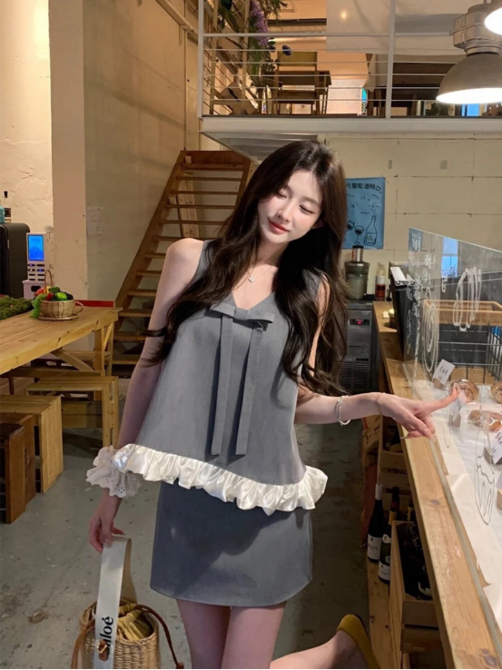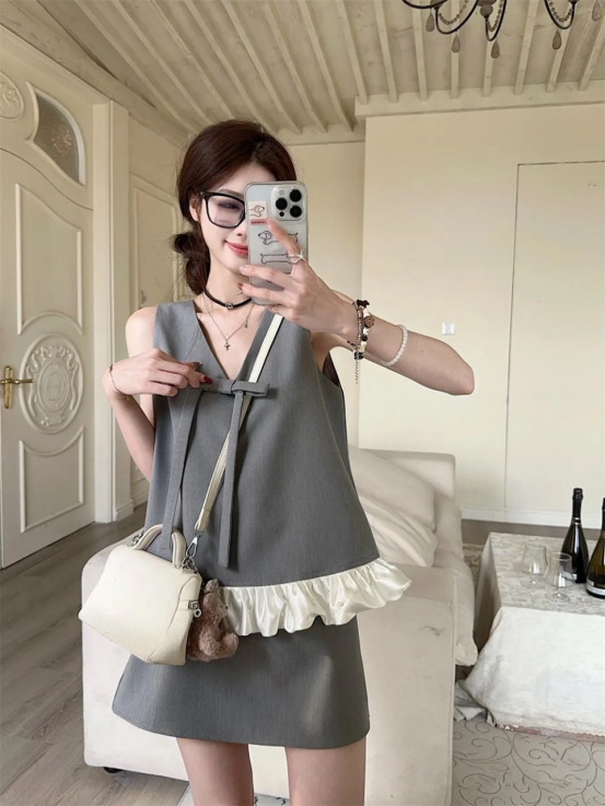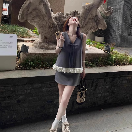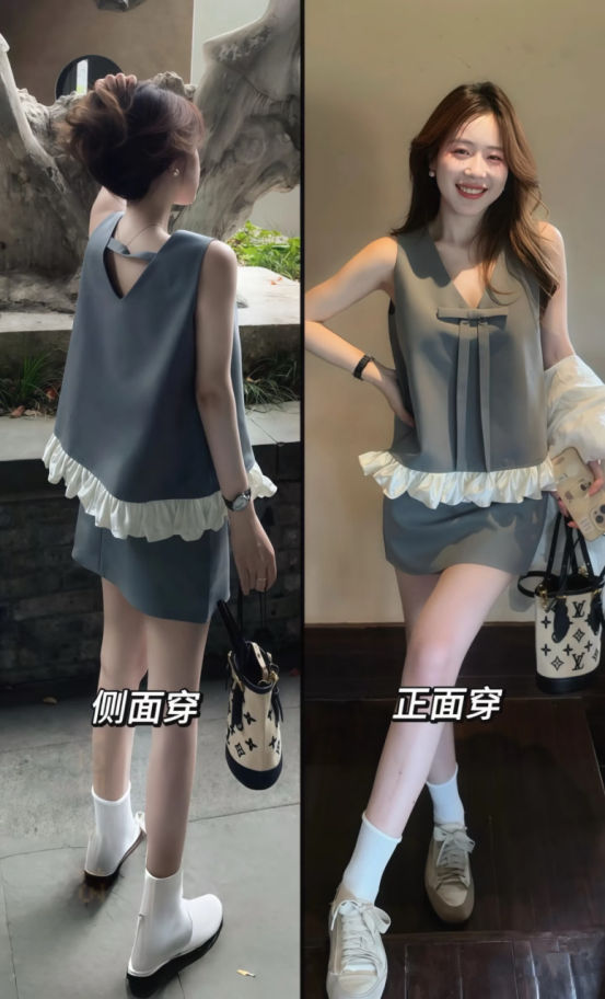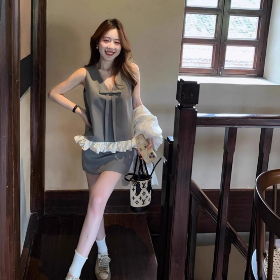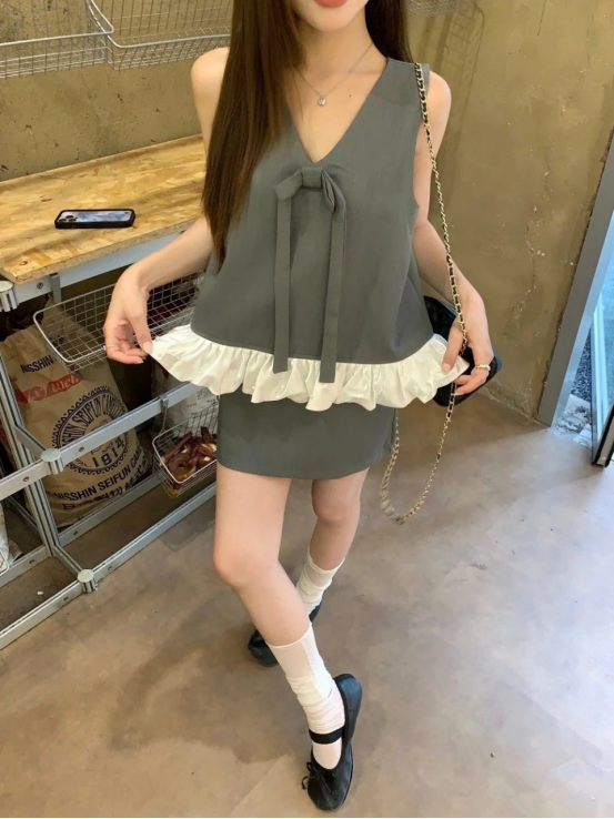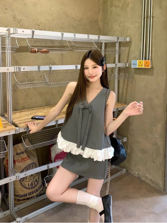 今天的套装真的牛,直接拍不会出错 背心上衣+短裙简单解决一身的高级穿搭问题 上身巨仙儿❗️巨好看❗️巨显瘦❗️ 显瘦纸片人!显高不压个! 无论胖瘦都能穿出它的气质,显高挑 日常随便搭配单鞋,运动鞋,就很精致高级~