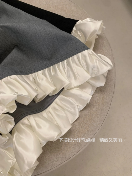 上衣👇👇👇 蝴蝶结拼接珍珠花边设计!减龄又高级~ 裙子👇👇👇 高腰设计,更显腿长 内里防走光短裤底衬,不用担心走光 胯宽星人穿上秒变“纸片人”