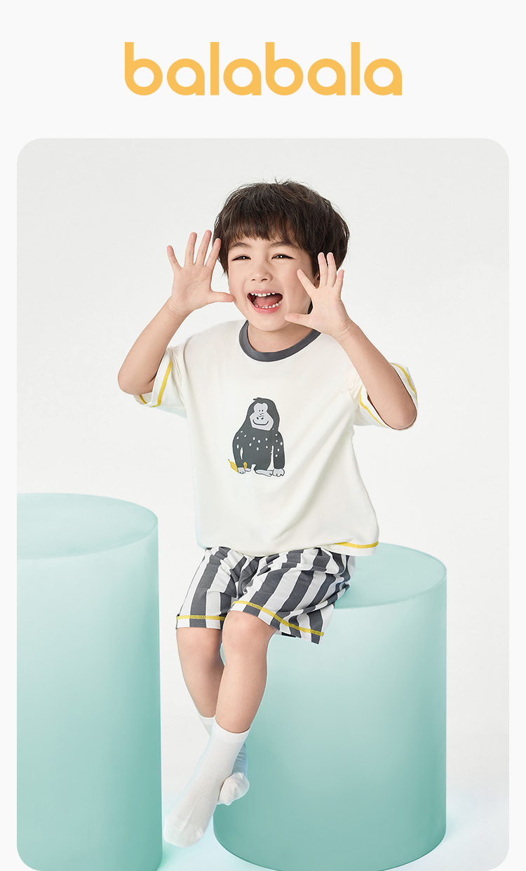 巴拉巴拉儿童睡衣套装男童家居服小童大童空调服凉感舒适亲肤卡通