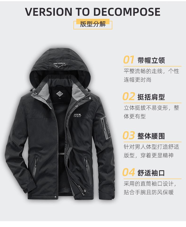 JEEP SPIRIT男士夹克春秋季户外休闲运动可脱卸外套潮男HL7007