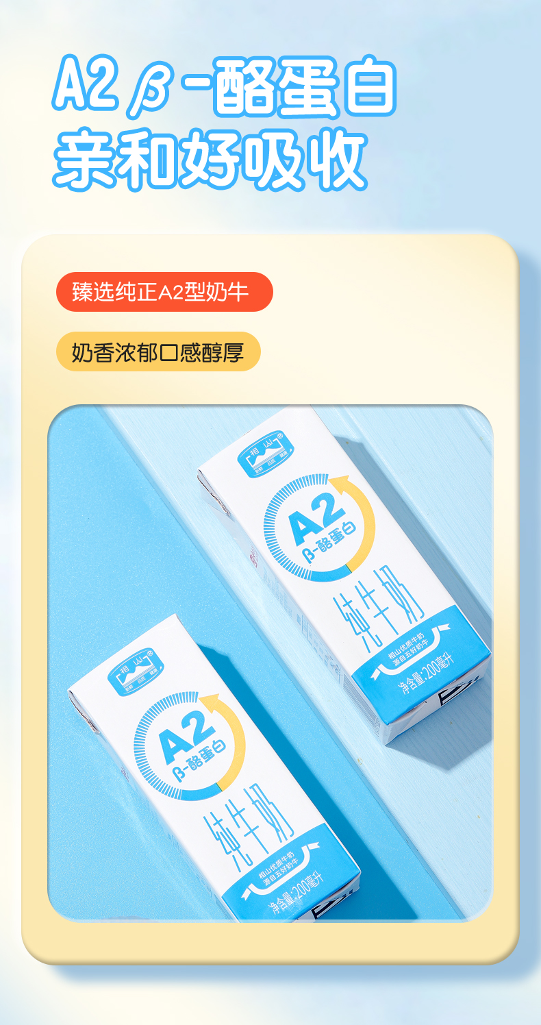 ³买4箱送1箱3.0克纯奶【相山A2β-酪蛋白纯牛奶 】乳糖不耐更好吸收 自家老牧场 β-酪蛋白纯牛奶200ml*12瓶 XN03-CRMM-BBT
