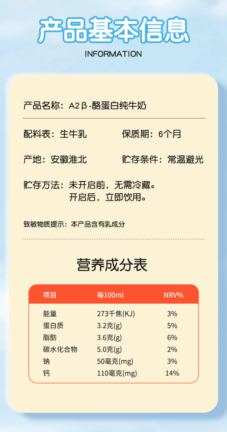 【提醒】:收到牛奶后,请留意外包装是否完整,如有破损、漏液等情况,可找售后理赔,食用牛奶时,如出现涨袋、破损、漏液等情况,请勿食用,可拍照(拍照快递面单+破损牛奶)联系客服按售后标准进行赔付。