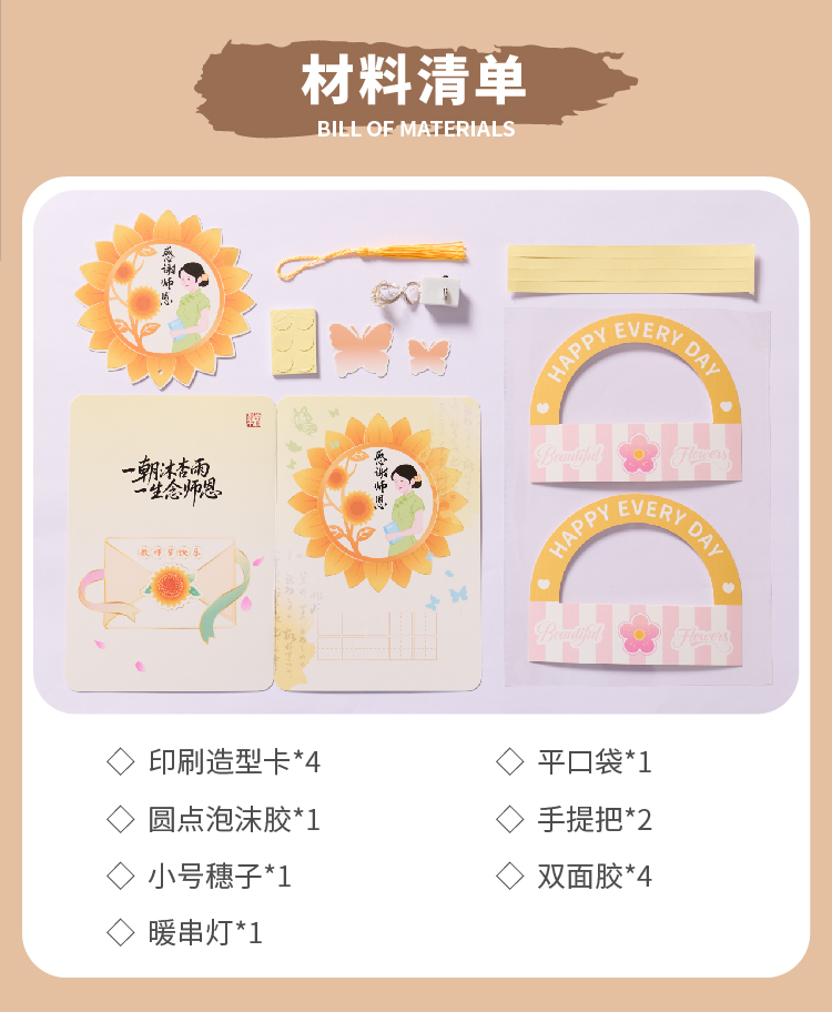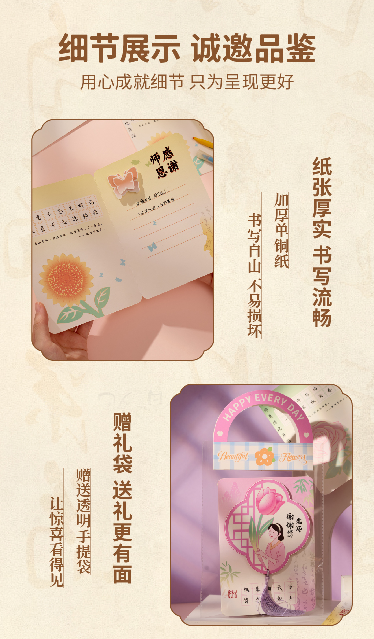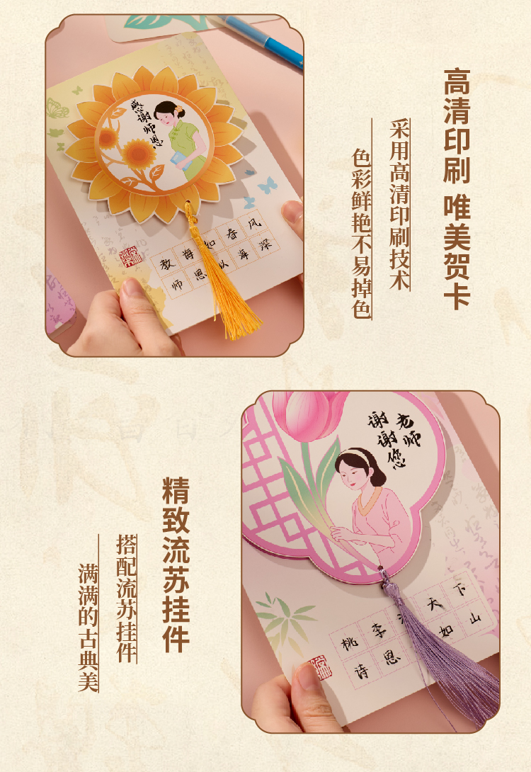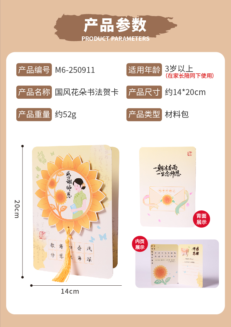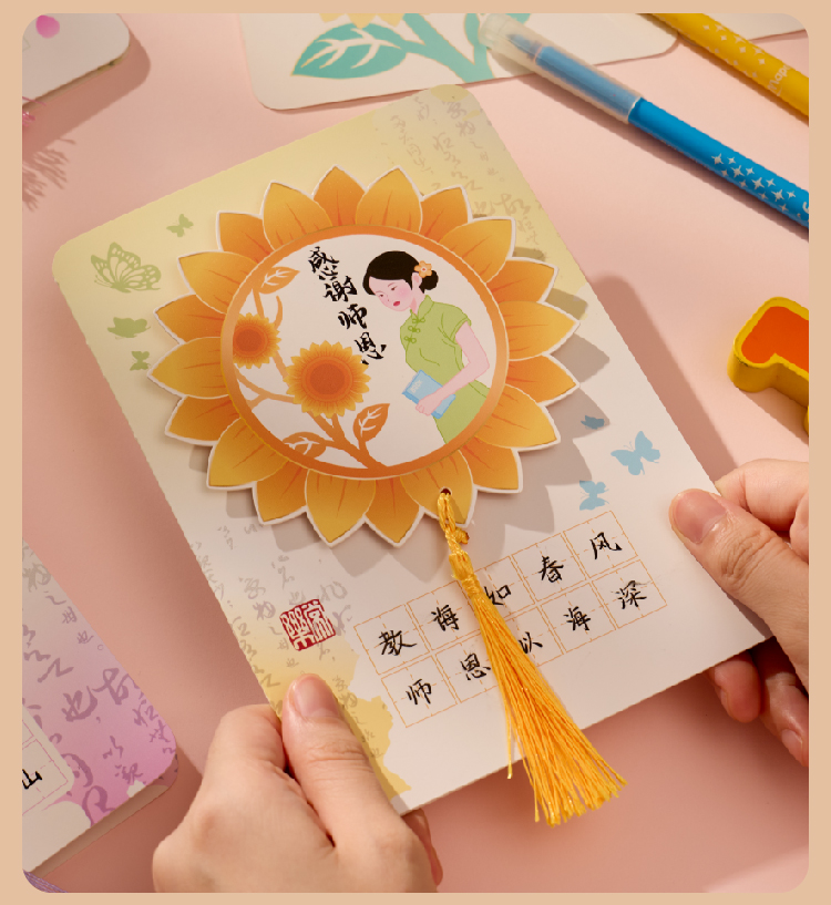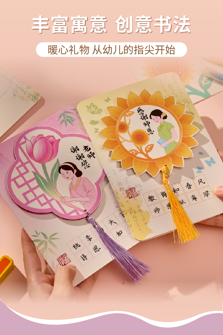 教师节礼物国风花朵书法贺卡手工diy花束卡片儿童制作材料送老师