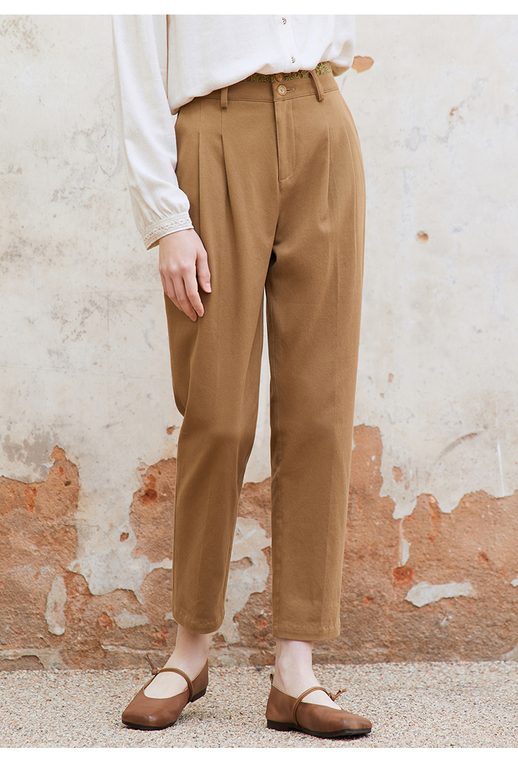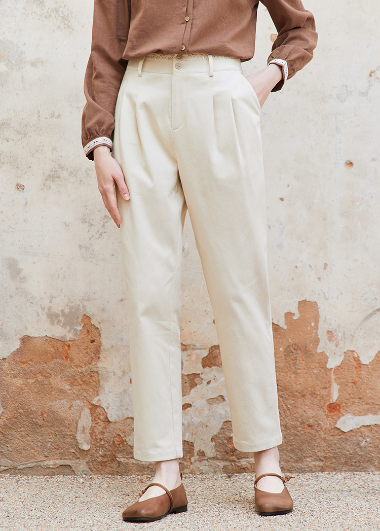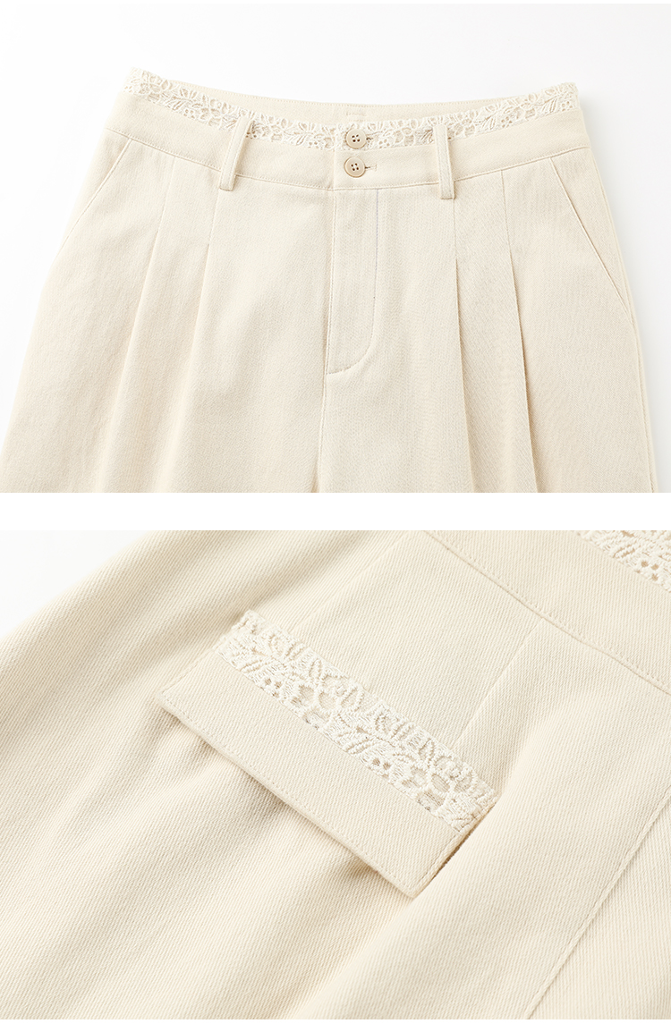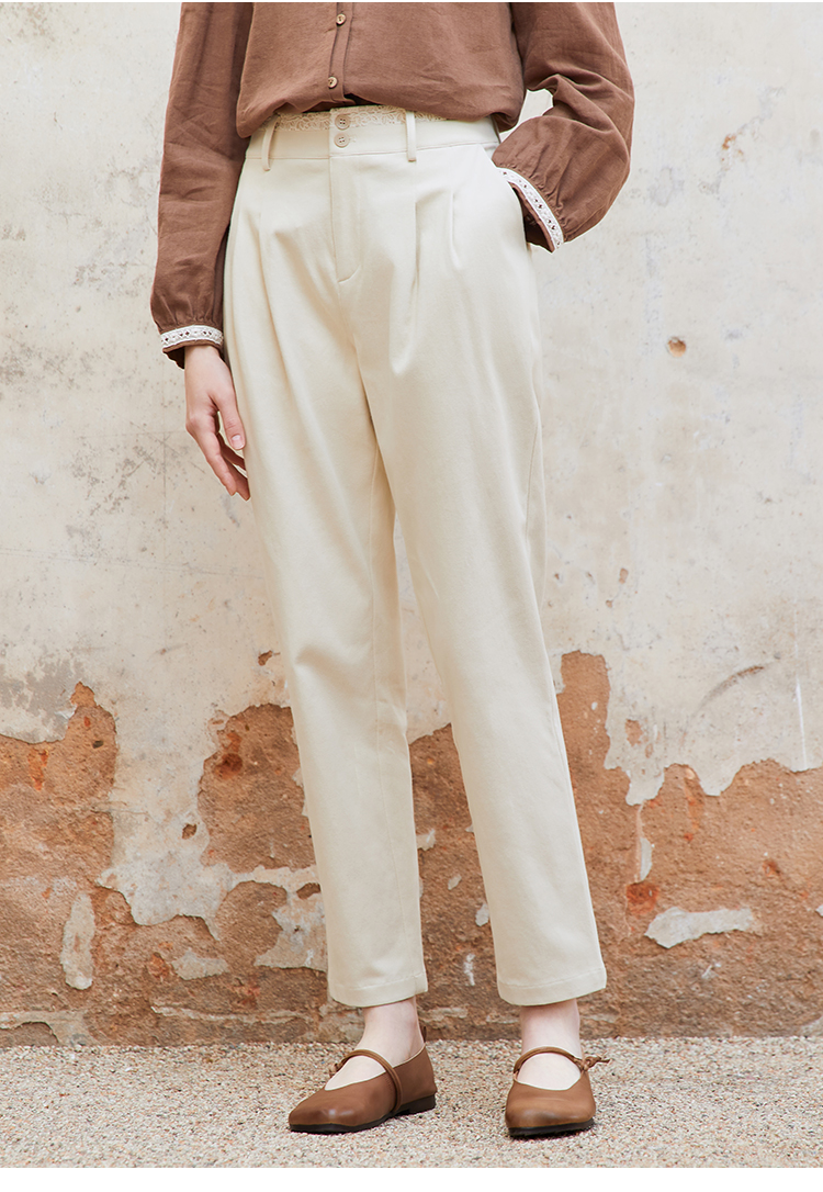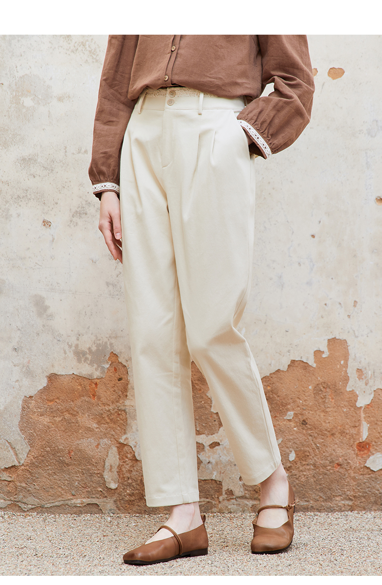 Famecoco范可儿双腰头纯棉拼接休闲裤女直筒休闲裤子