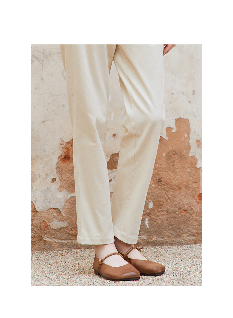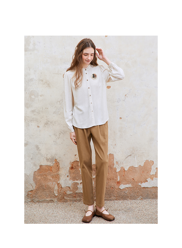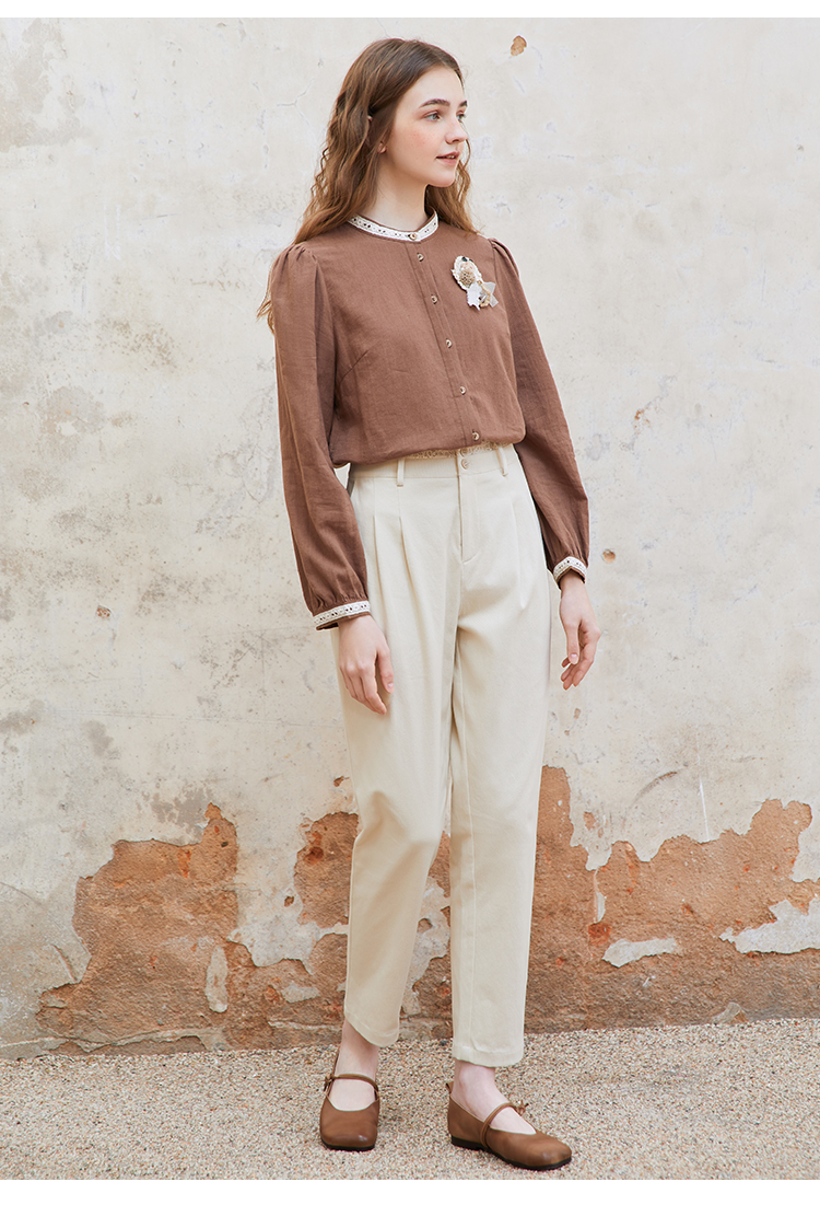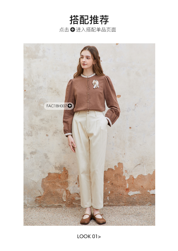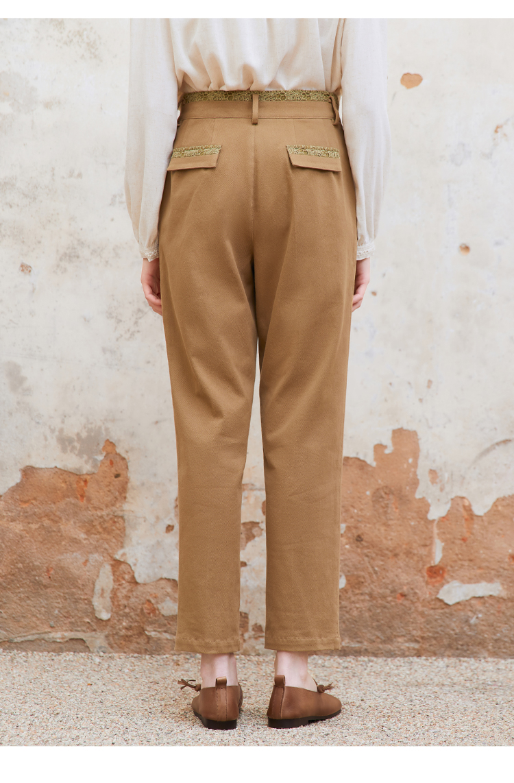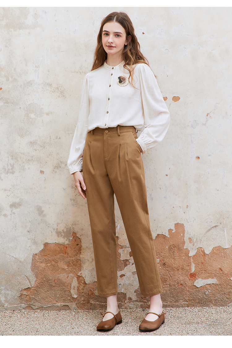 Famecoco范可儿双腰头纯棉拼接休闲裤女直筒休闲裤子