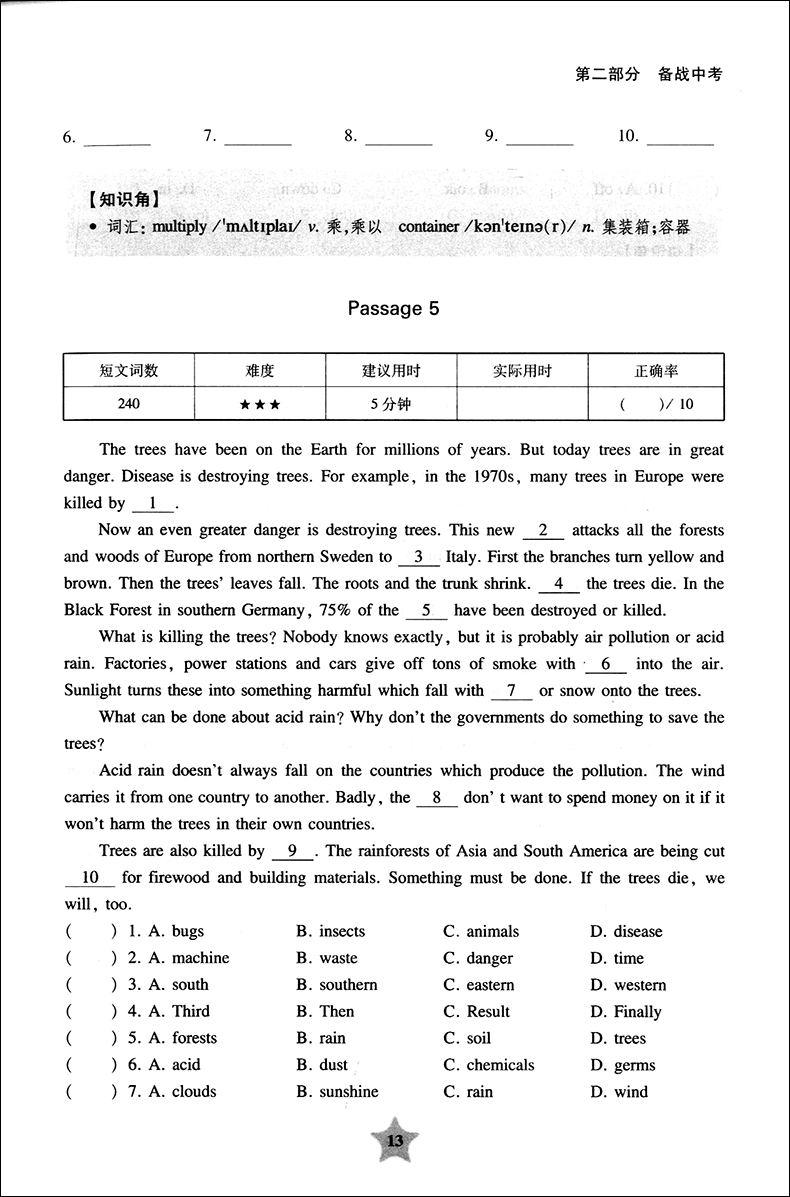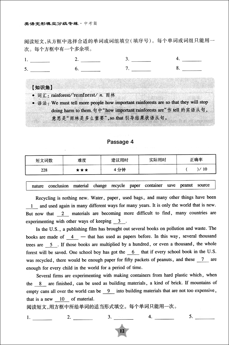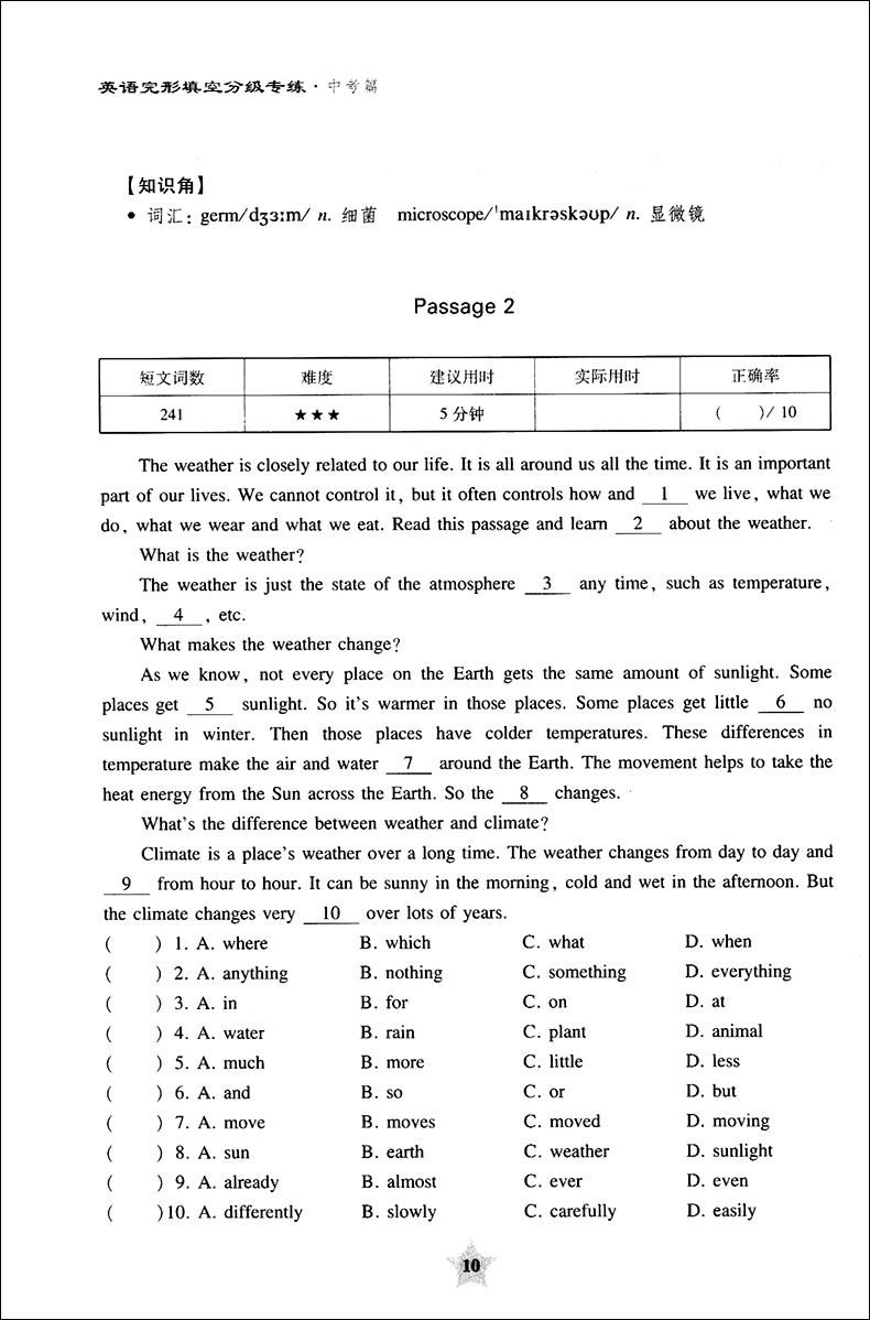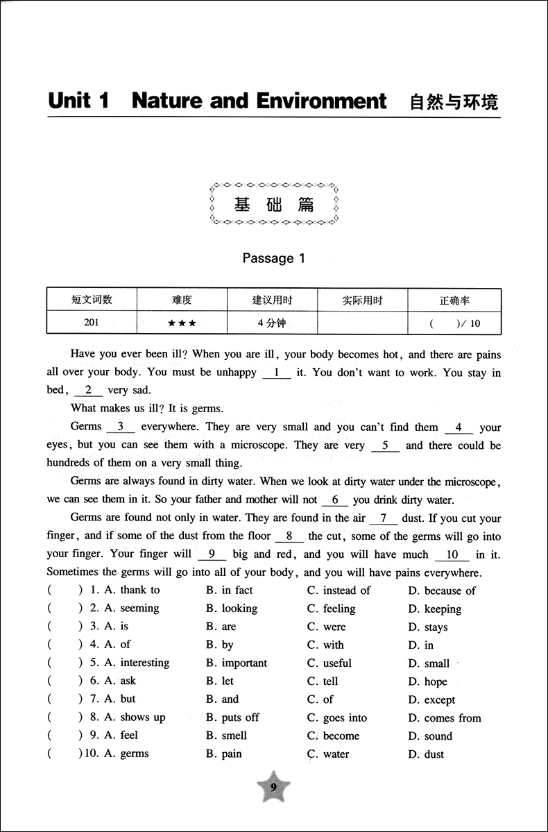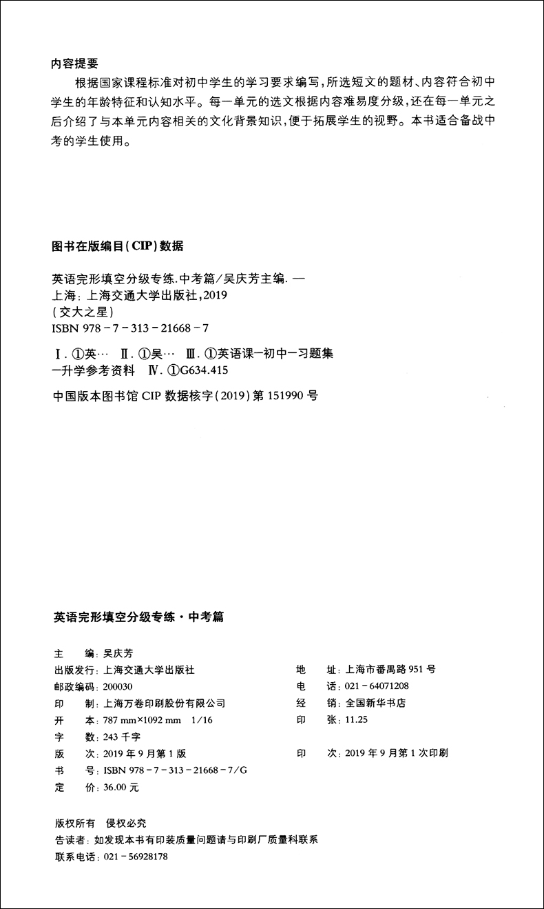 交大之星 英语完形填空分级专练 中考篇/9年级 英语完形填空专项训练 上海初中初三英语教辅 上海交通大学出版社