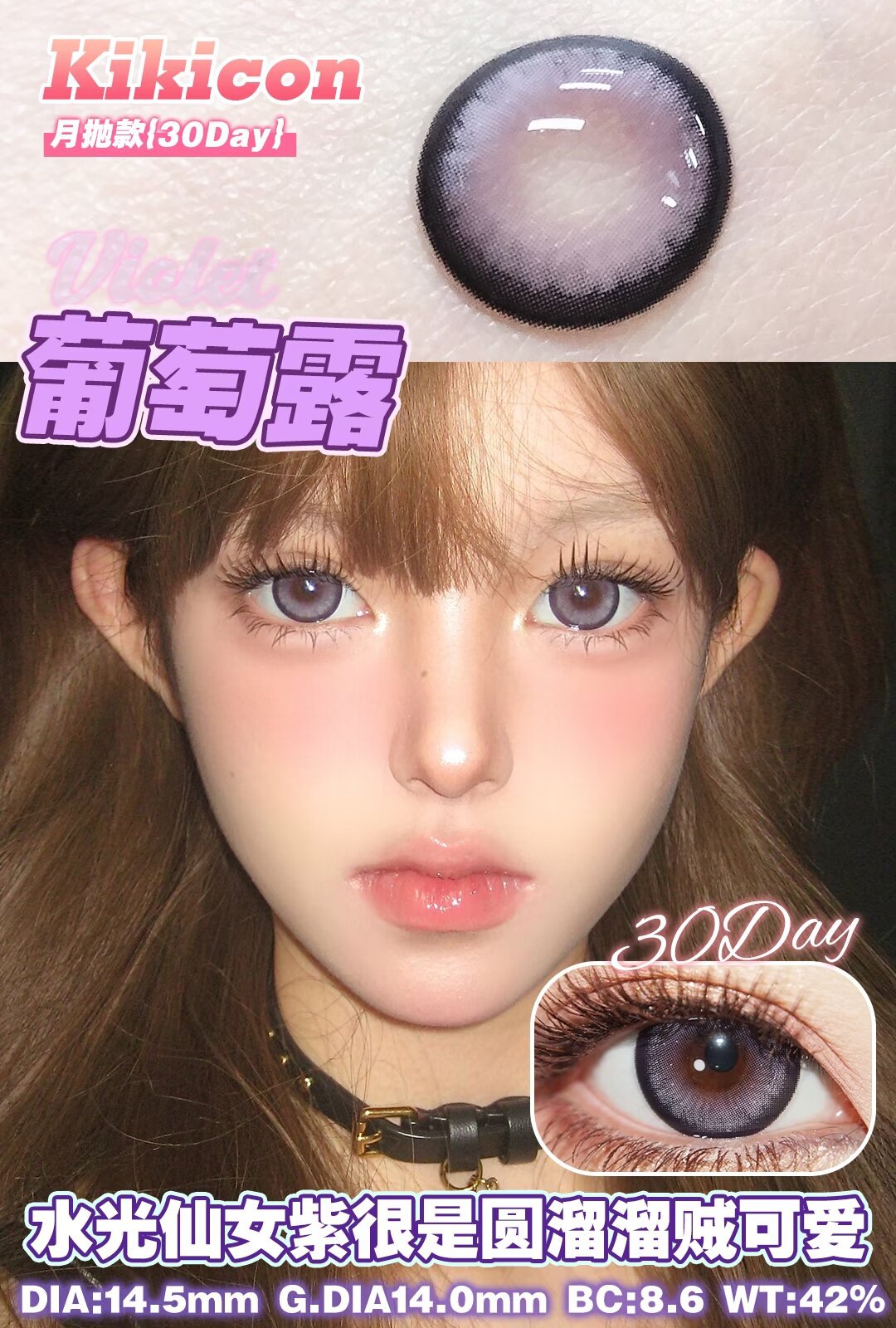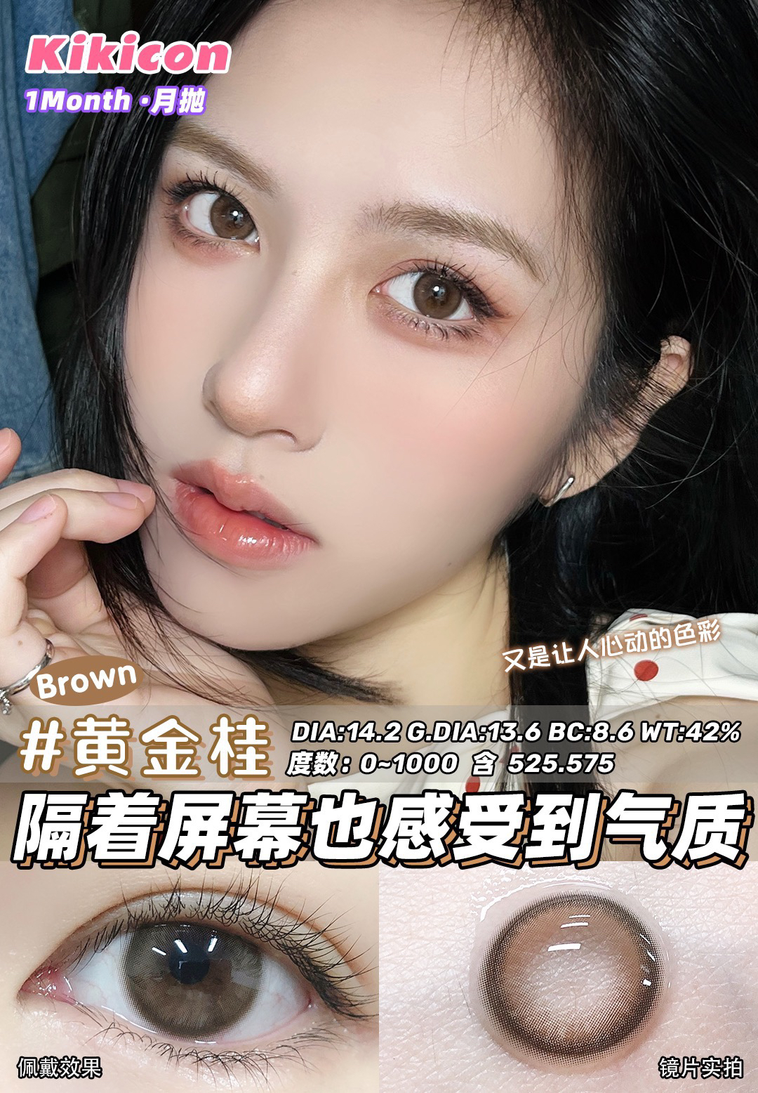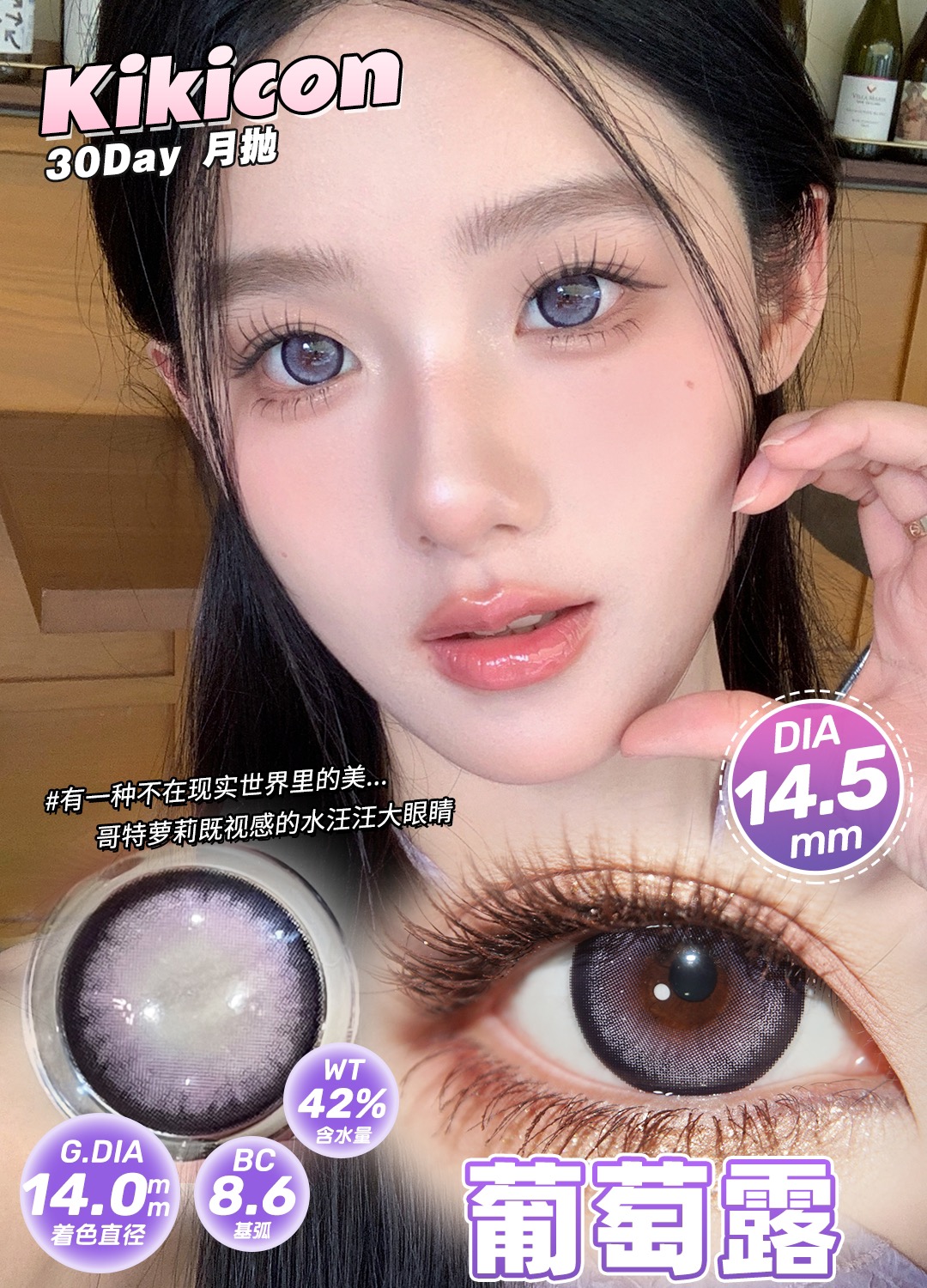 高舒适月抛Kikicon美瞳黑灰色 蓝巧