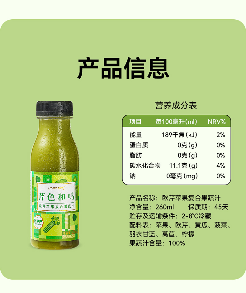 HPP欧芹苹果果蔬汁260ml*6瓶装复合纯果汁0添鲜榨NFC轻断食包邮