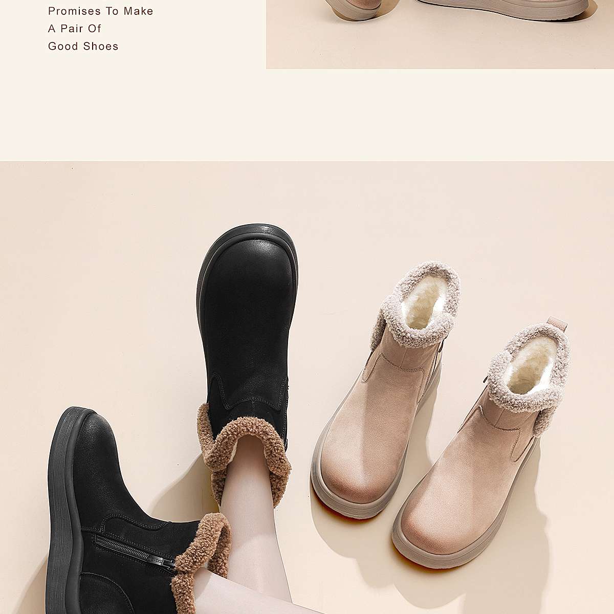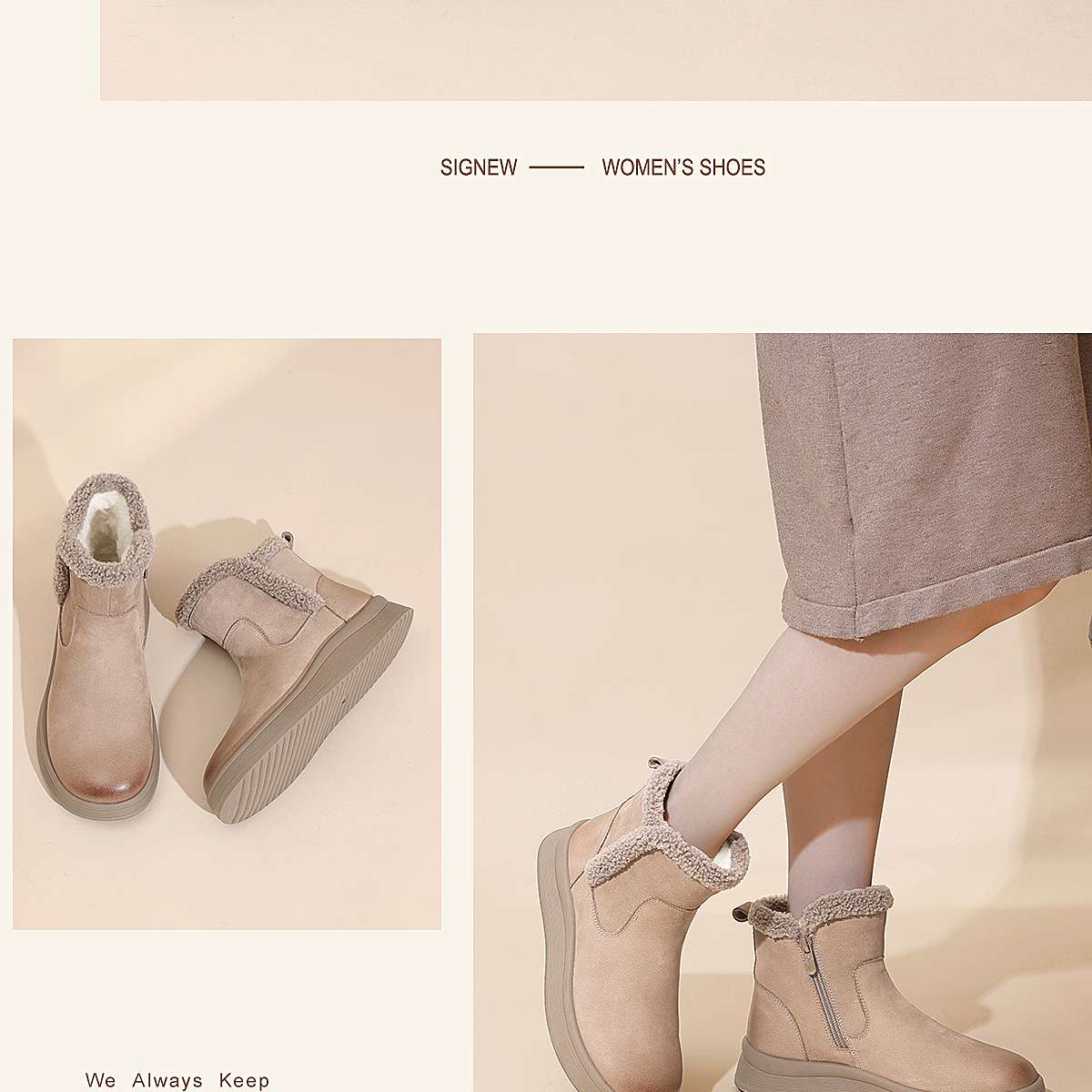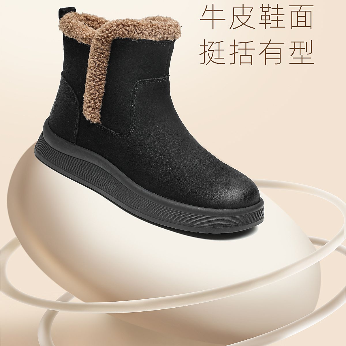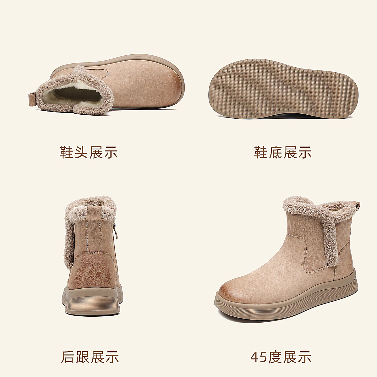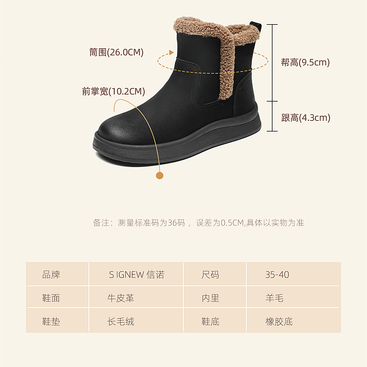 信诺羊毛妈妈棉鞋加绒保暖雪地靴厚底短靴真皮女鞋子2025冬季新款5M312-8QY
