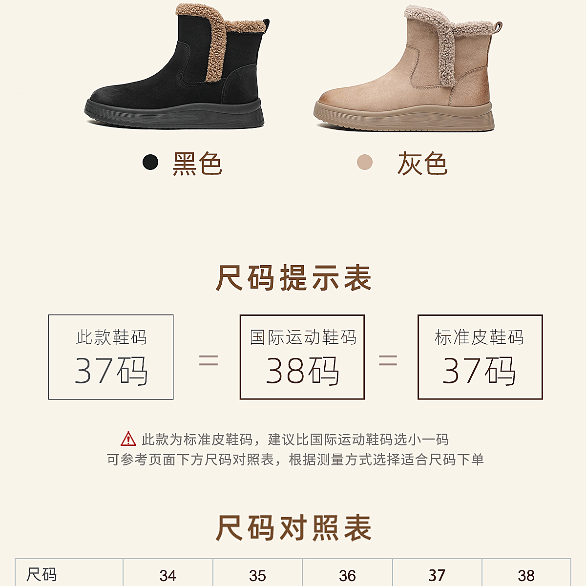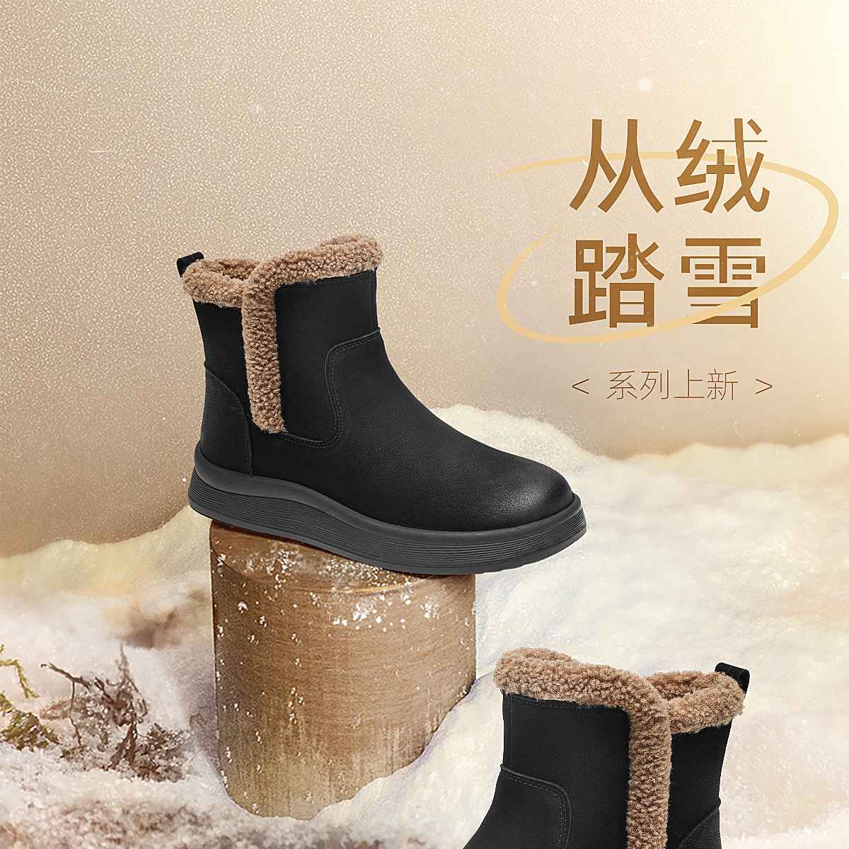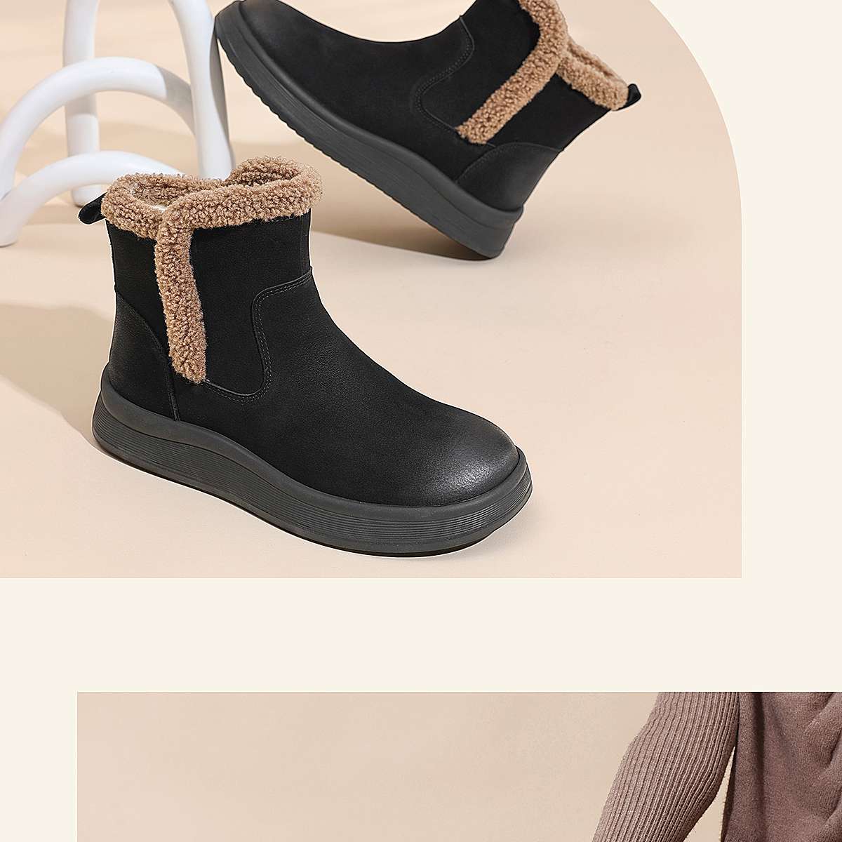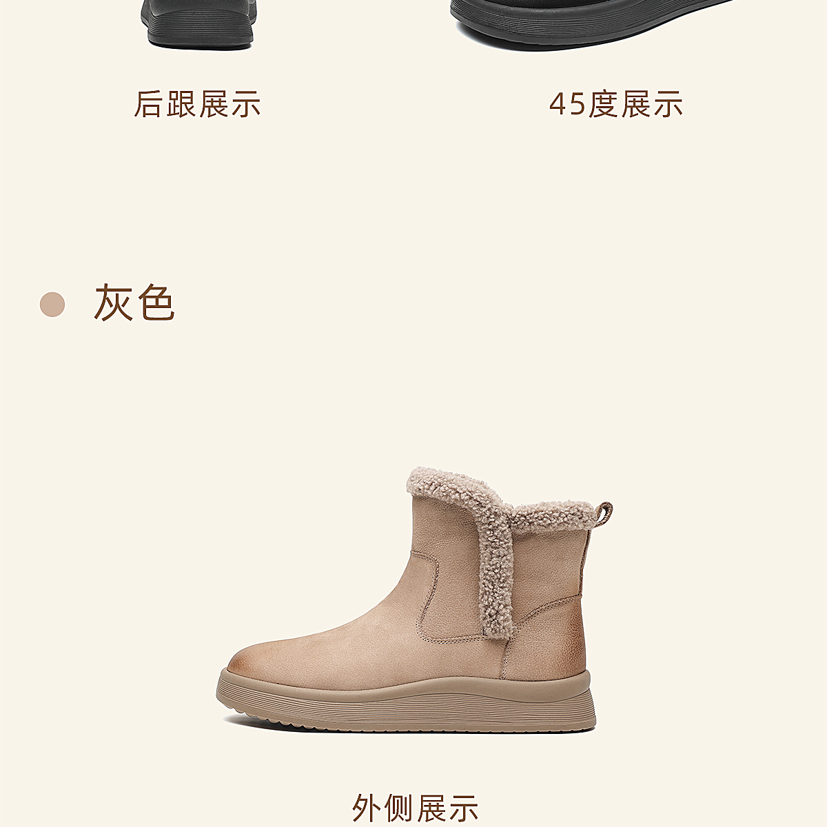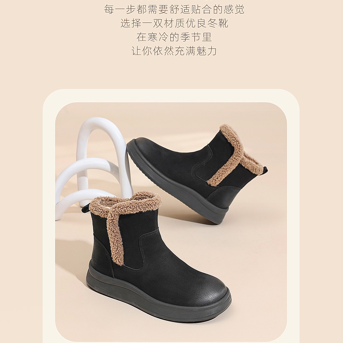 信诺羊毛妈妈棉鞋加绒保暖雪地靴厚底短靴真皮女鞋子2025冬季新款5M312-8QY