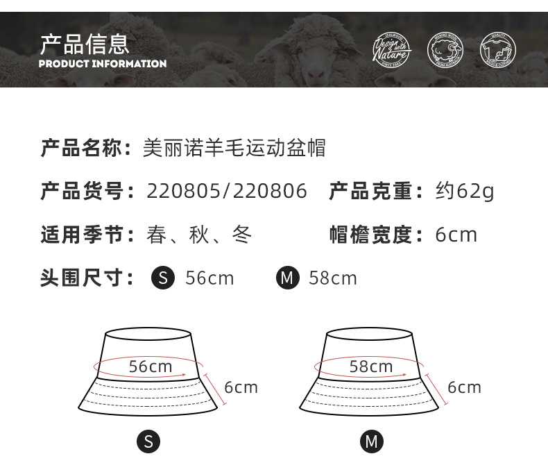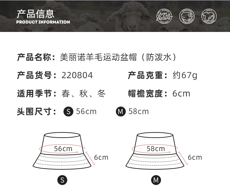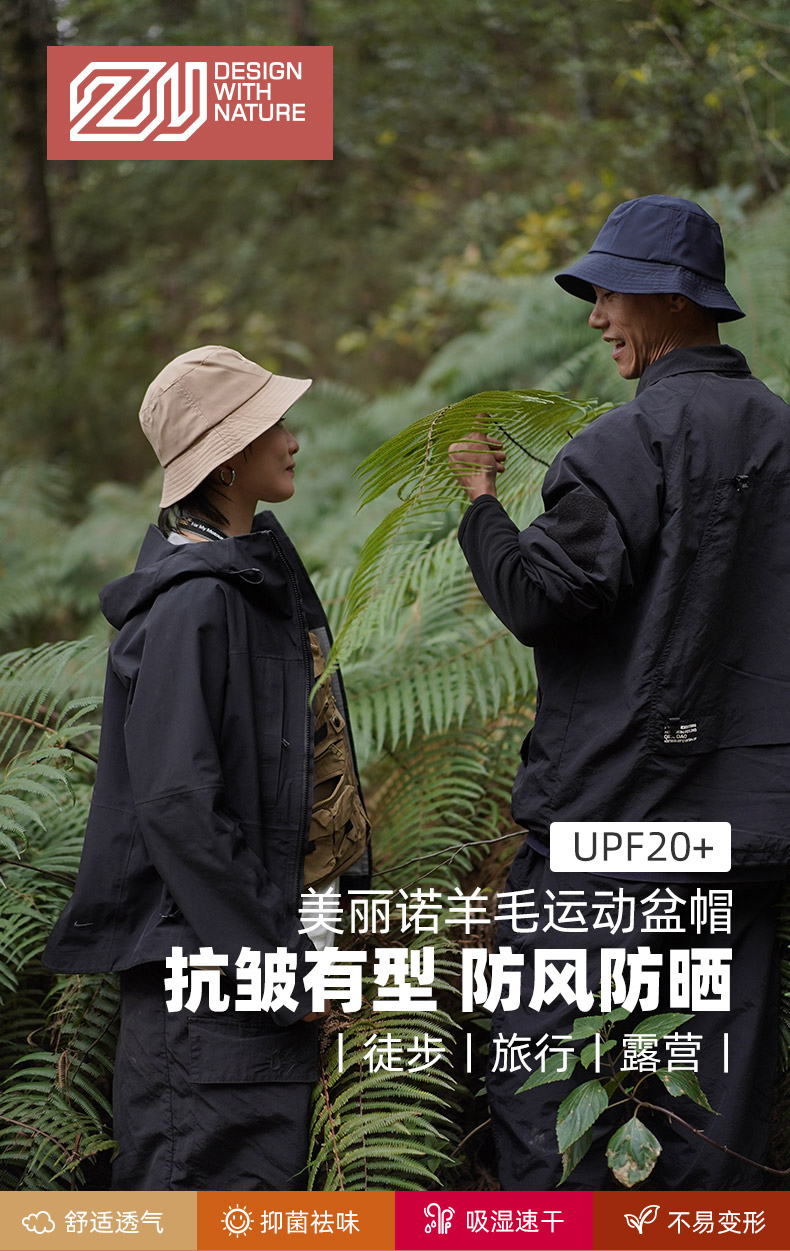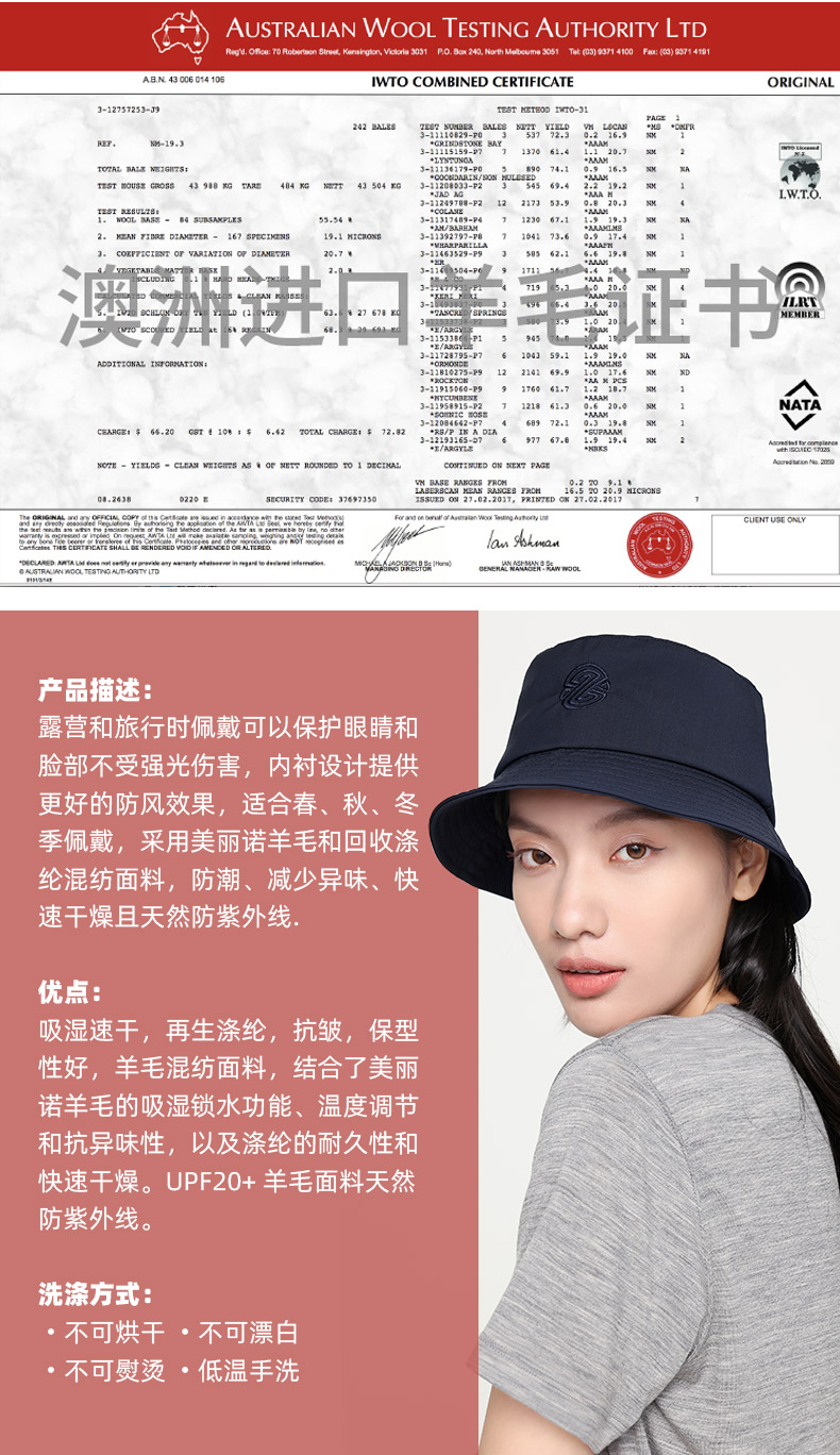 赛乐ZEALWOOD美利奴羊毛渔夫帽百搭庶阳帽防晒防紫外线