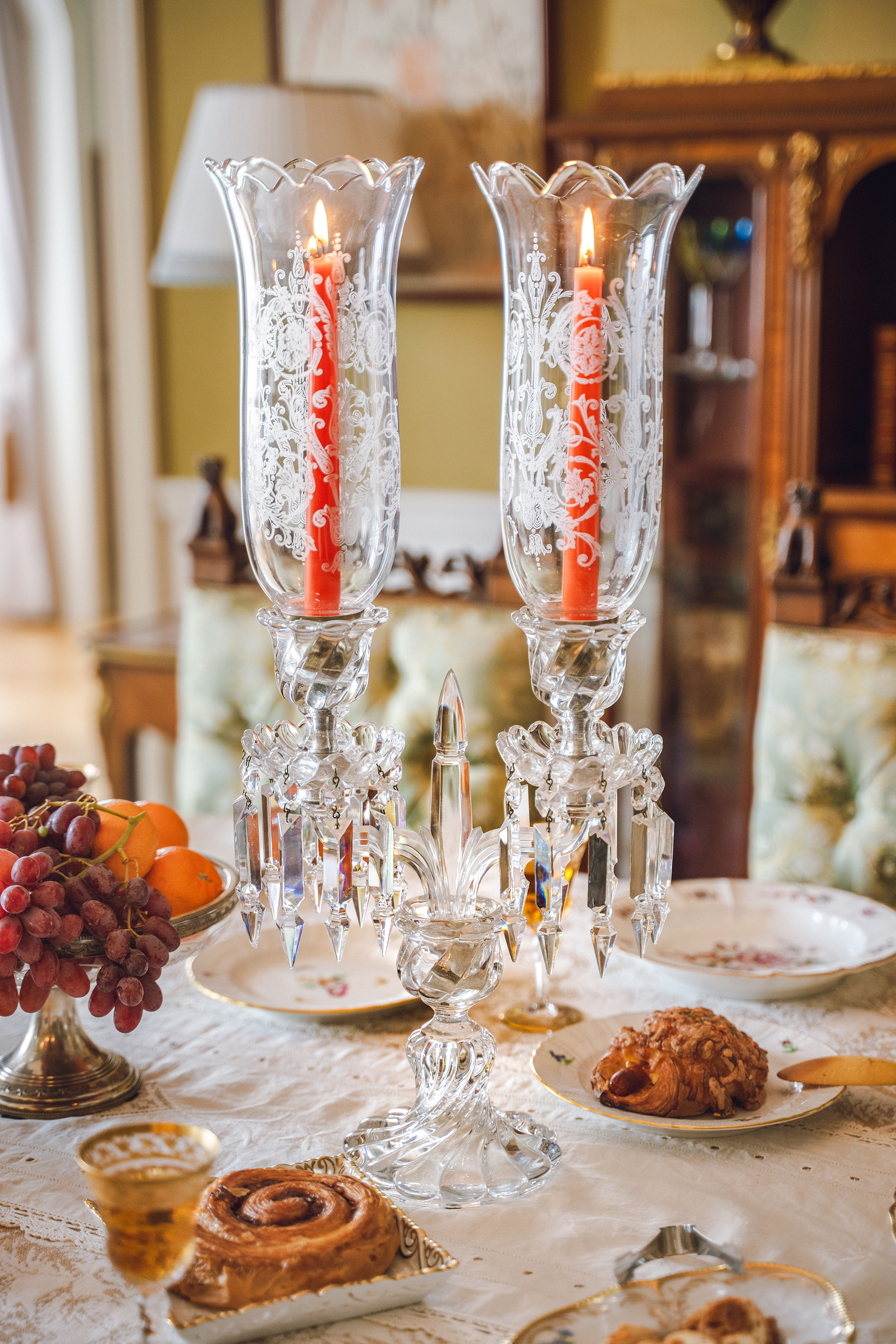 20世纪法国著名水晶工坊巴卡拉出品Bamboo竹纹款两枝头烛台一对