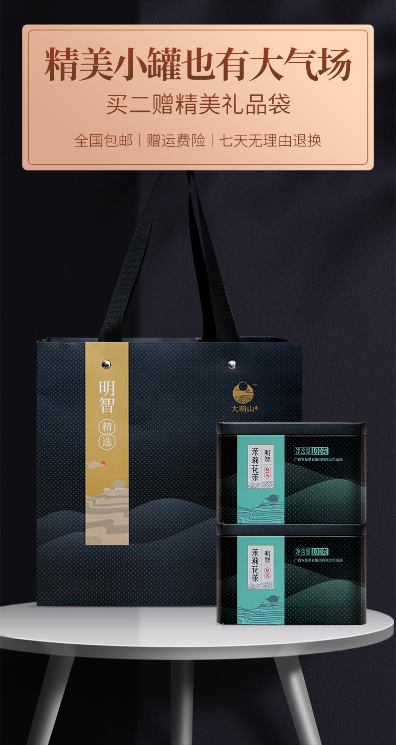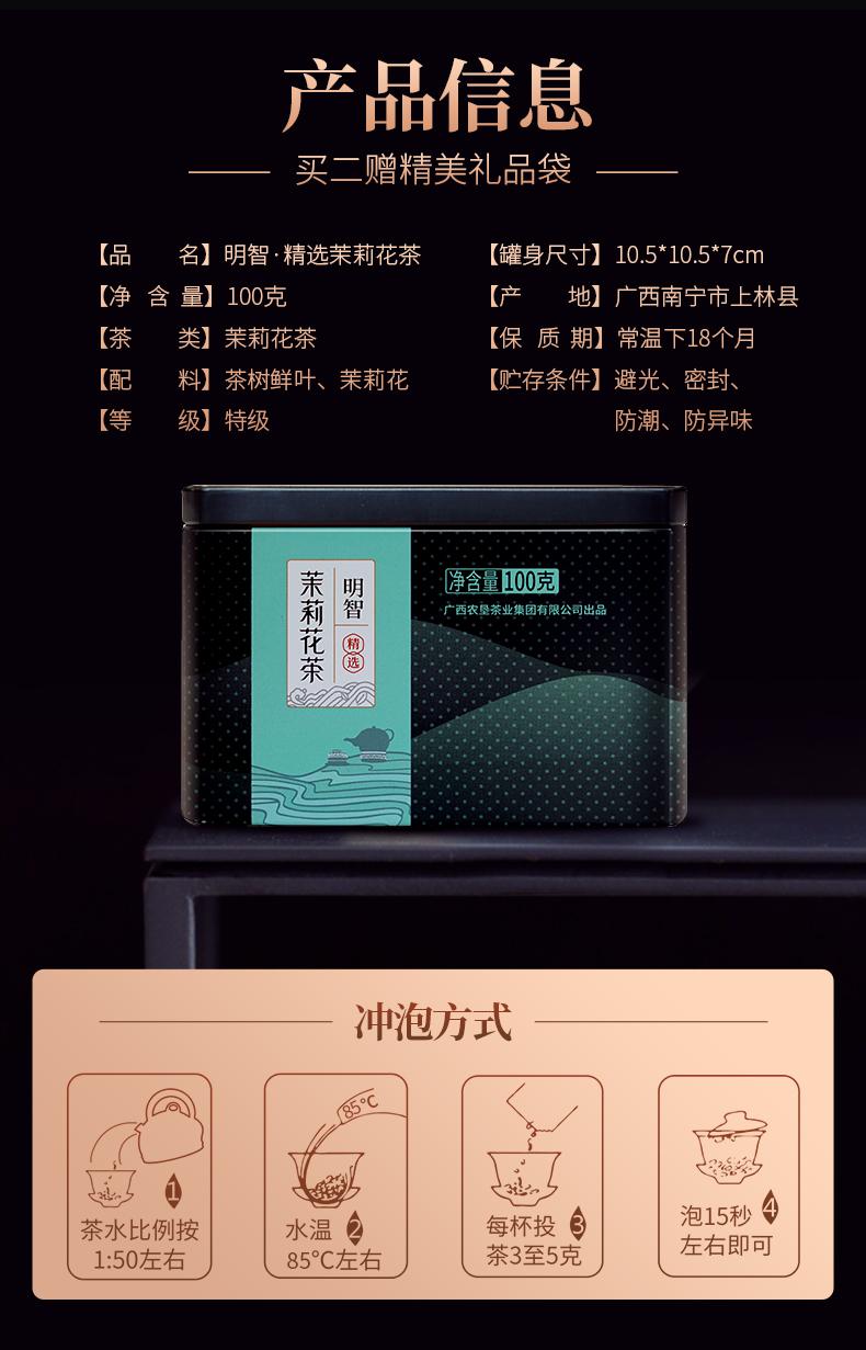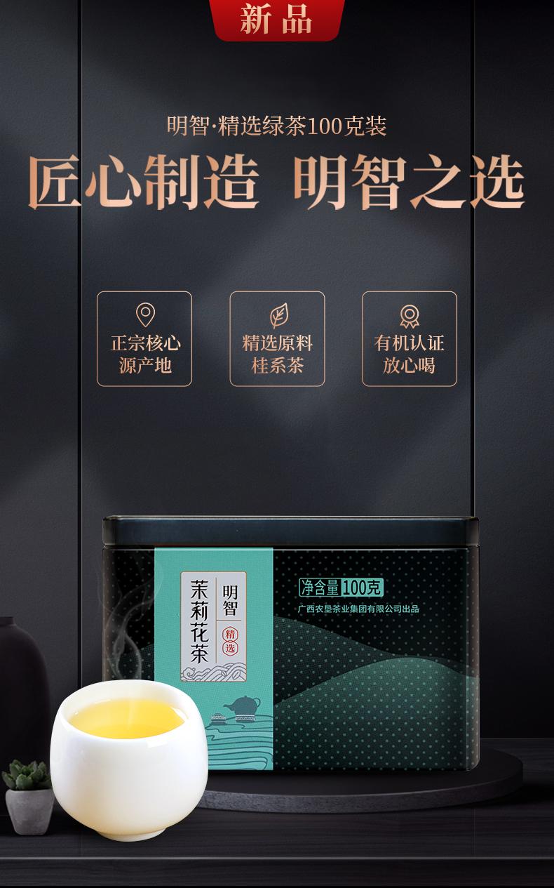 大明山 广西农垦茶叶 产品质量可溯源 有机认证 明智精选茉莉花茶 100g/罐