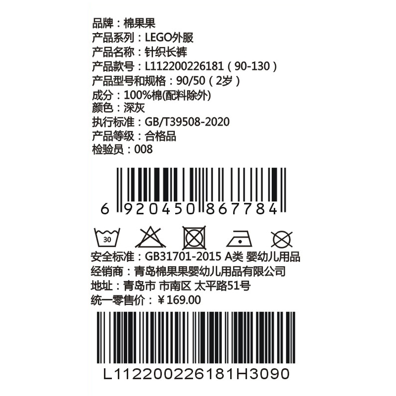 | 总裤长 | 51 | 56.5 | 62.5 | 68.5 | 75 |