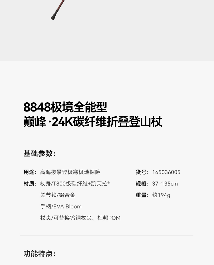 【巅峰】伯希和THE LIMIT SERIES系列24K碳纤维折叠登山杖