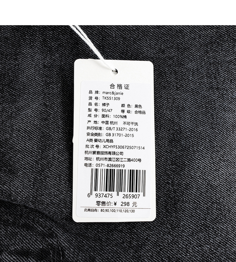马克珍妮男童挺括有型直筒牛仔裤2025年秋装新款551309