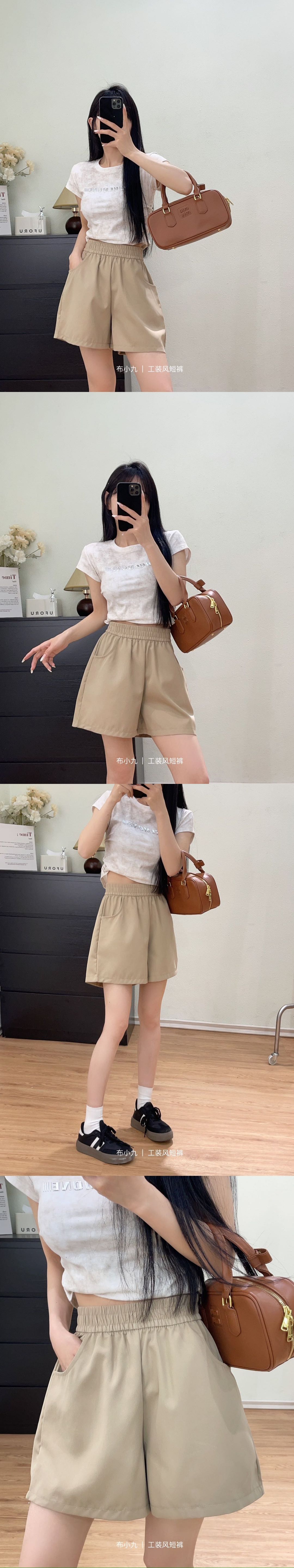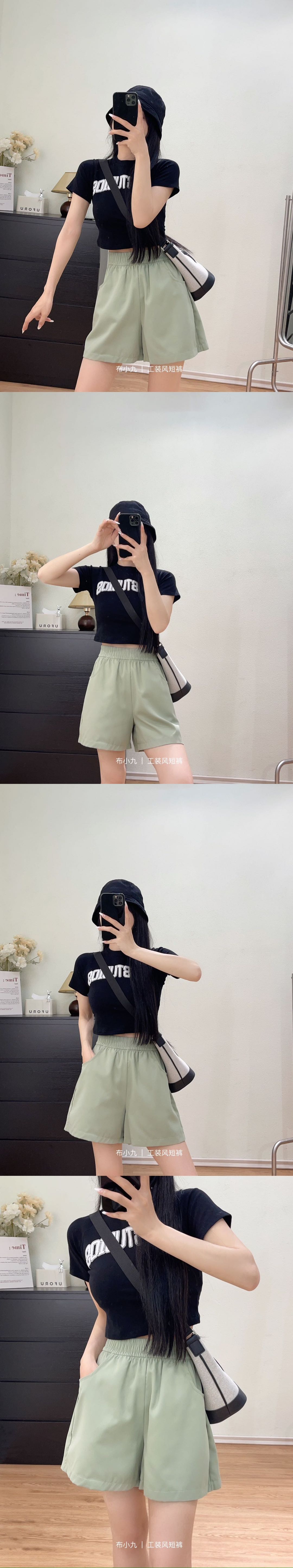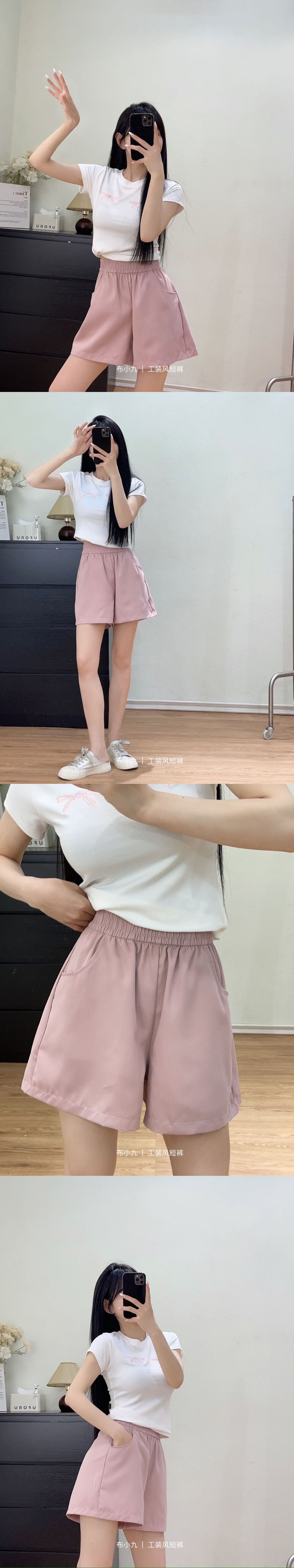 【YW】无忧购韩系简约纯色松紧腰阔腿运动休闲工装短裤(截单后3-5天发货)
