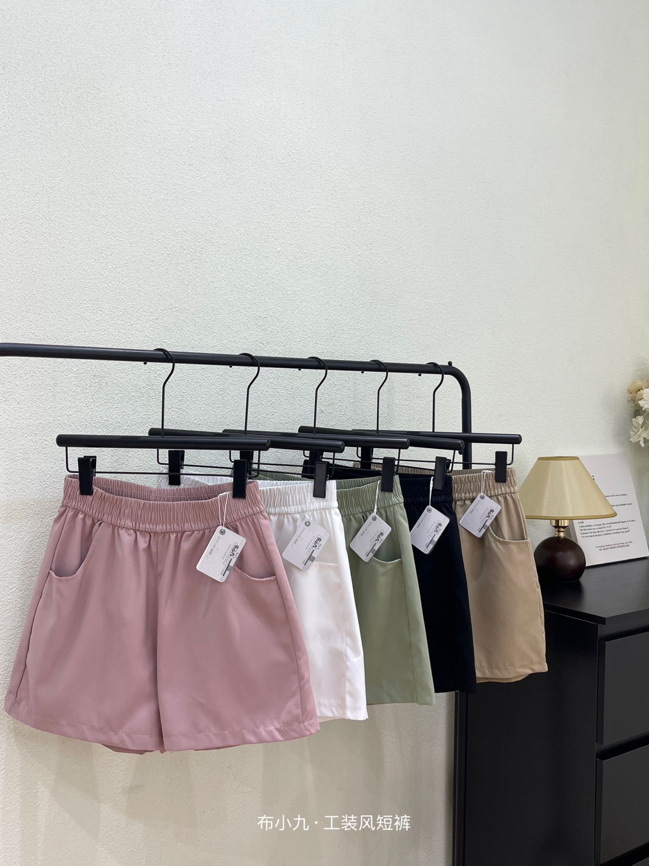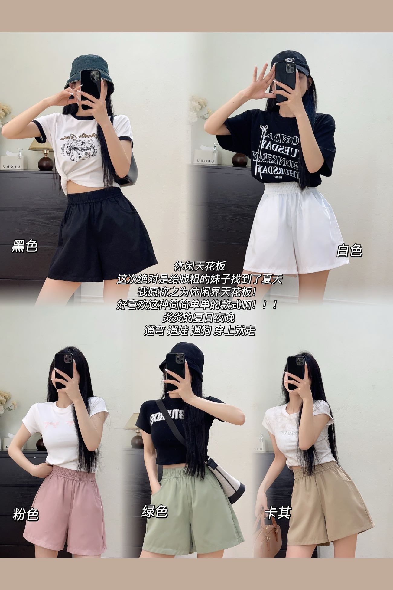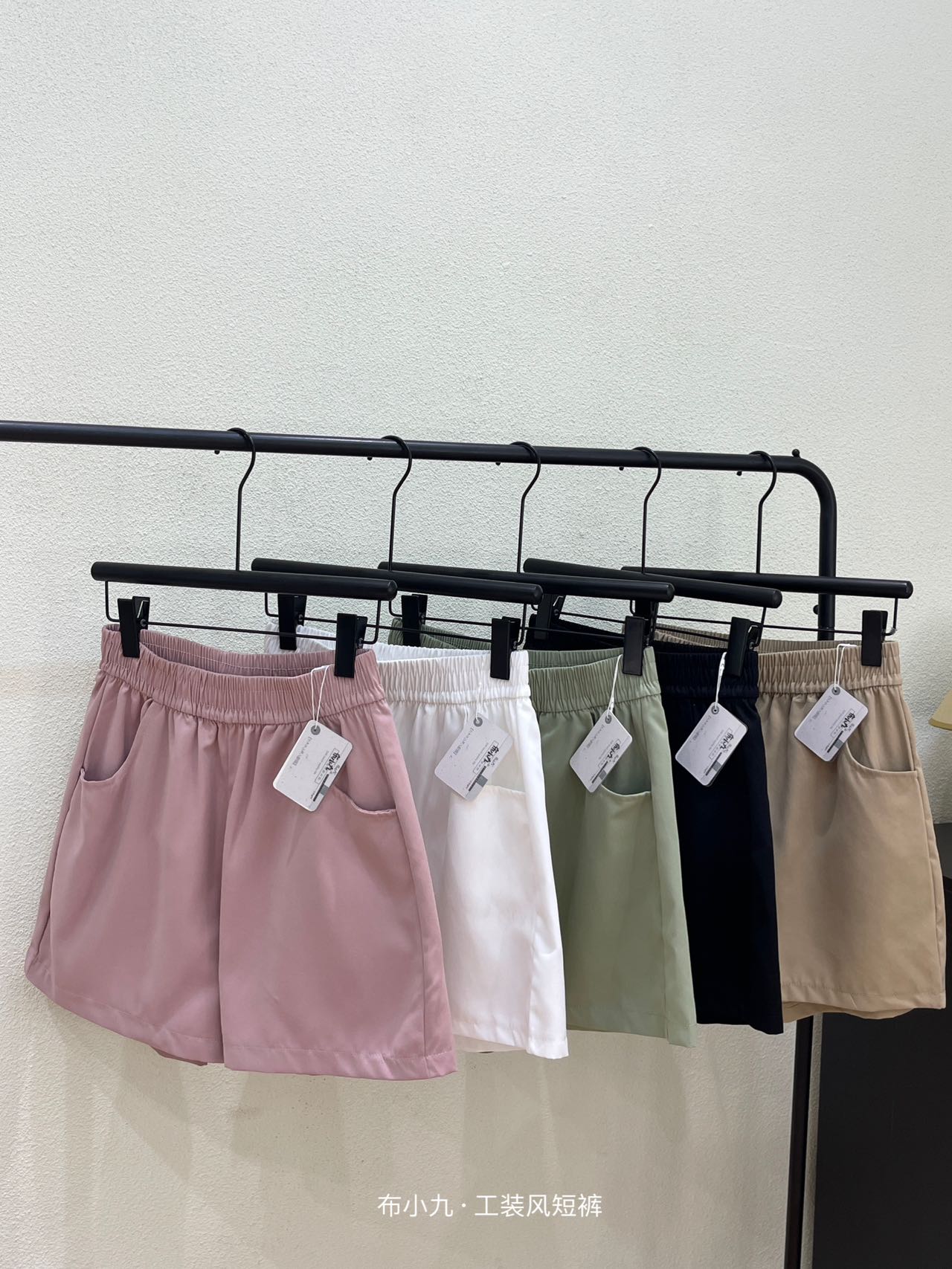 【YW】无忧购韩系简约纯色松紧腰阔腿运动休闲工装短裤(截单后3-5天发货)