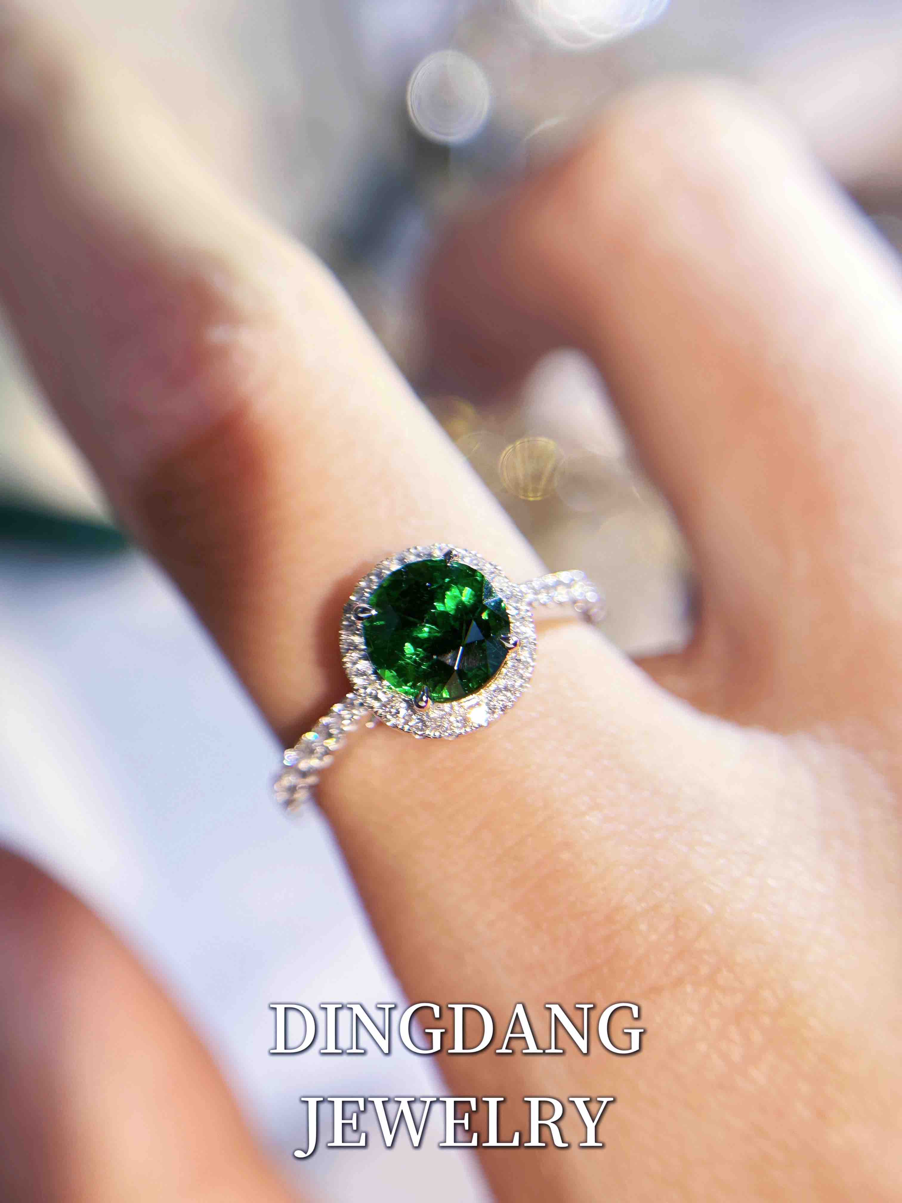 颜色非常浓郁,完全可以媲美祖母绿的高饱和度,浓艳深邃,晶体干净,火彩非常好,既通透灵动又闪耀明亮