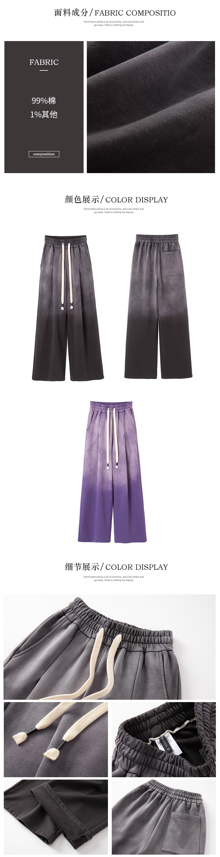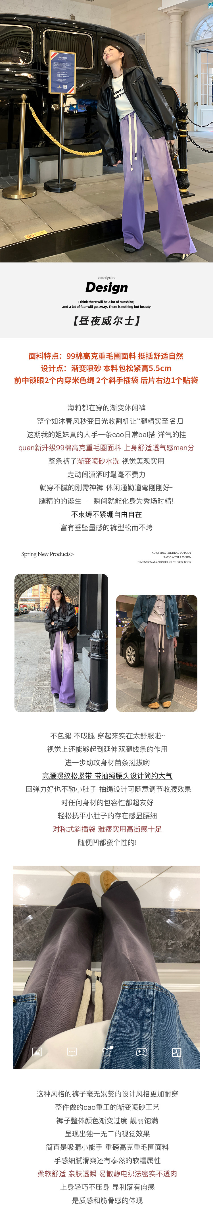 EKOOL~昼夜威尔士水洗渐变色高腰阔腿裤女春季新款百搭显瘦休闲裤