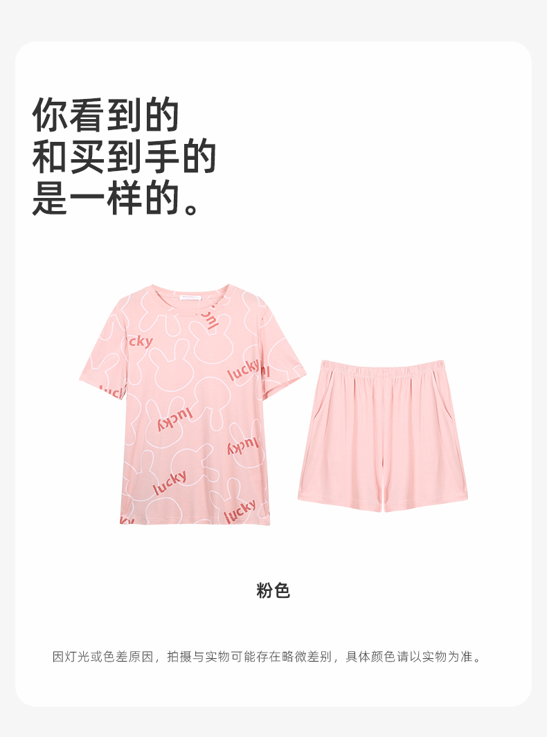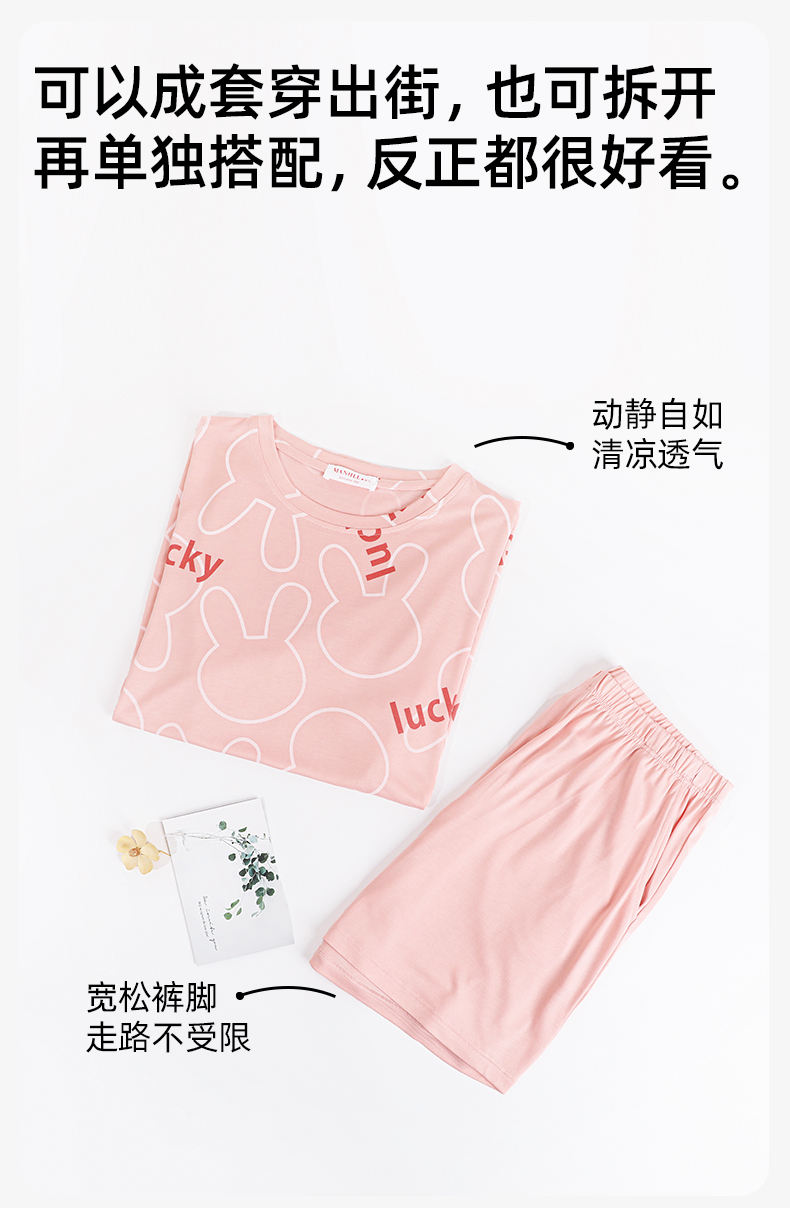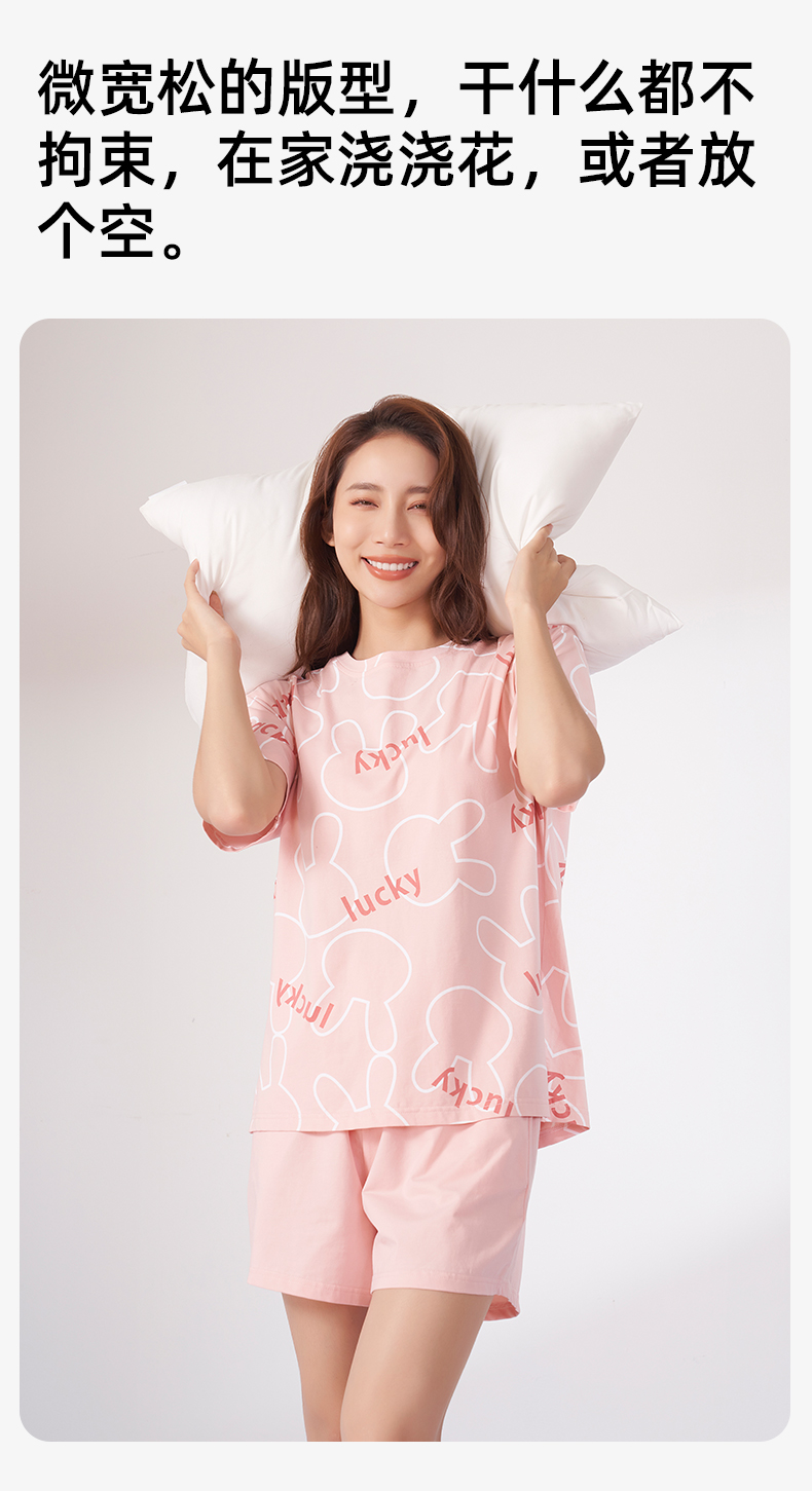 熳洁儿 夏季家居服女士精梳棉短袖短裤套装幸运兔子商场同款23203207