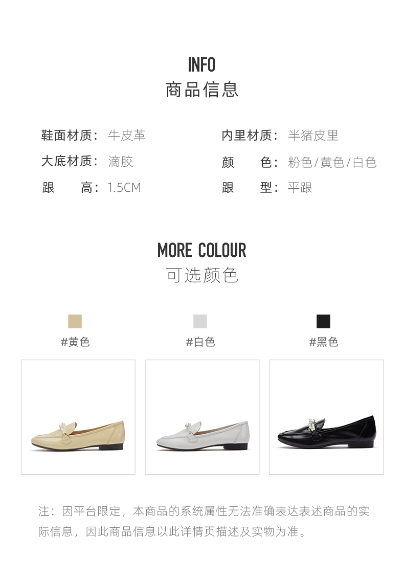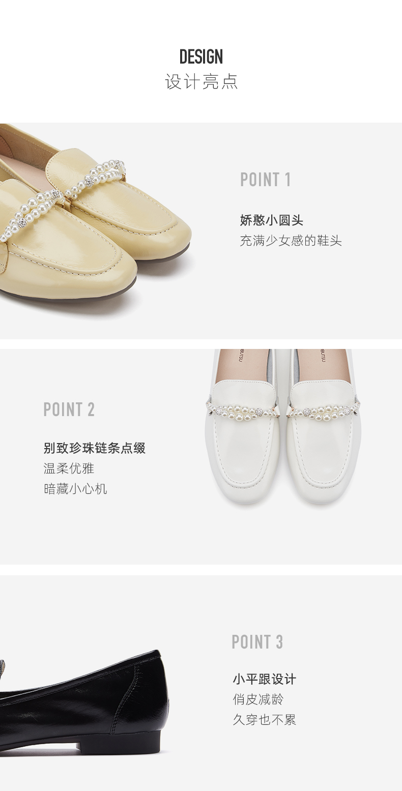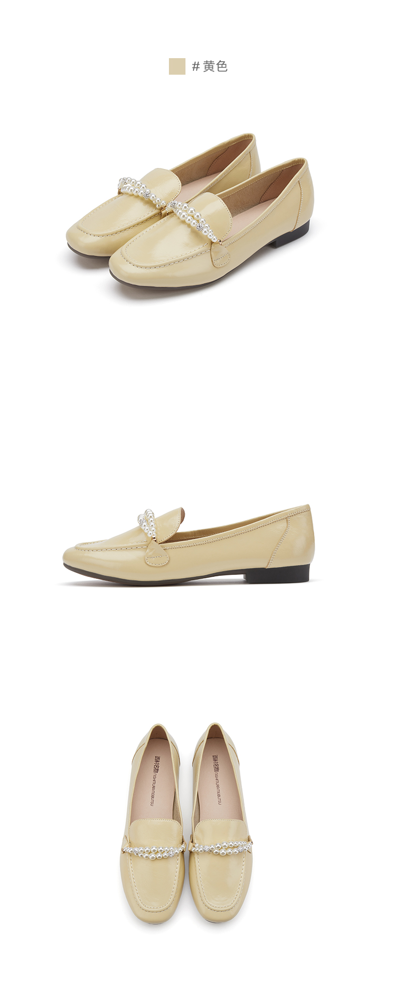 西村名物2021秋季新款方头真皮乐福鞋女反绒珍珠链平底单鞋T21CM34001