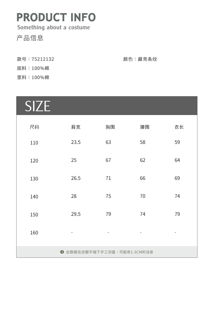 参考身高: 110cm 120cm 130cm 140cm 150cm