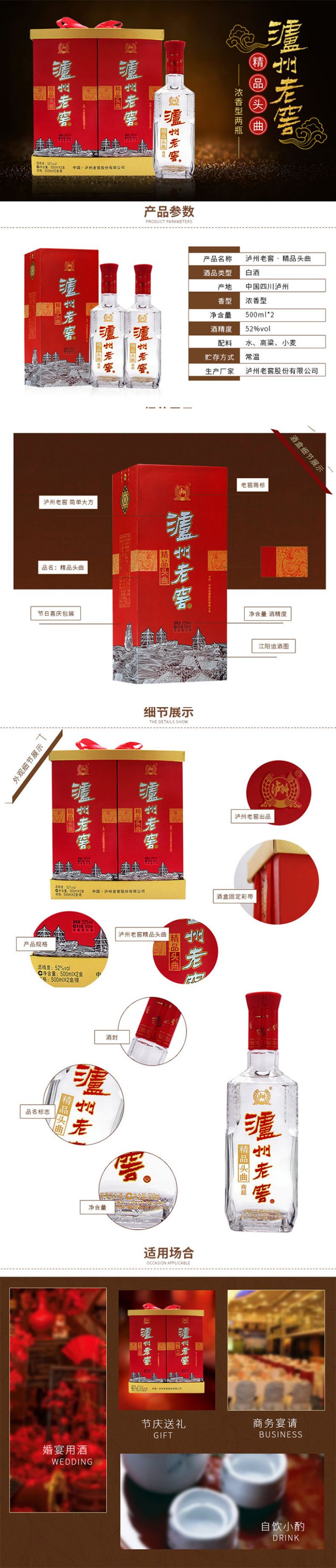 下架【泸州老窖】52泸州老窖精品头曲商超500ml*2*3