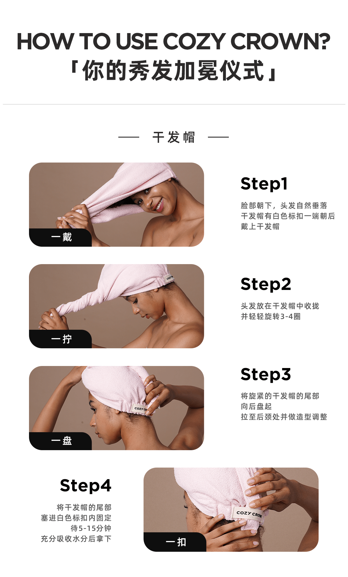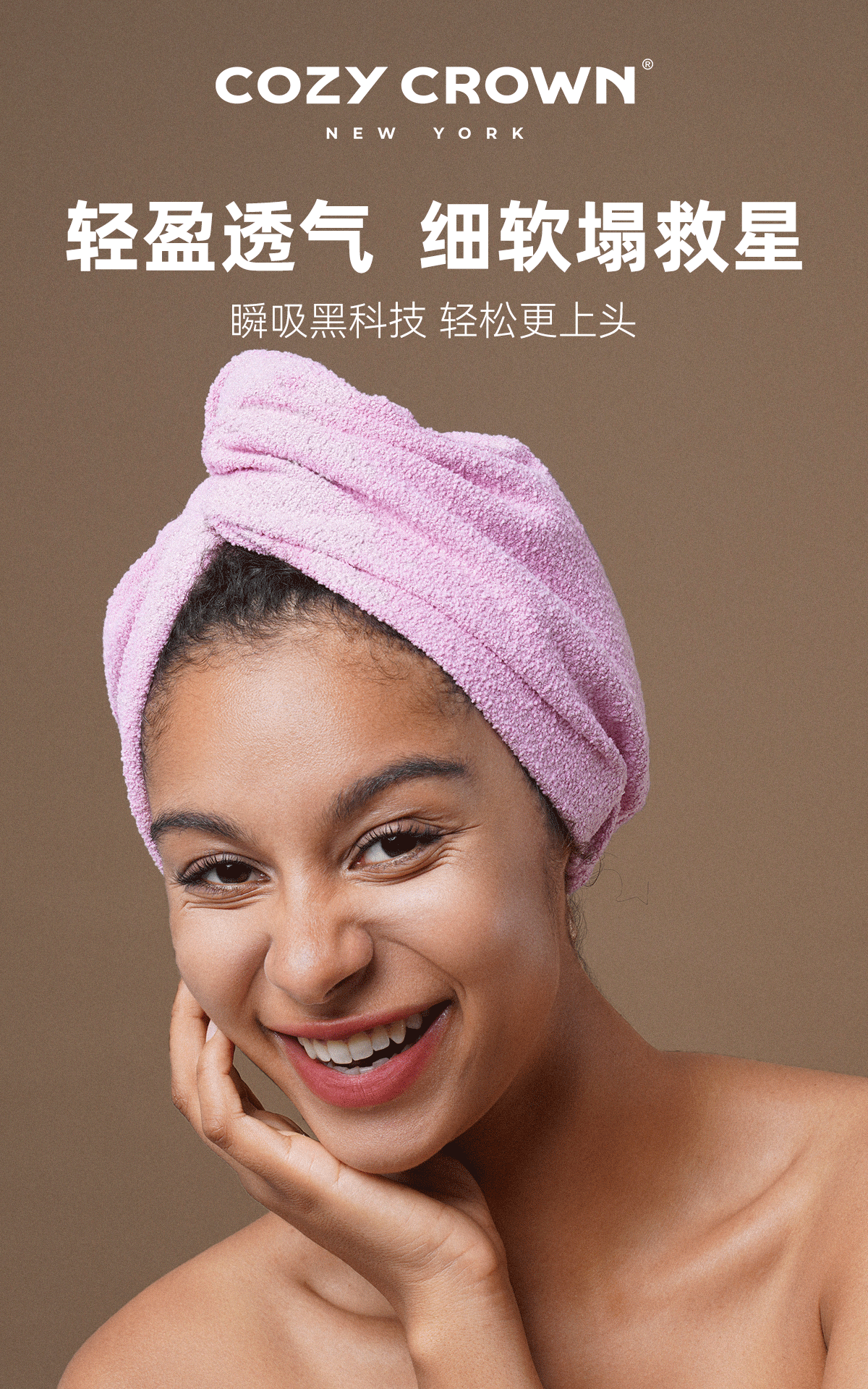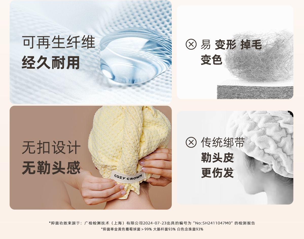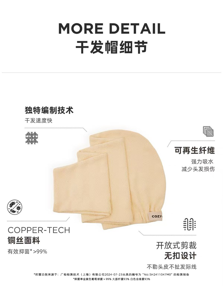 品牌直发 COZY CROWN 铜丝平纹Pro干发帽 落日粉/奶油黄/摩卡灰/极光紫/静奢灰