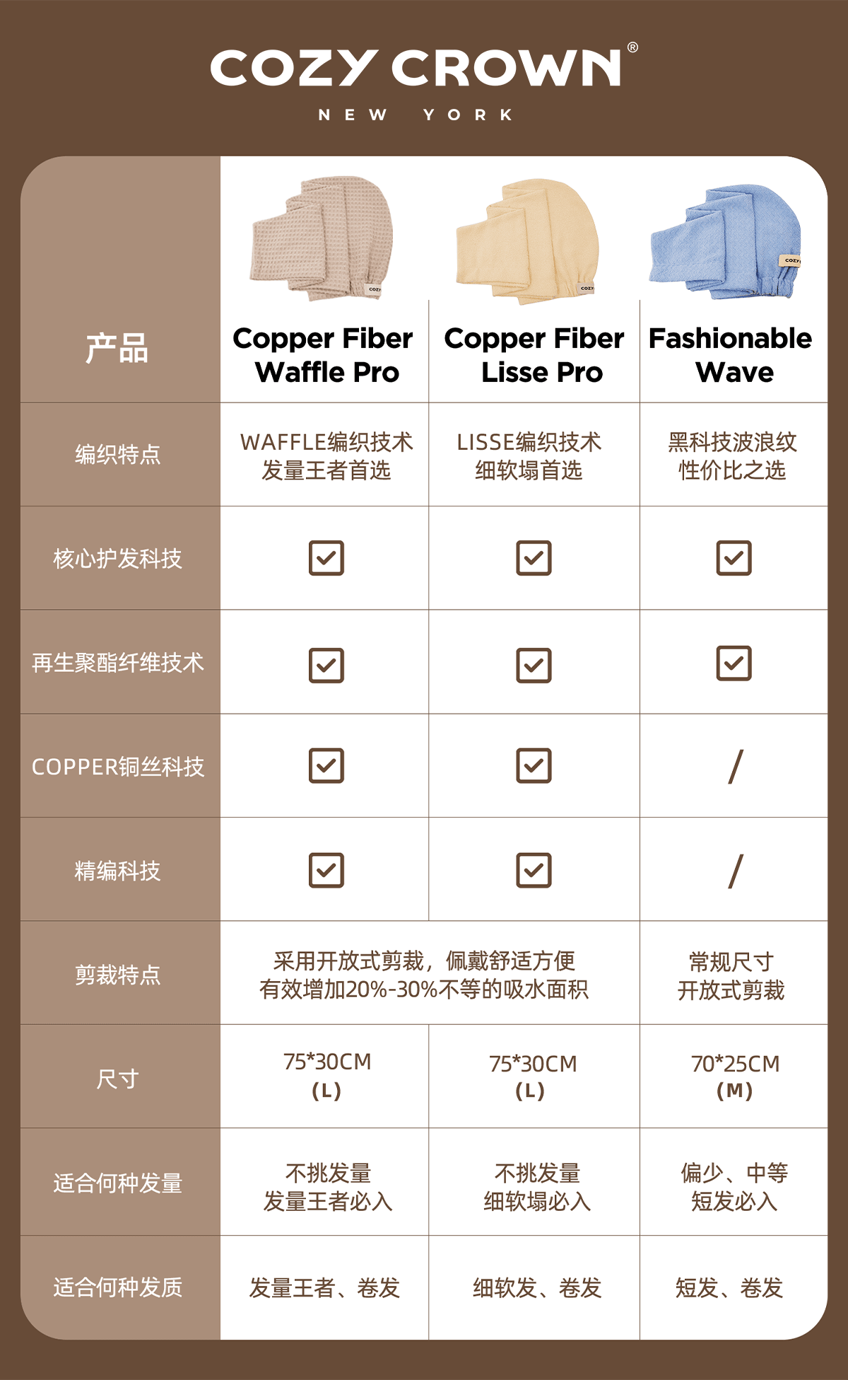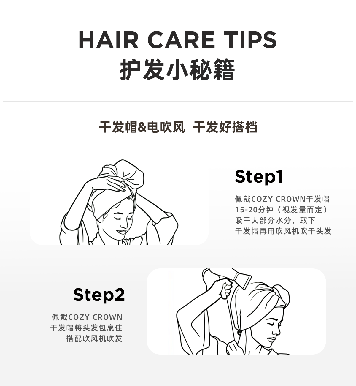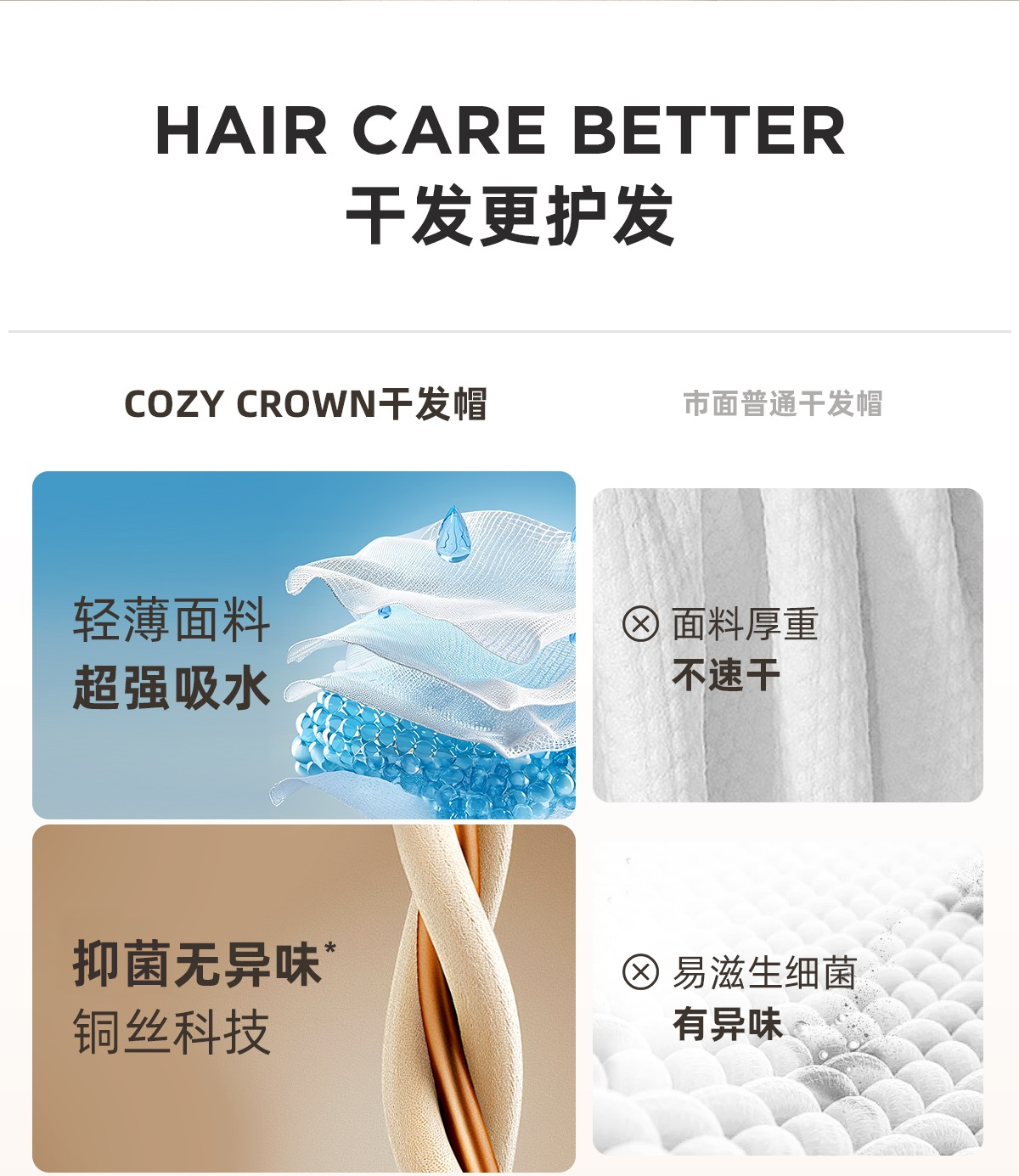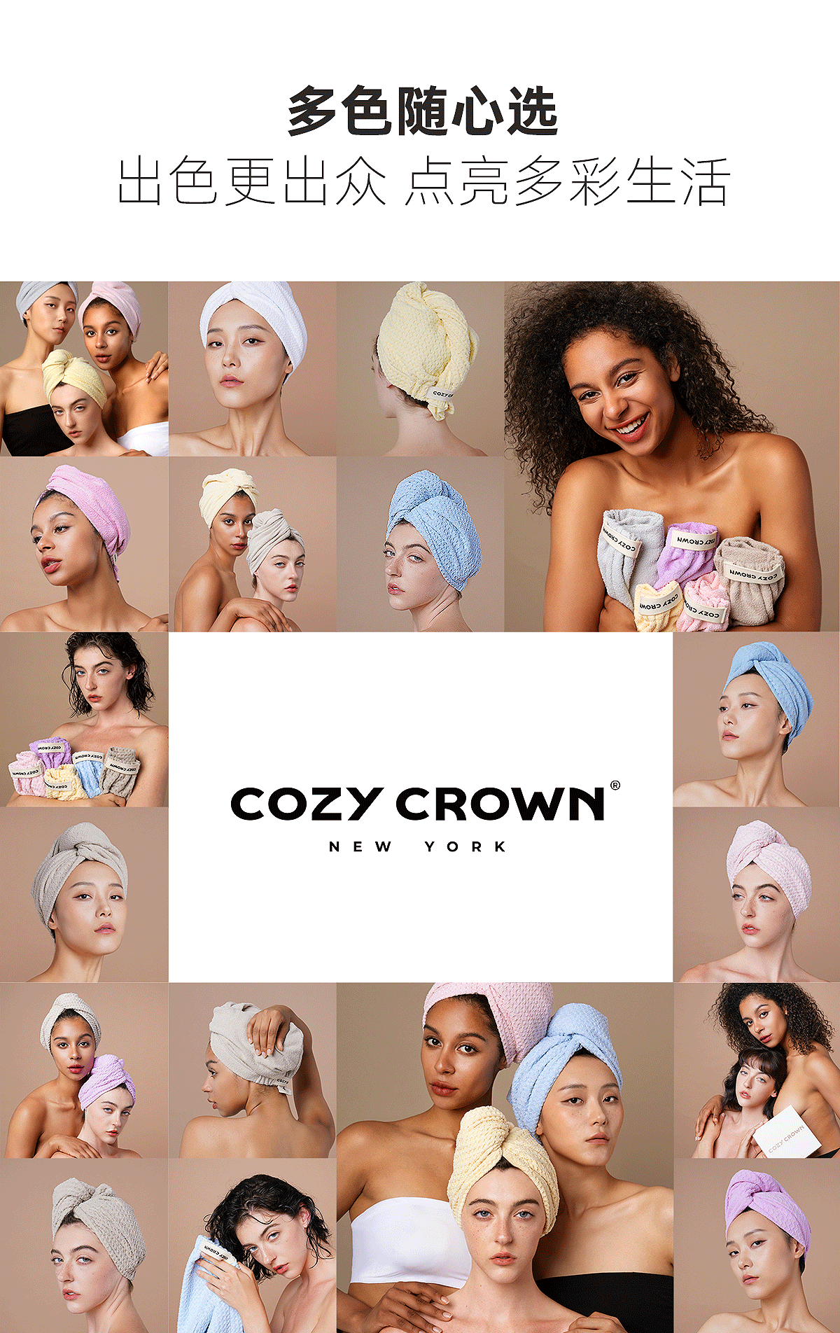 品牌直发 COZY CROWN 铜丝平纹Pro干发帽 落日粉/奶油黄/摩卡灰/极光紫/静奢灰