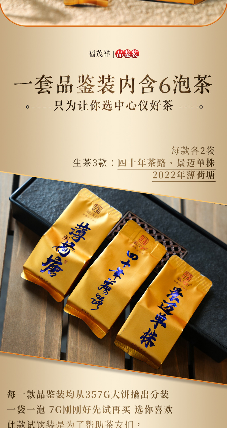 【品牌推广】【品鉴装】店铺品质典范 精选6泡高阶生普 四十年茶路+22年薄荷塘+景迈单株各2泡 共42g