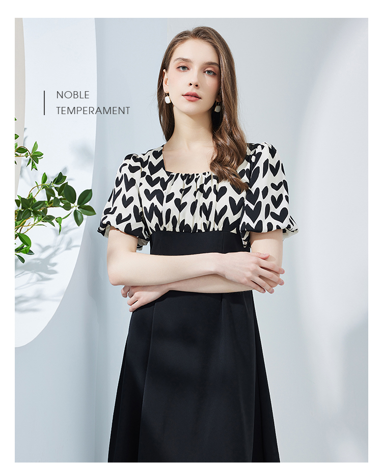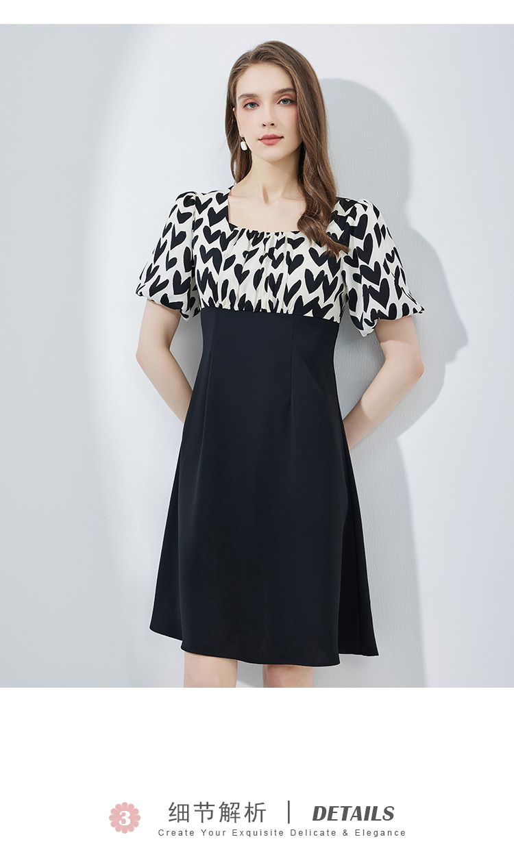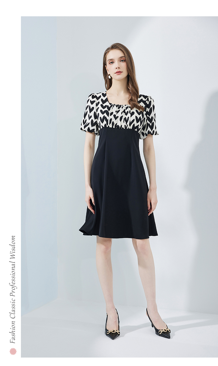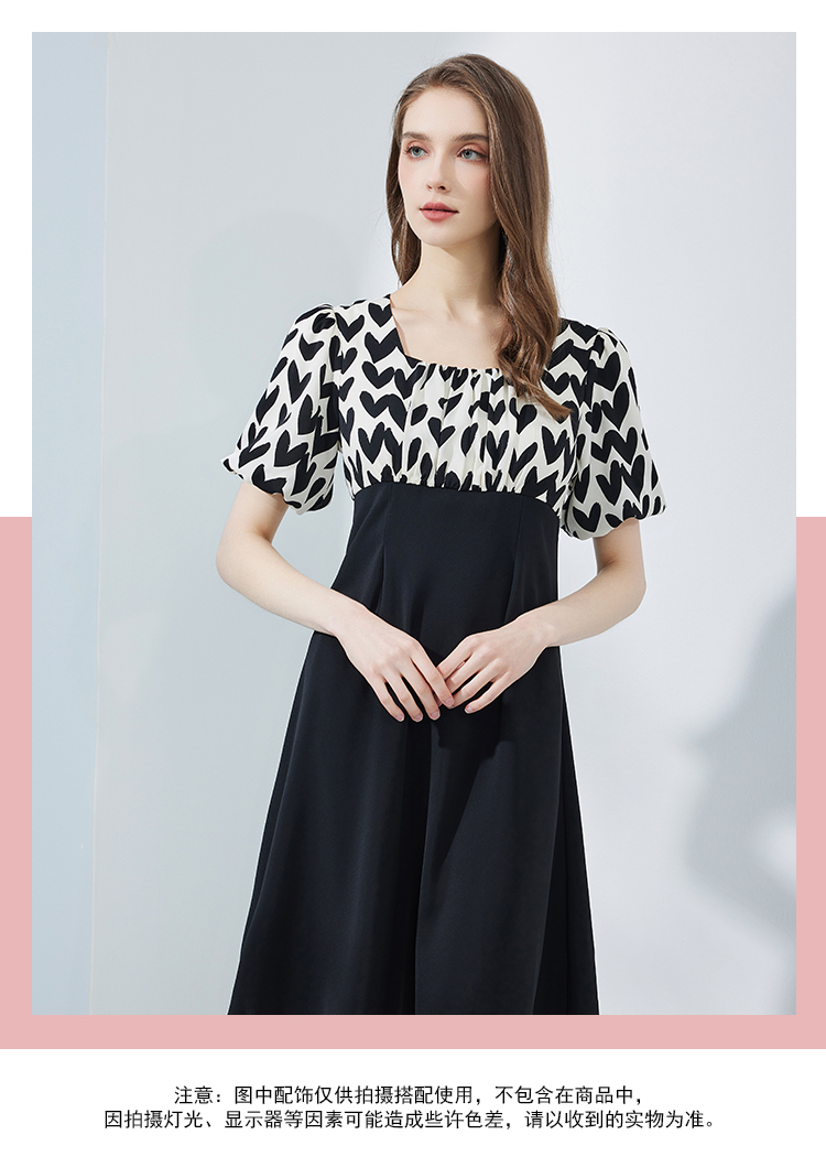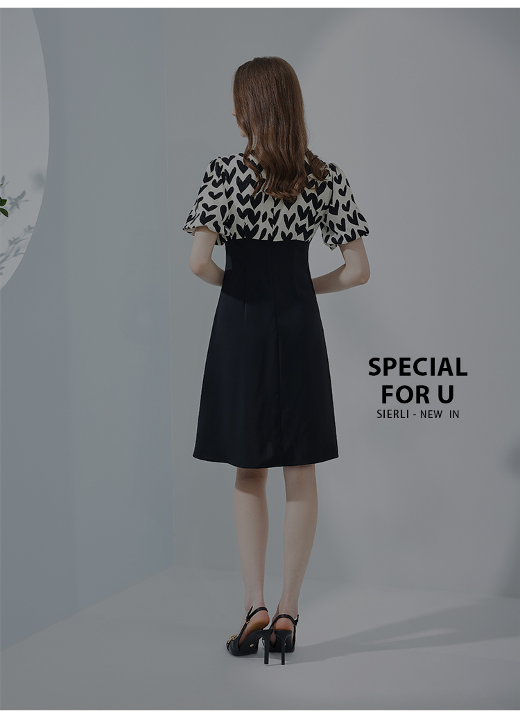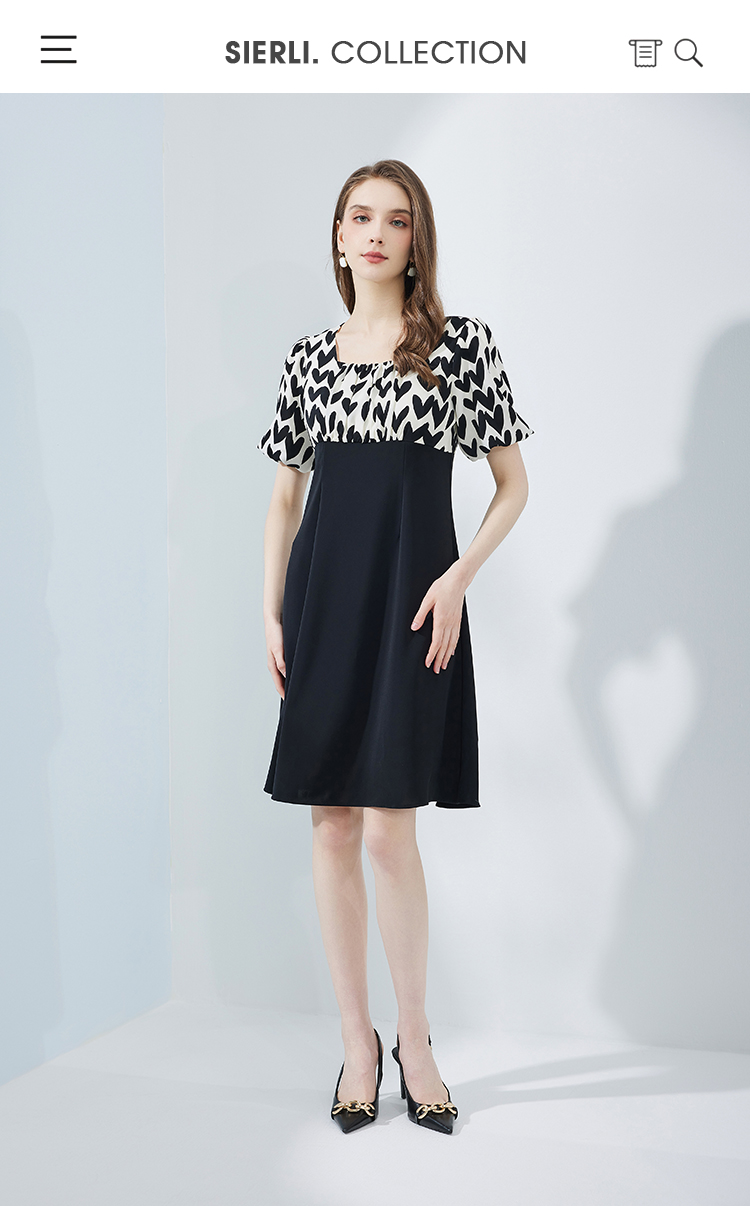 NF8H4斯尔丽瑟俪2023夏季新款高腰节色拼接A摆连衣裙