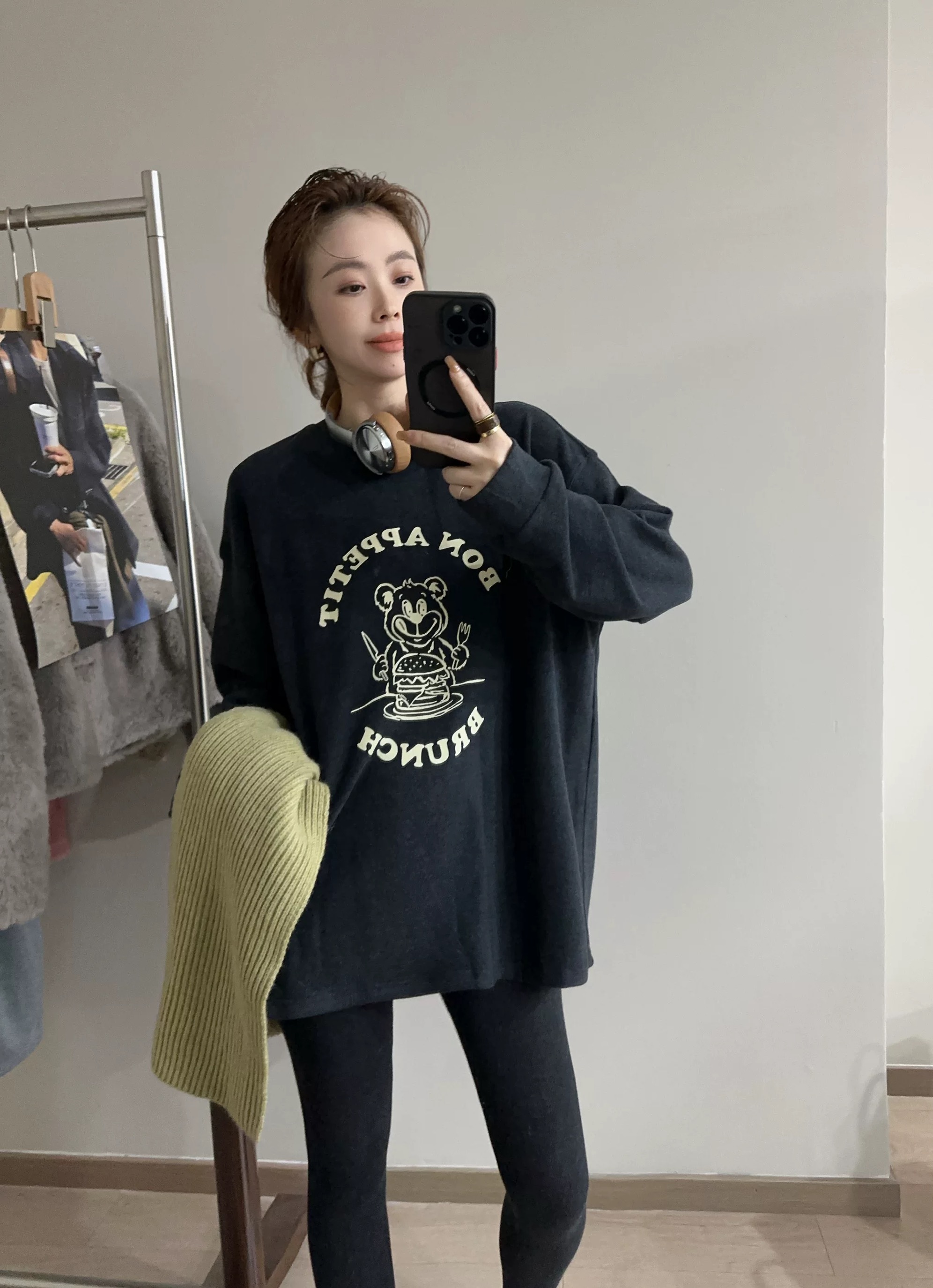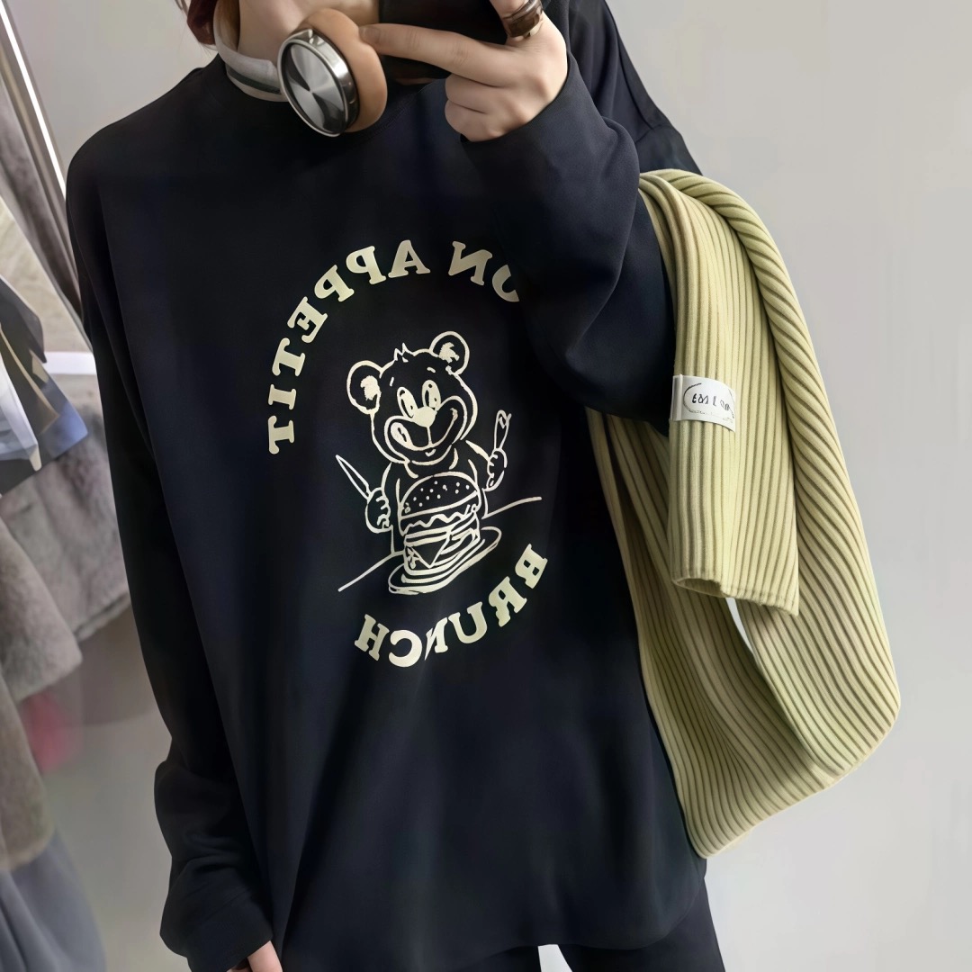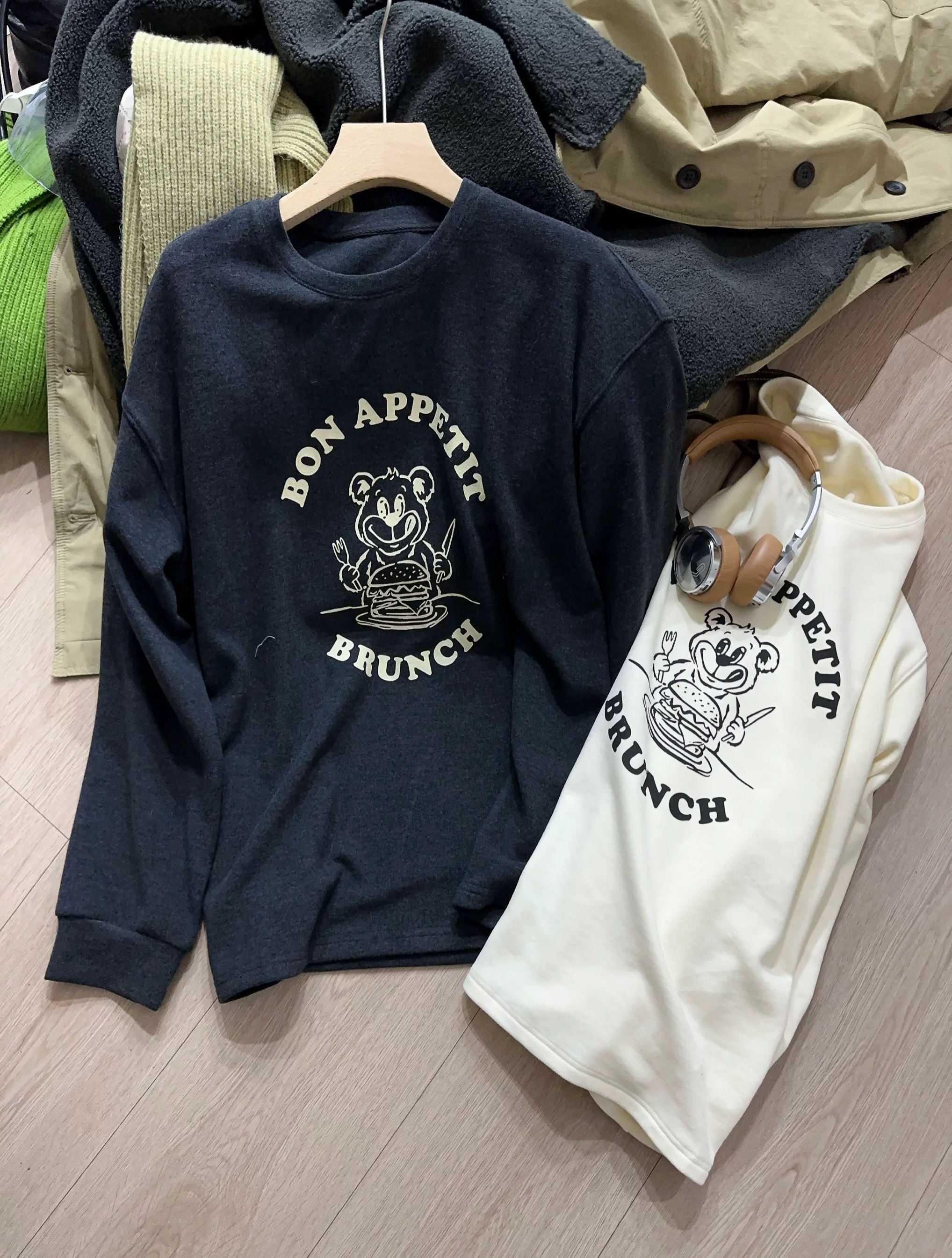 老米优品🎈2色入!《卡通小熊澳绒宽松长袖tee》秋冬打底松弛感满满,显瘦又温暖!T251201A