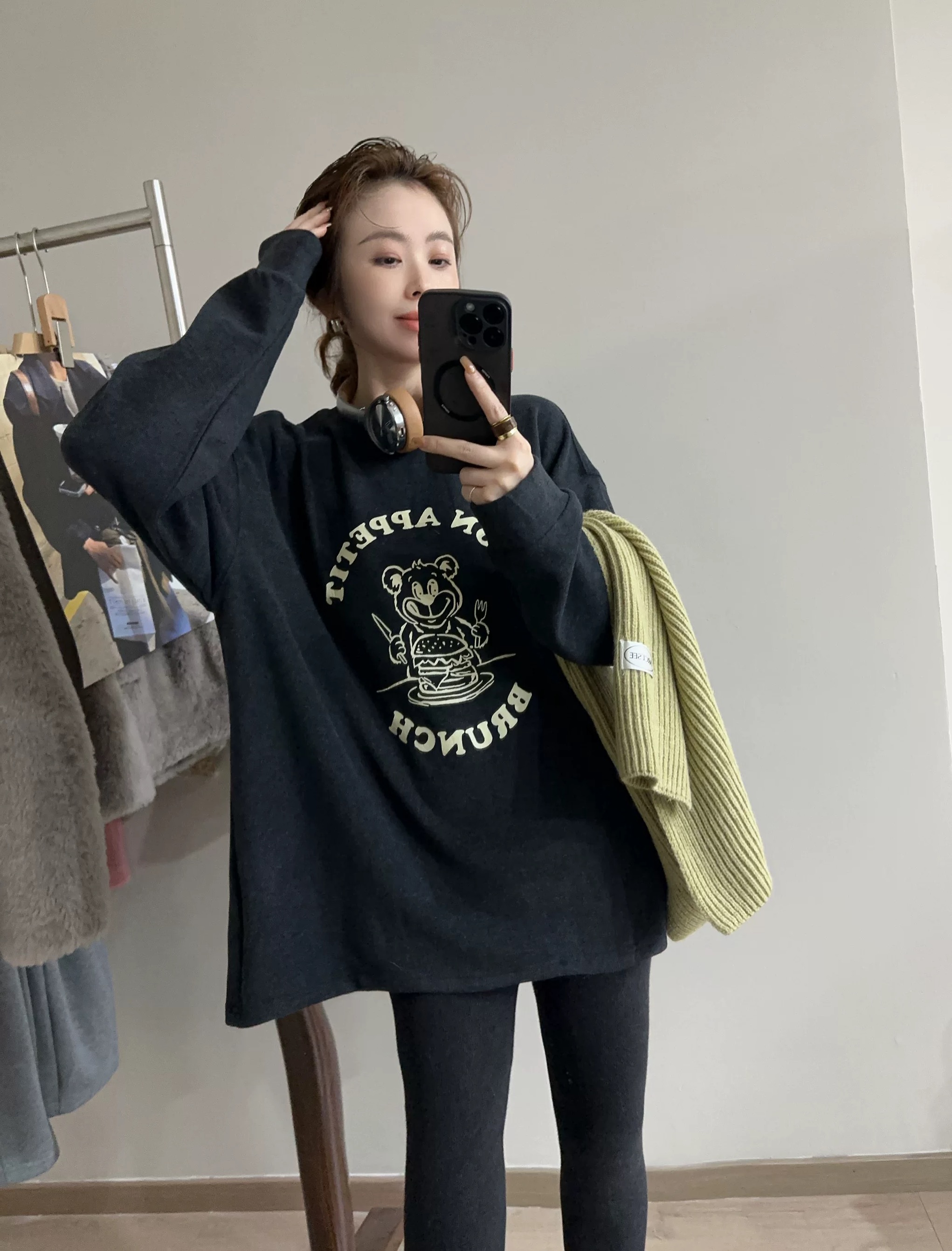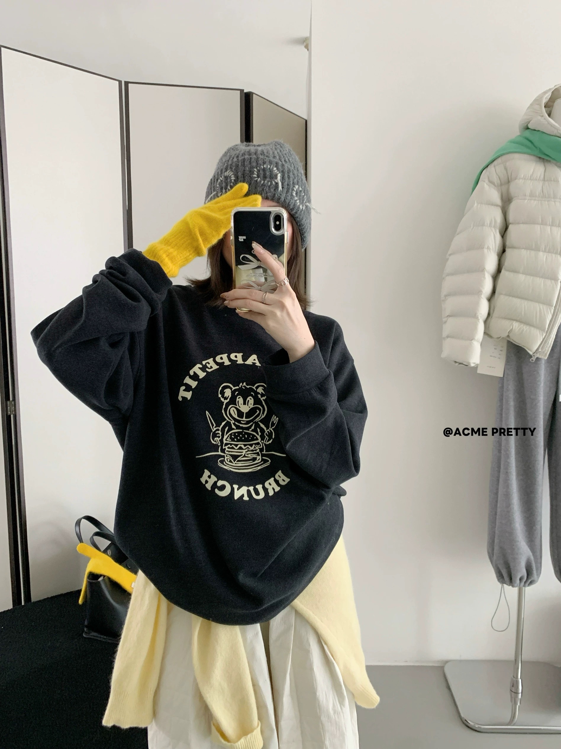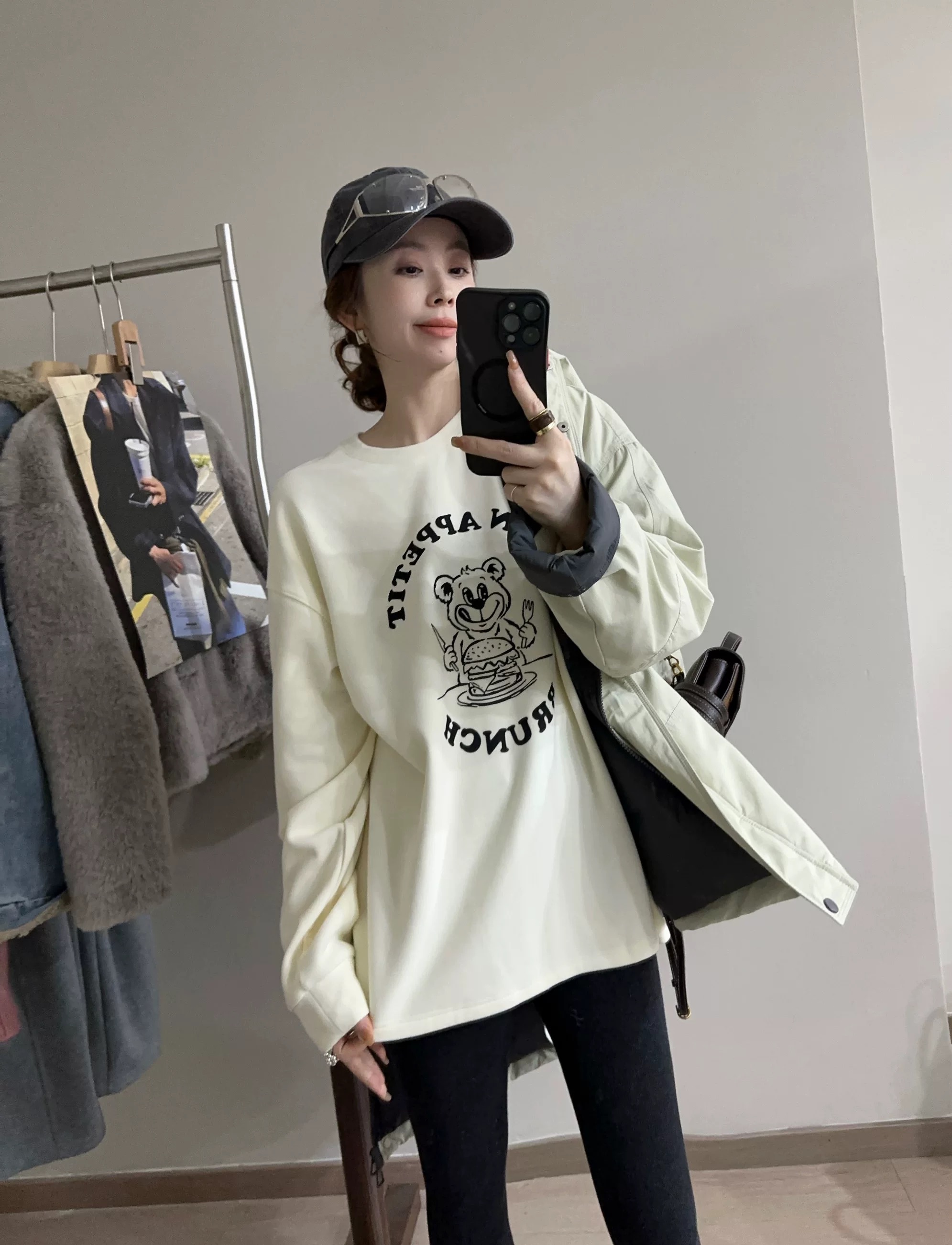 老米优品🎈2色入!《卡通小熊澳绒宽松长袖tee》秋冬打底松弛感满满,显瘦又温暖!T251201A