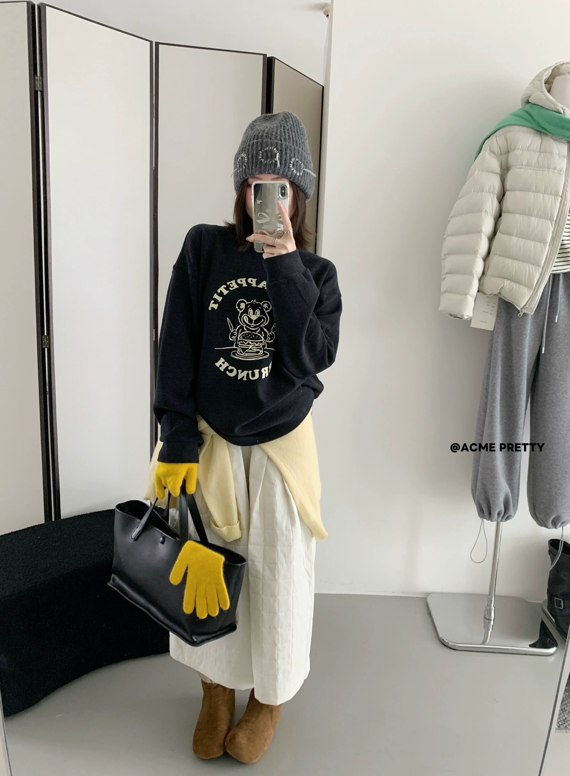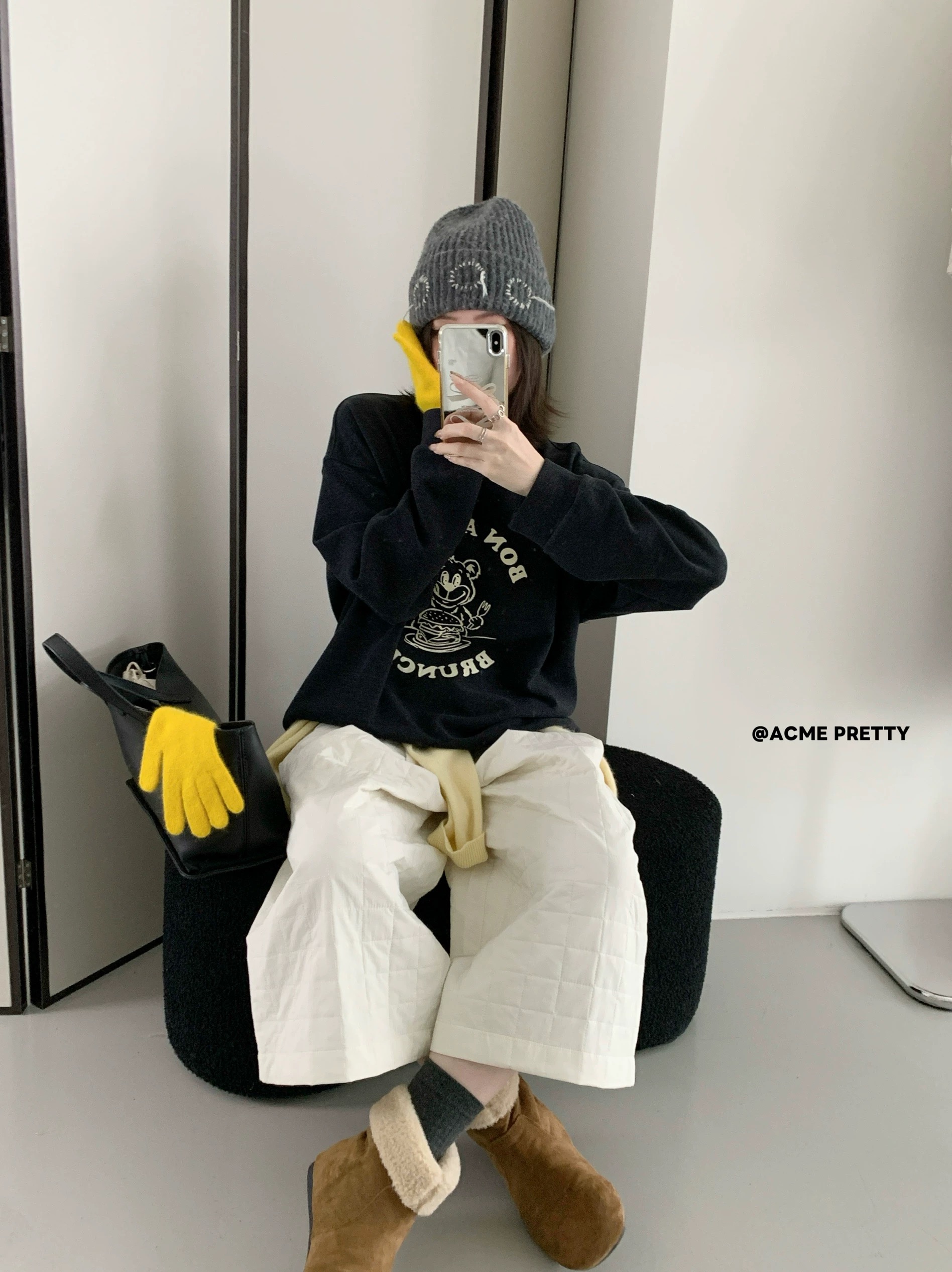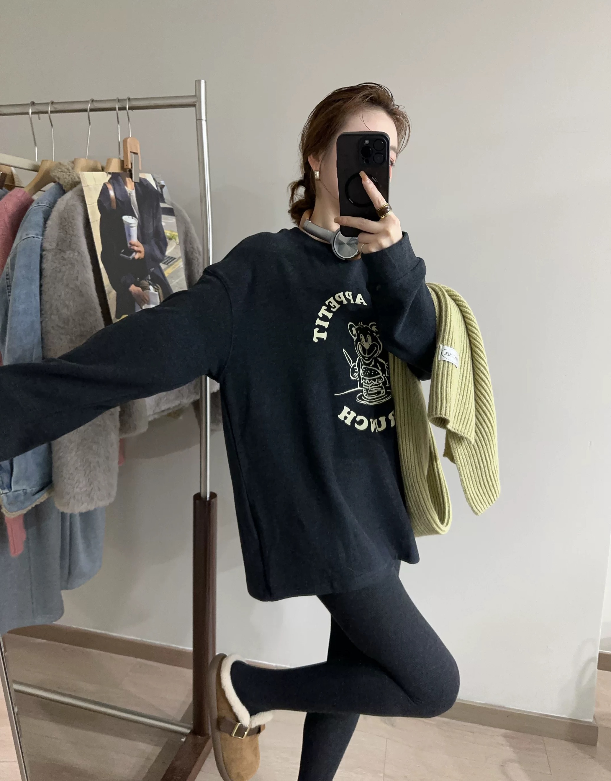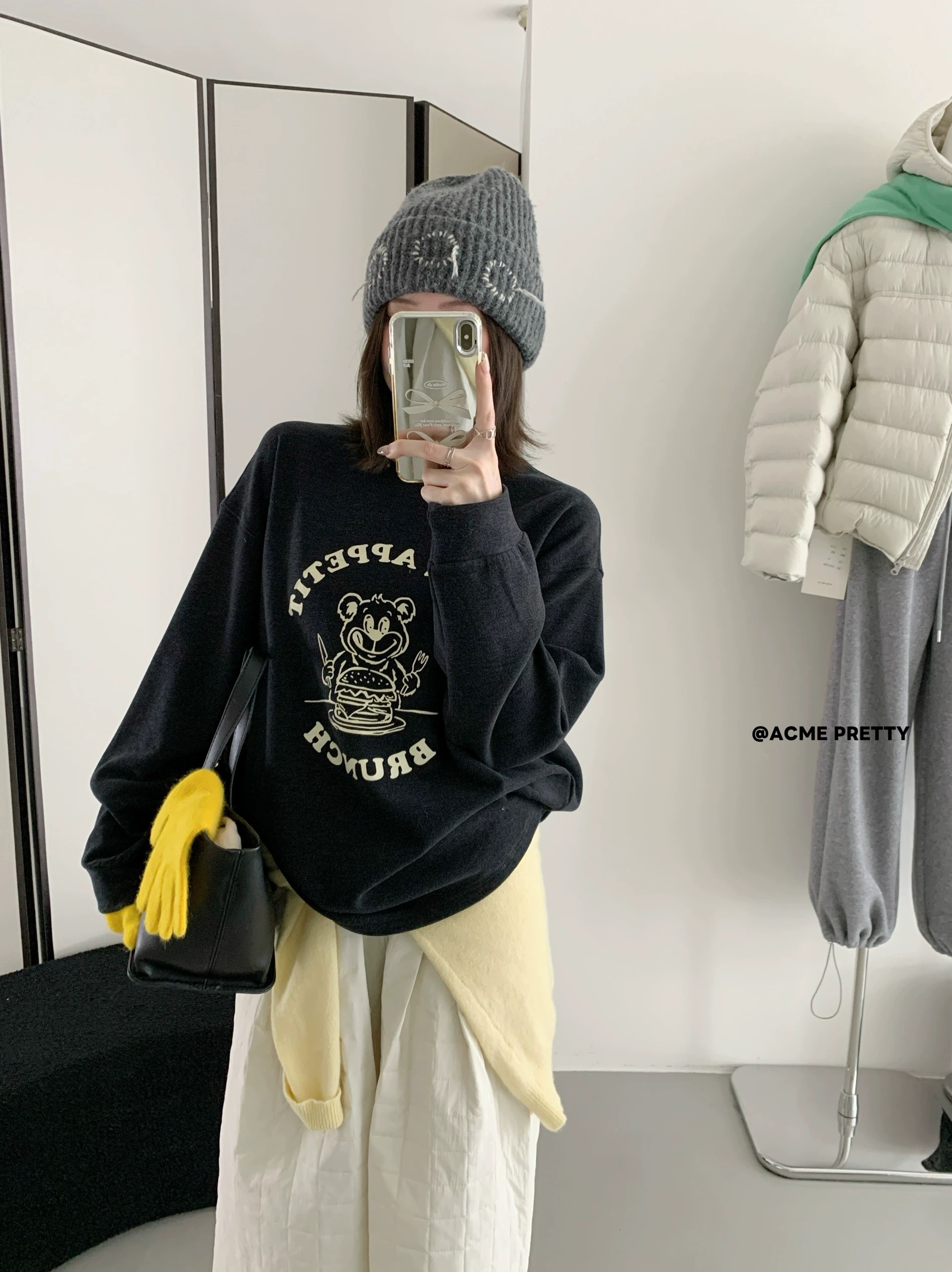 秋冬打底很nice的一款,澳绒的触感真的好糯啊,温暖的贴肤质感,一秒及暖!可爱小熊印花,减龄又自带复古feel,而且谁穿谁瘦!
