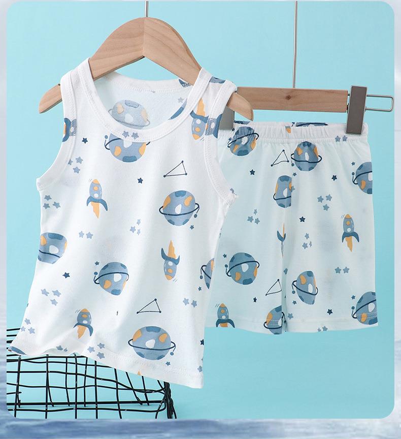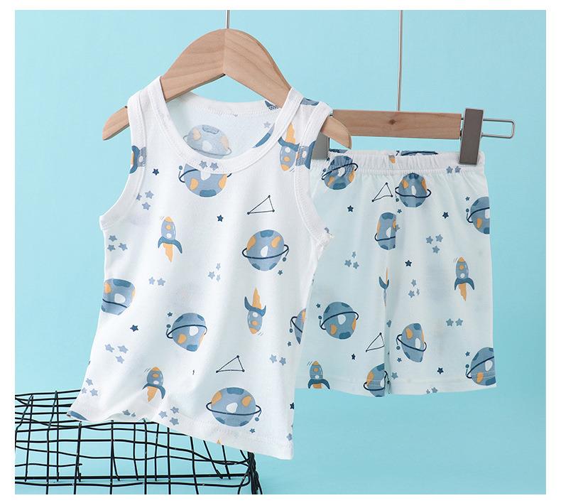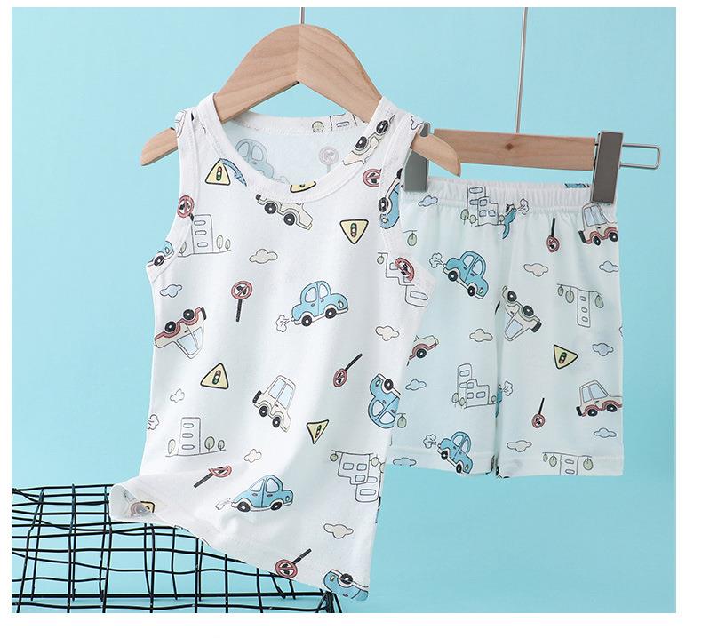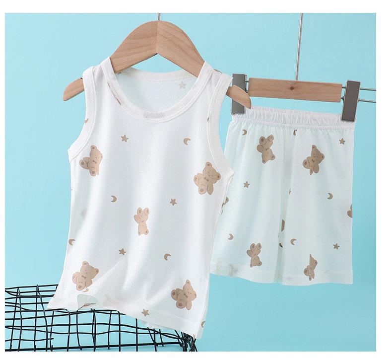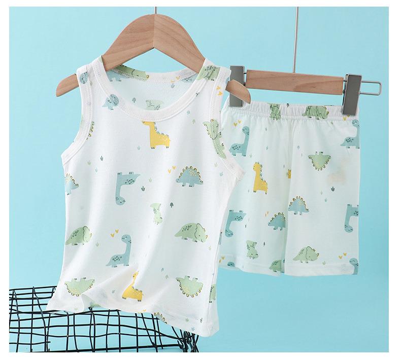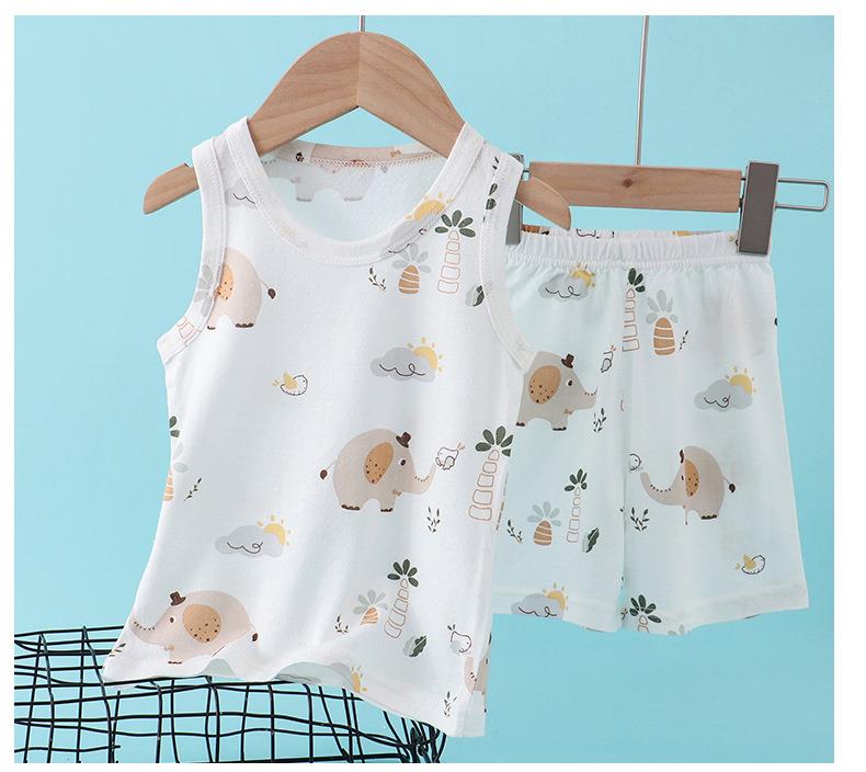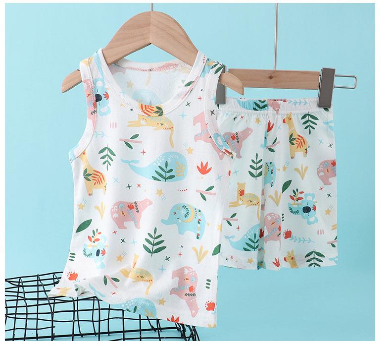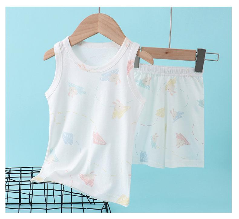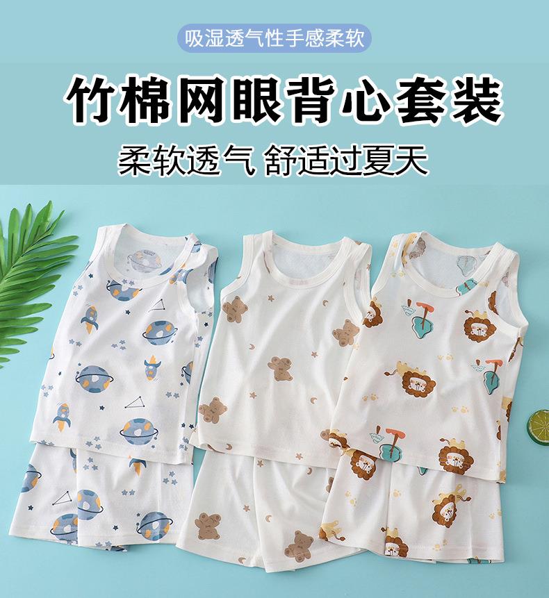 【买一送一】儿童纯棉网眼套装睡衣男女童背心短裤宝宝家居服冰丝夏季大童男孩空调服90-160