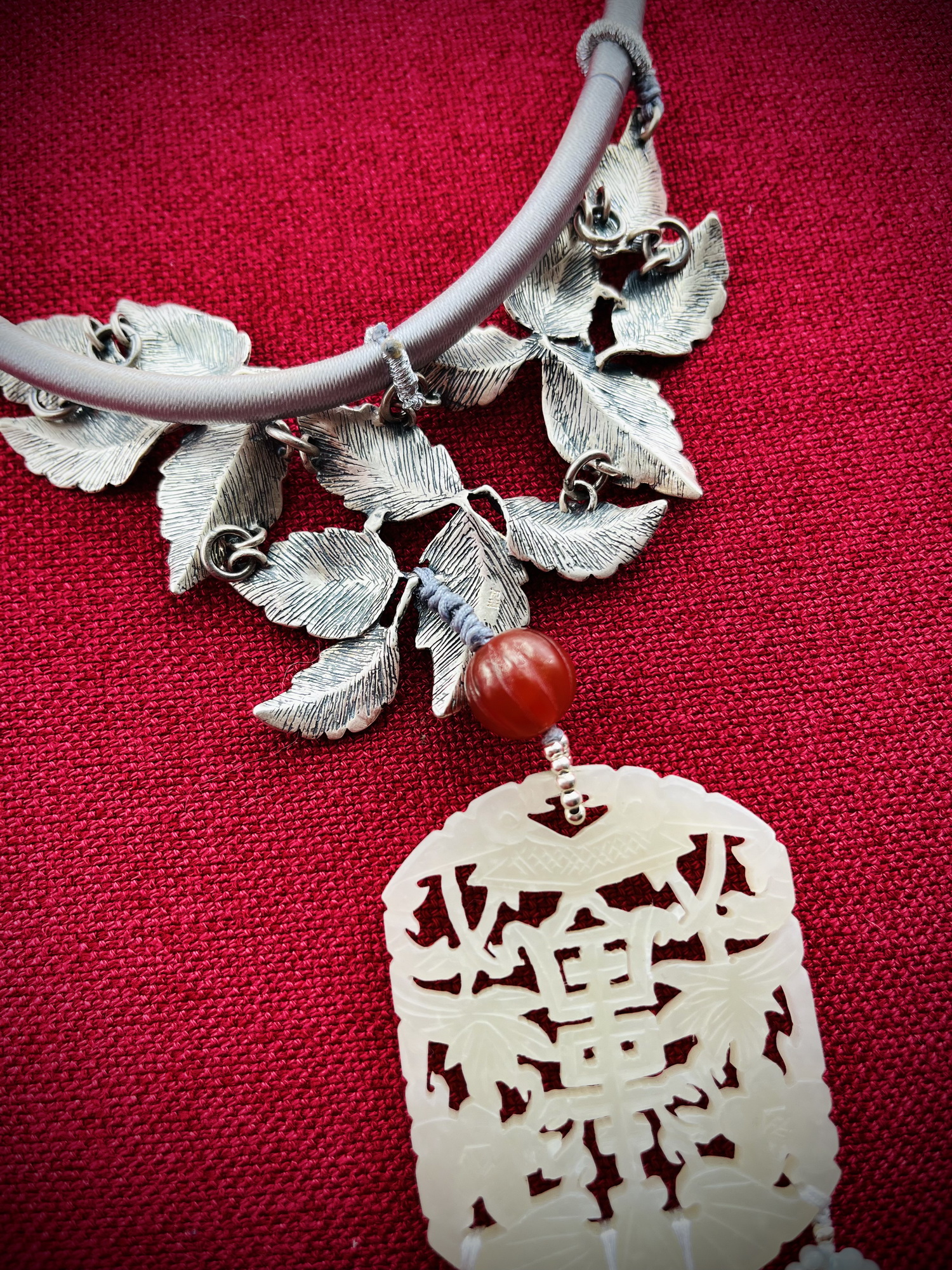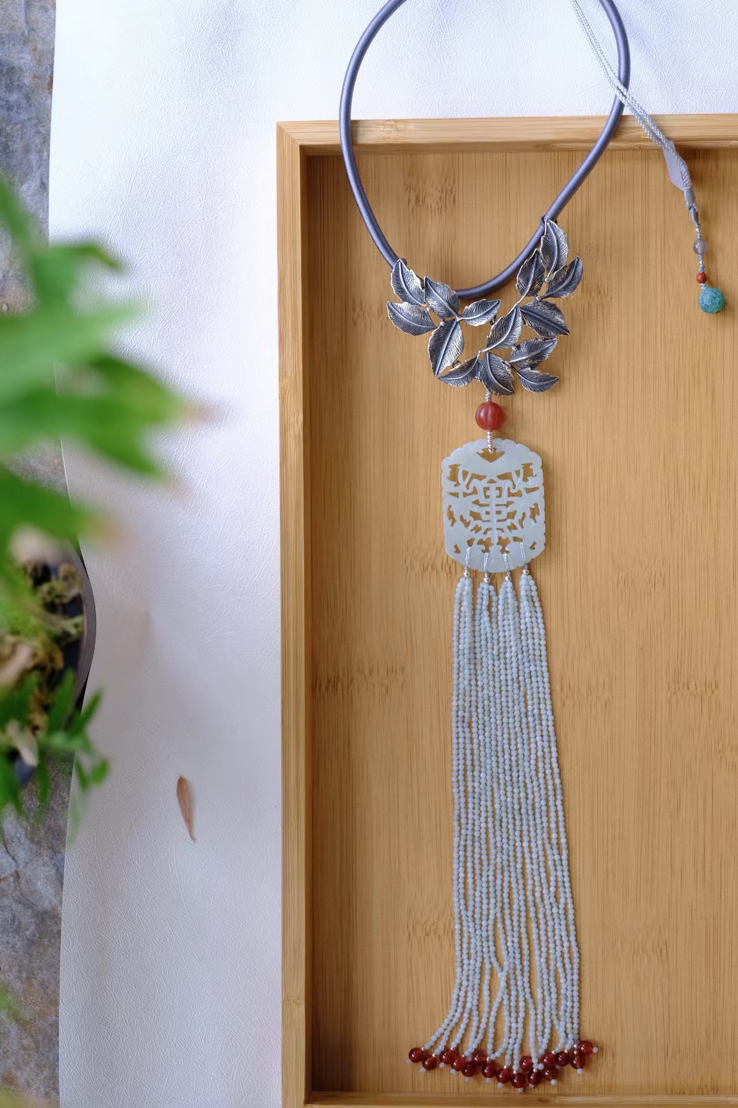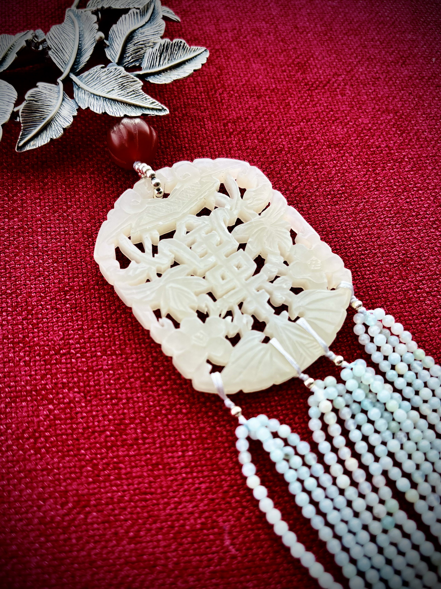 999足银+精工雕刻和田玉+亚马逊石流苏