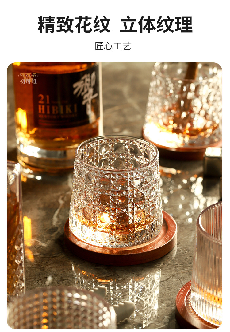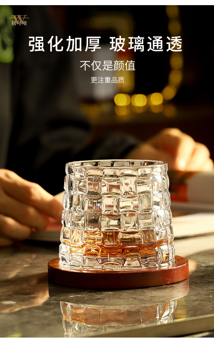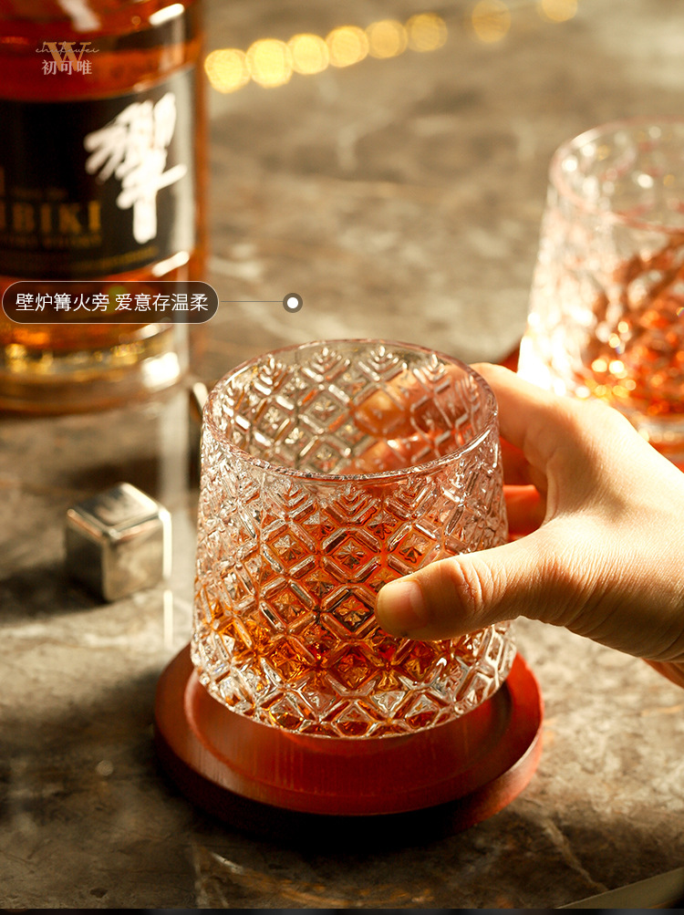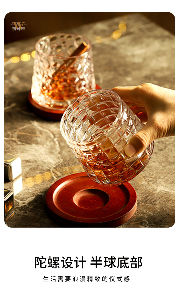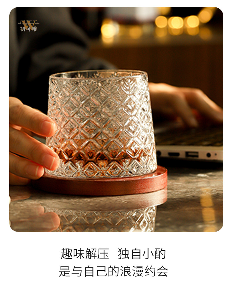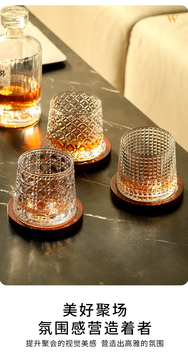 威士忌酒杯洋酒杯水晶解压杯玻璃杯子套装啤酒杯高级感转转杯家用