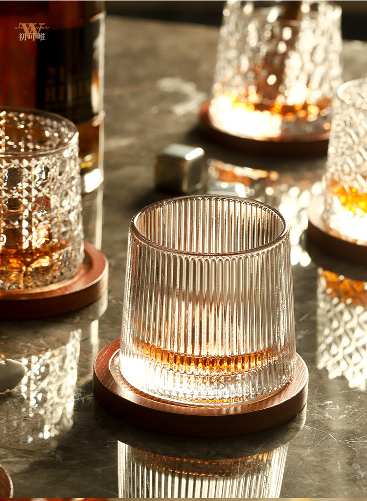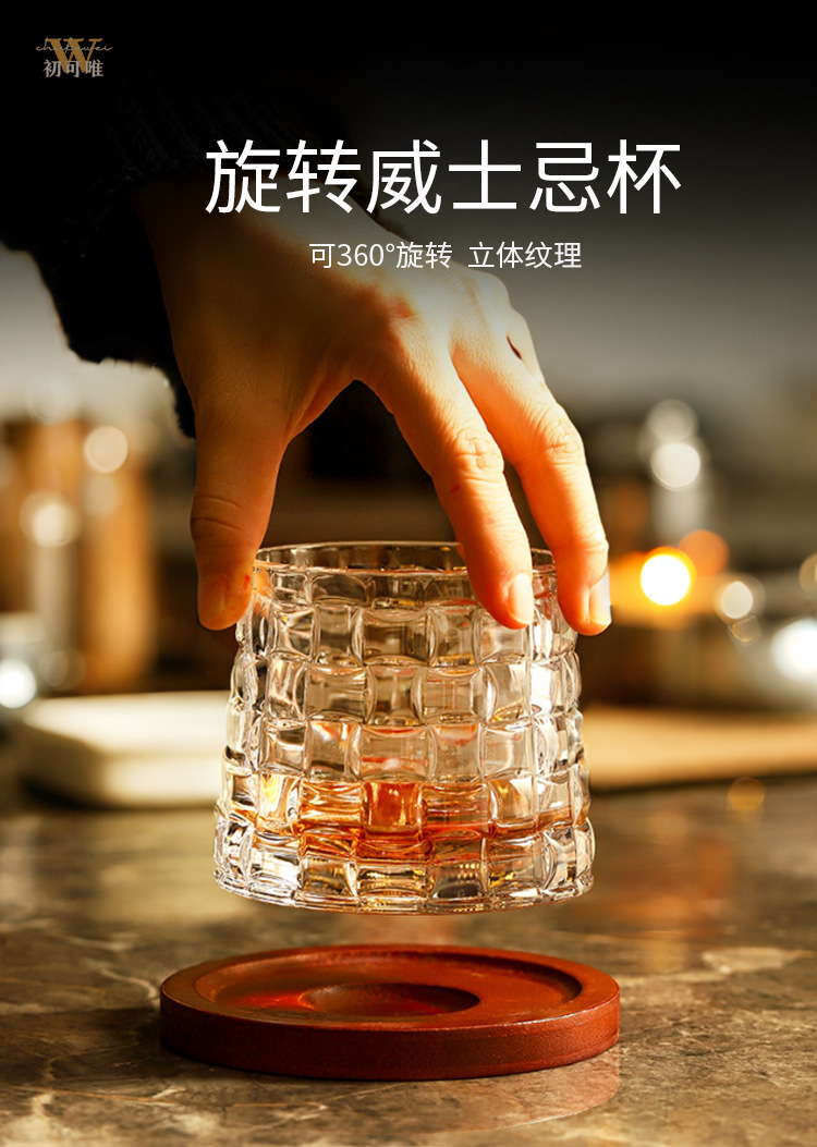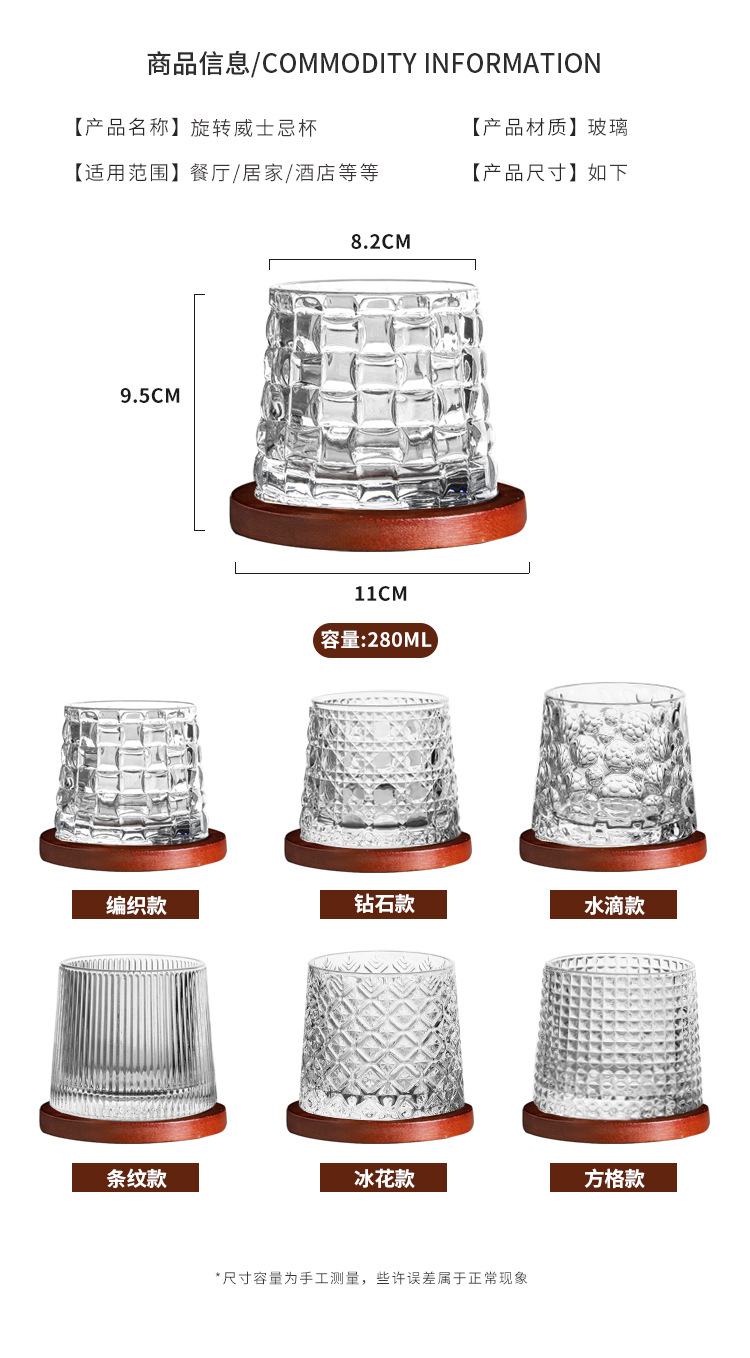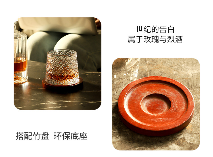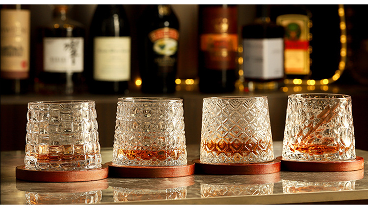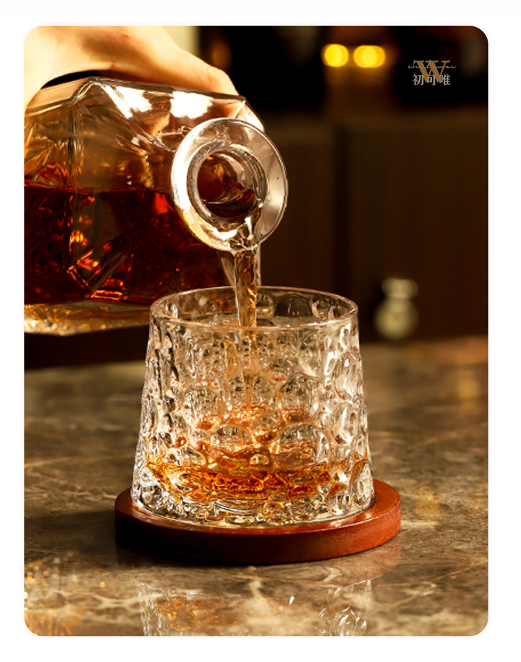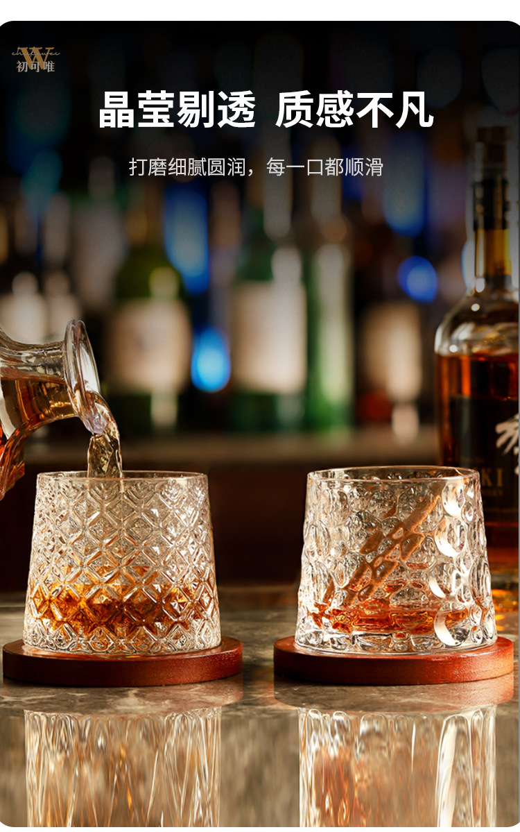 威士忌酒杯洋酒杯水晶解压杯玻璃杯子套装啤酒杯高级感转转杯家用