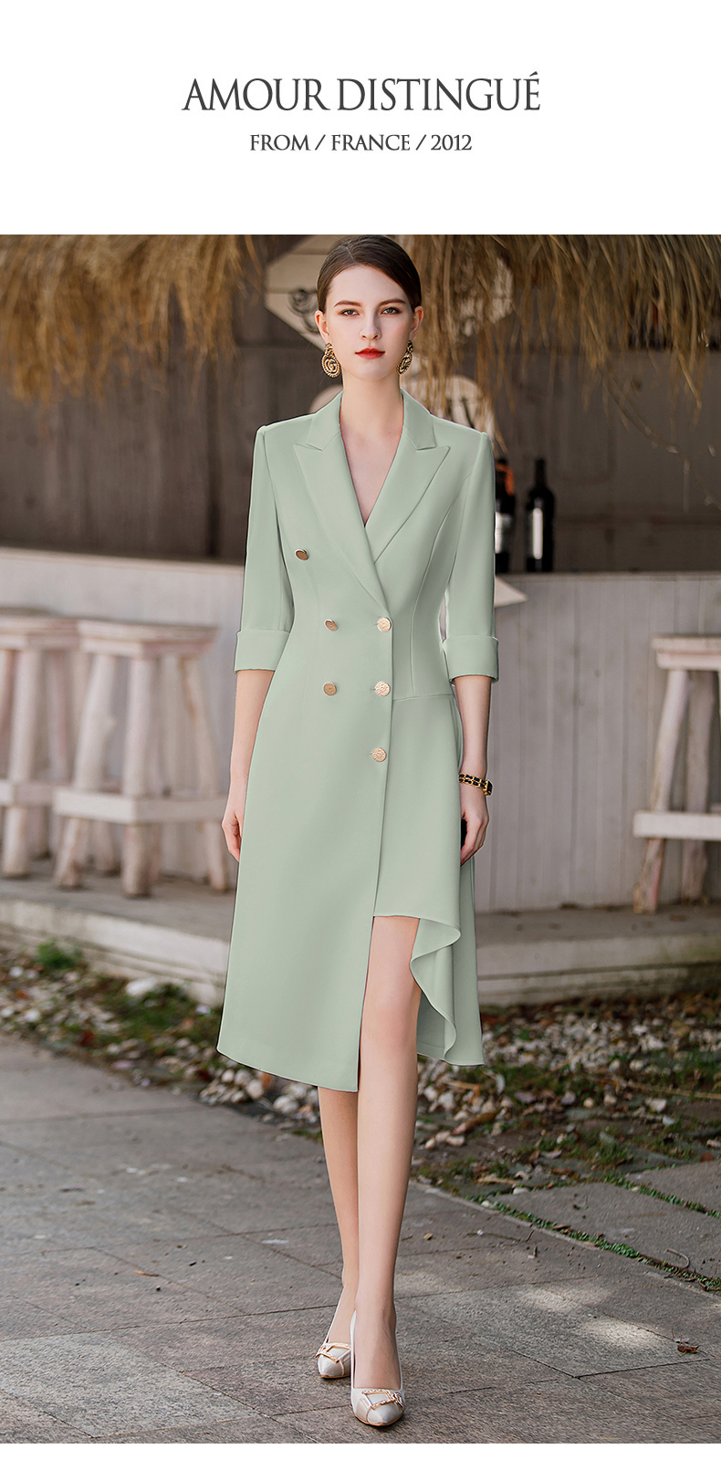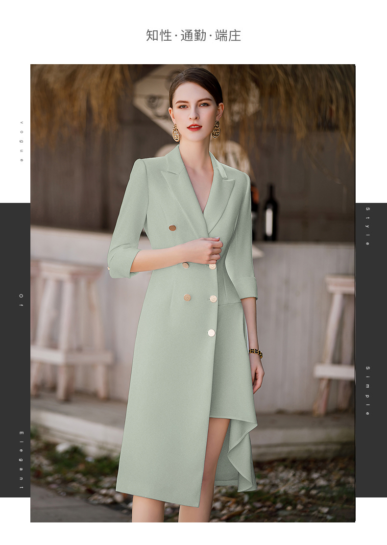 IWY/夏季新款绿色连衣裙女高端设计感西装领修身显瘦显白轻薄透气Q862-G