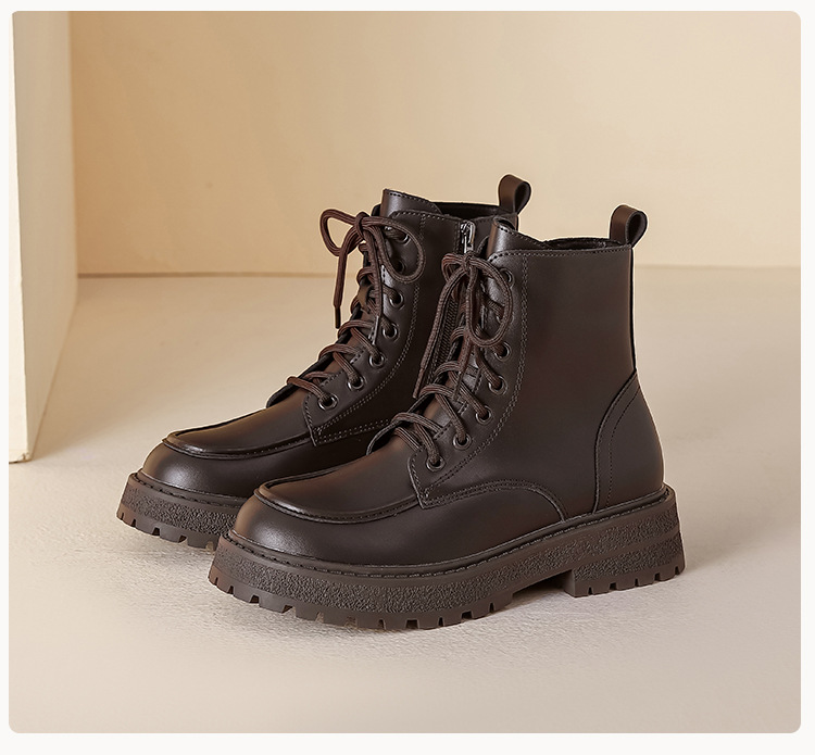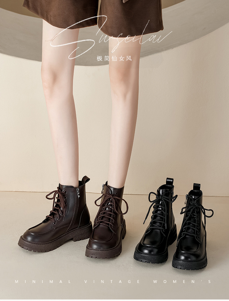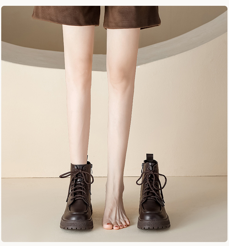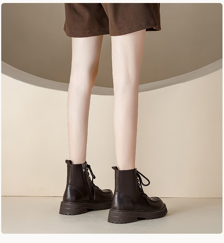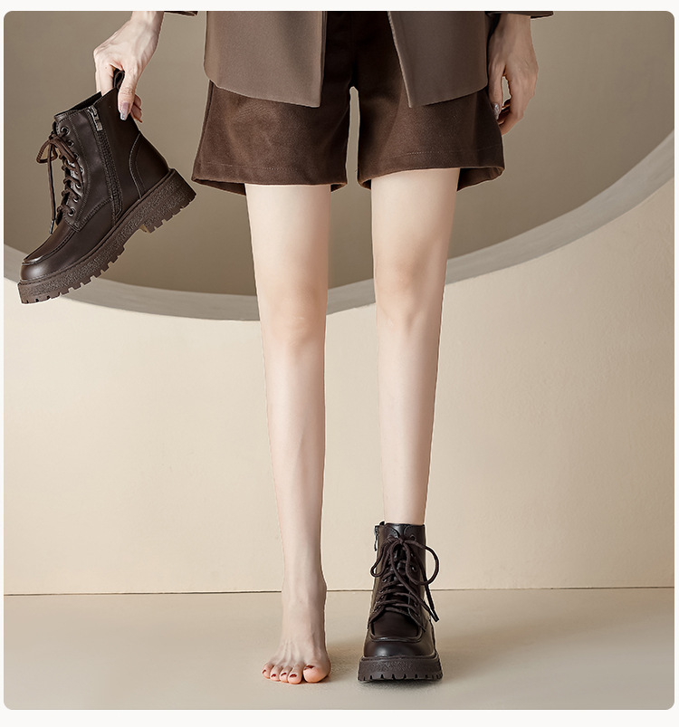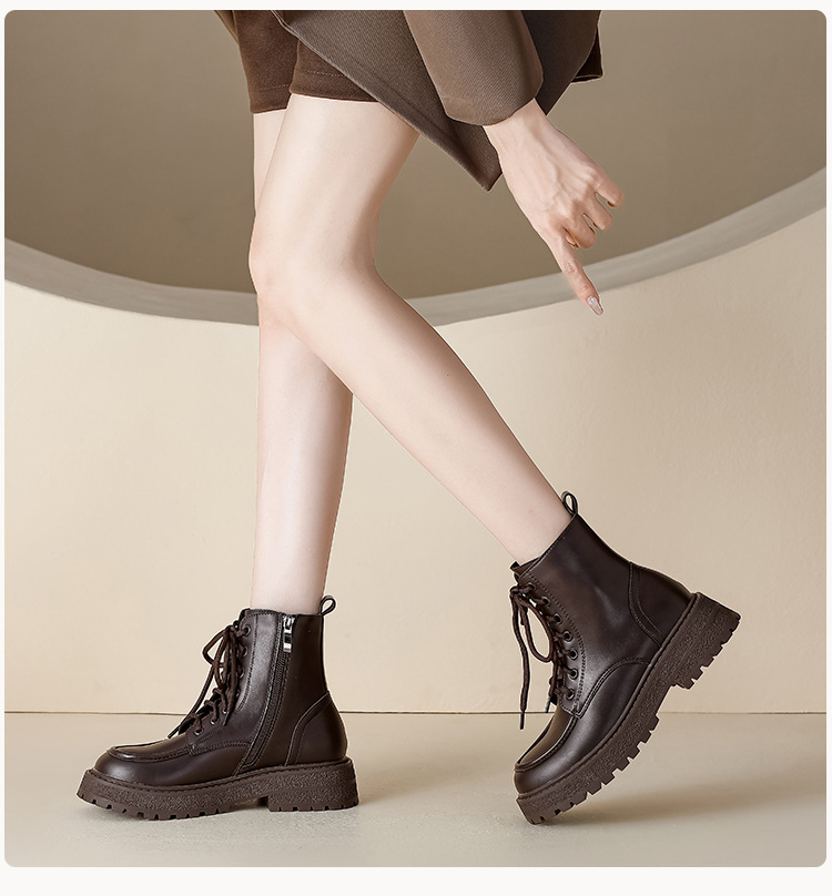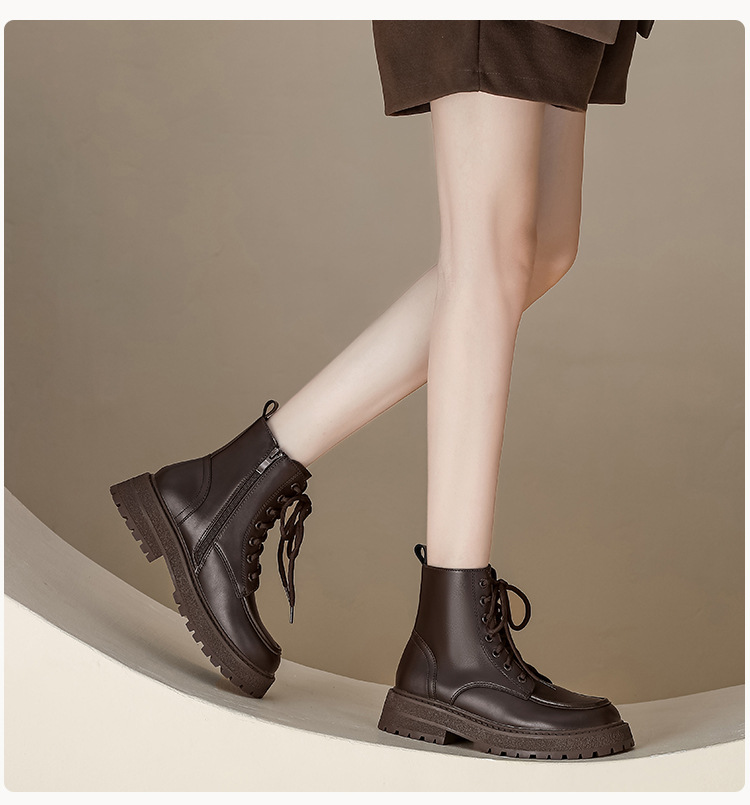 【女鞋专场】真皮厚底英伦风马丁靴女2023年新款春秋薄款单靴棕色小众短筒短靴