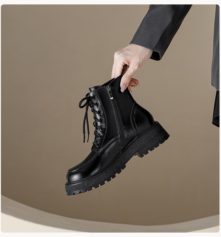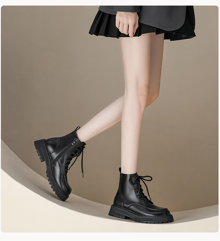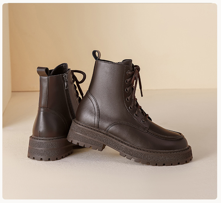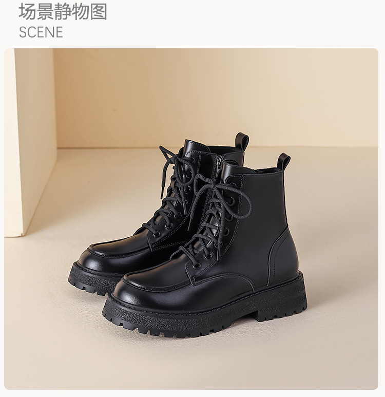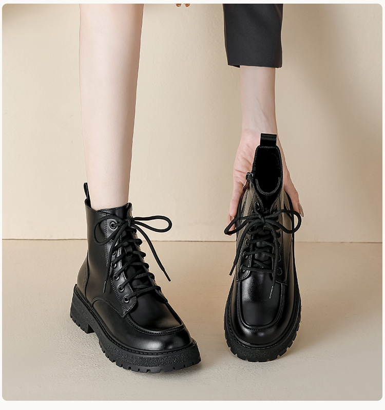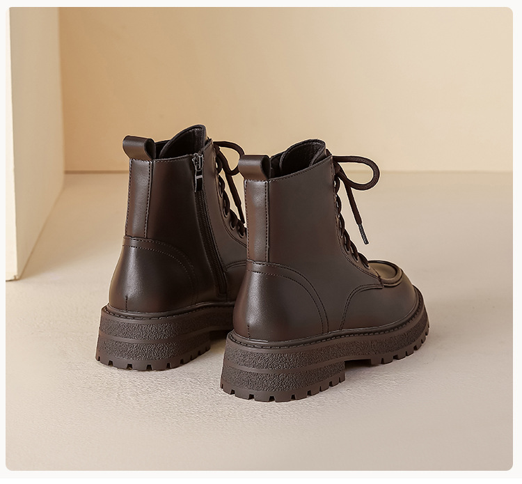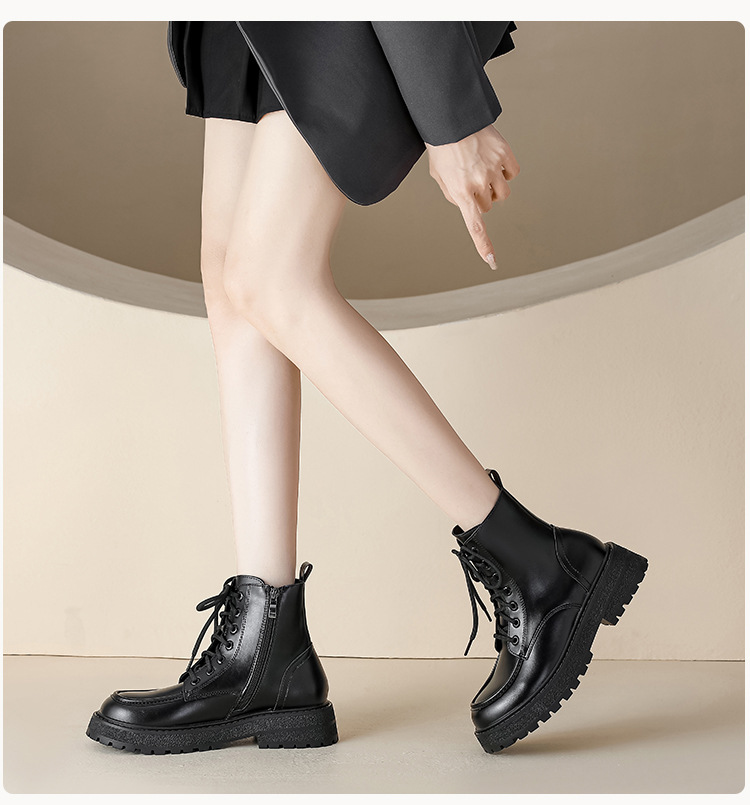 【女鞋专场】真皮厚底英伦风马丁靴女2023年新款春秋薄款单靴棕色小众短筒短靴