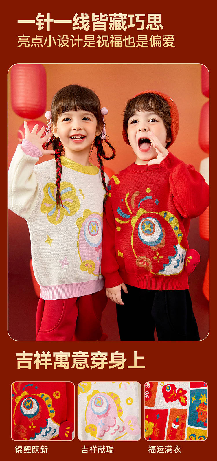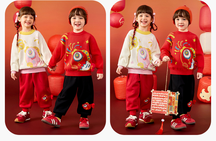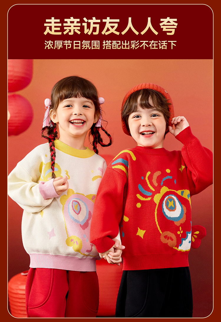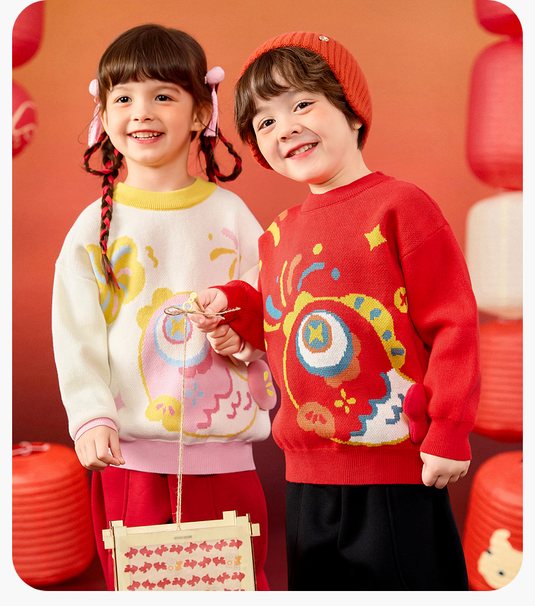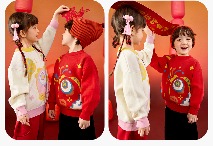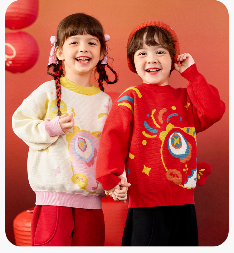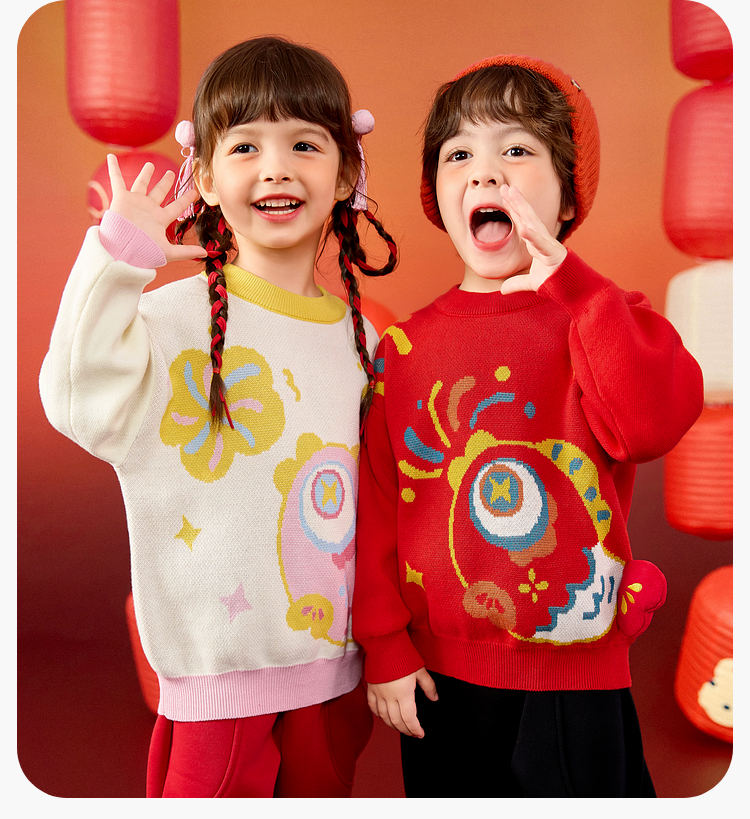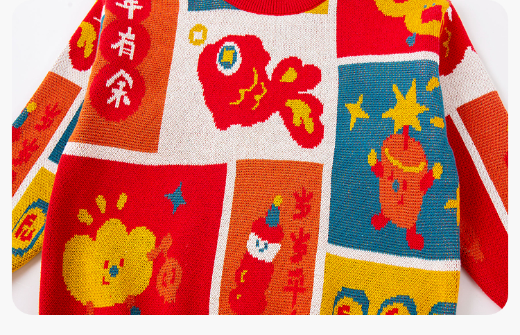 嘟嘟家儿童毛衣男童冬季拜年服女童国风长袖上衣宝宝新年童装衣服