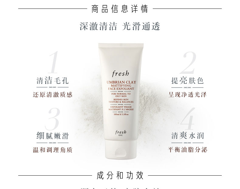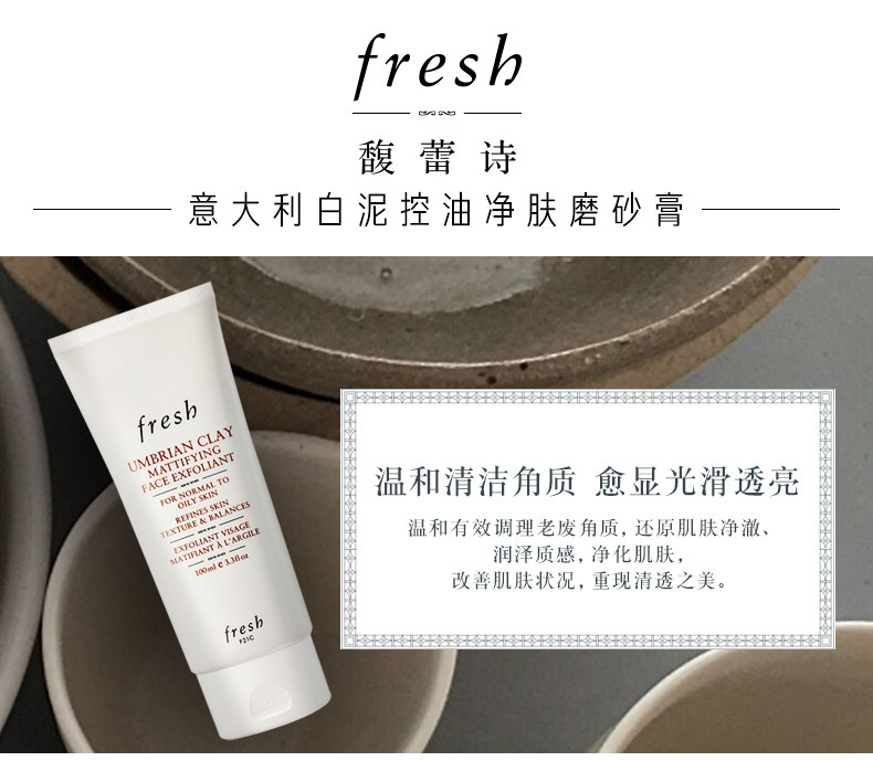 专柜 Fresh/馥蕾诗意大利白泥控油净肤磨砂膏100ml 清洁毛孔