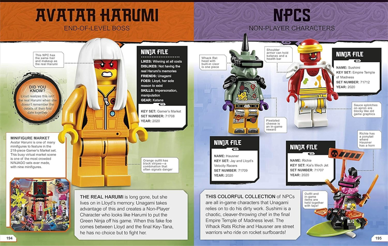 Expand your NINJAGO knowledge with fact files on all your favorite ninja plus the most obscure characters, including the Ninjago Mailman, Gravis, and Captain Soto.