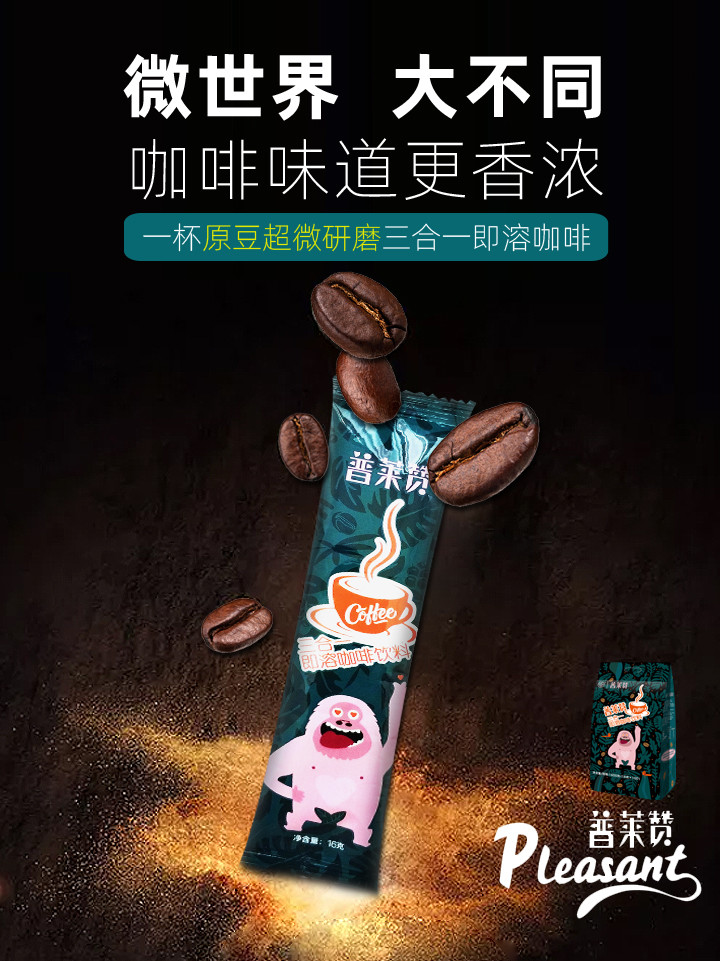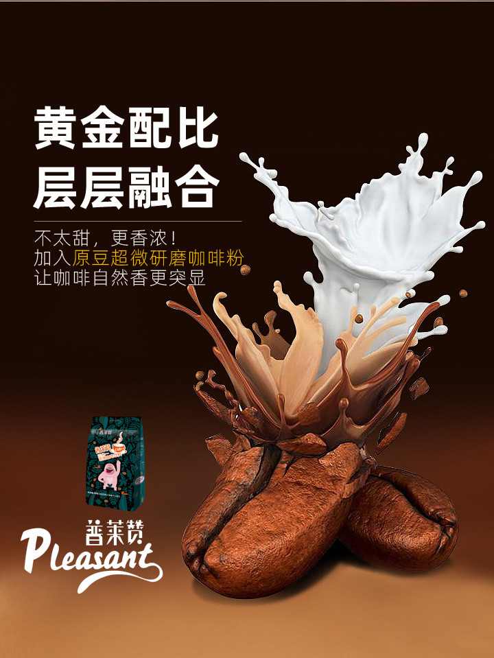 普莱赞原豆超微研磨三合一即溶咖啡 现磨香浓速溶咖啡粉|海南兴科
