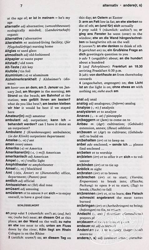 这本双语词典是学习德语的学生的良好选择,它涵盖了当前的基本词汇。